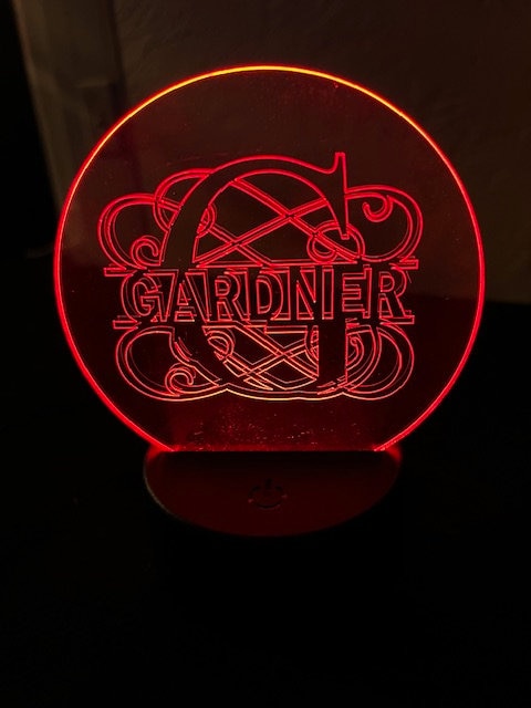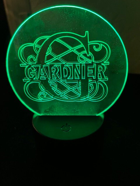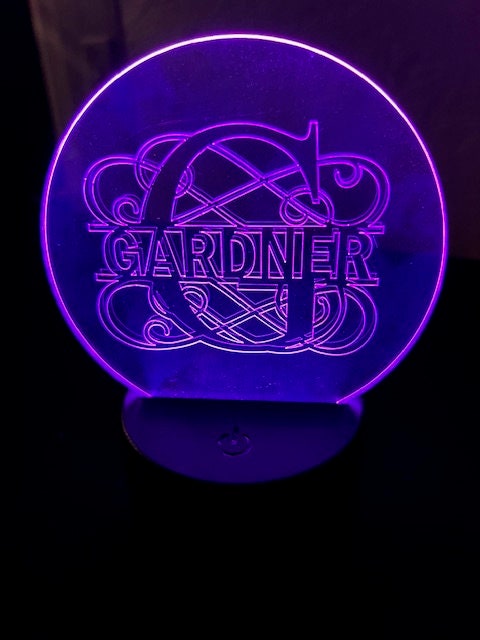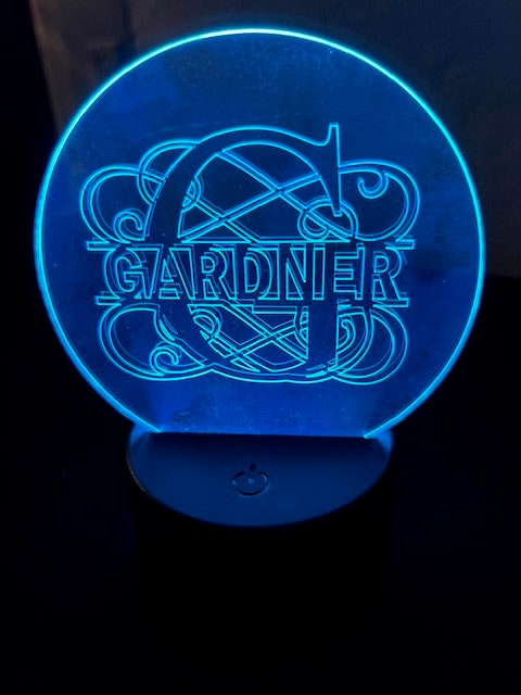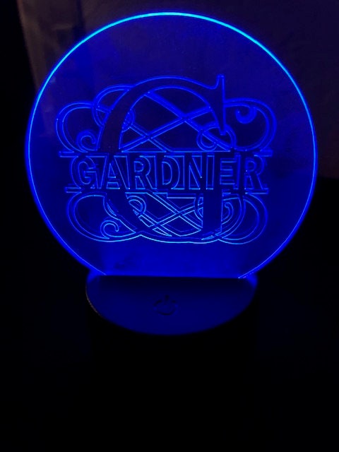This night light is laser engraved on 3mm clear acrylic. It measures 4 3/4 inches wide, 6 inches tall and the base is 3 1/4 inches in depth for the round and 5 inches wise, 7 inches tall and 3 1/2 depth for the square size. It takes a small amount of space for such a stunning light. You can either monogram a letter or a letter with your name (as seen in photo).