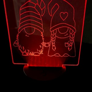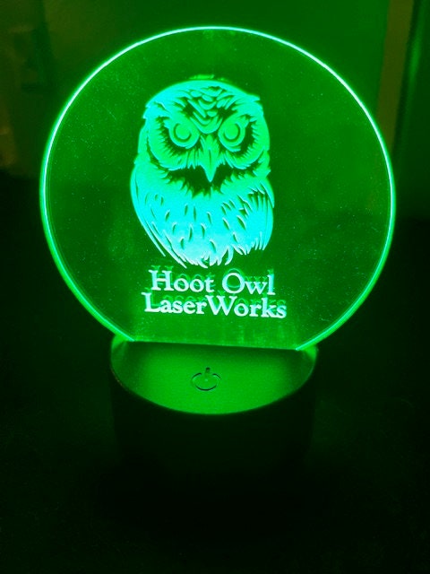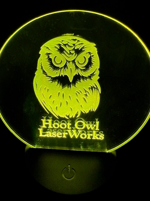 This night light is laser engraved on 3mm clear acrylic. It measures 4 3/4 inches wide, 6 inches tall and the base is 3 1/4 inches in depth for the round shape and it measures 5 inches wide, 7 inches tall and the base is 3 1/2 inches in depth for the square shape. It takes a small amount of space for such a stunning light.