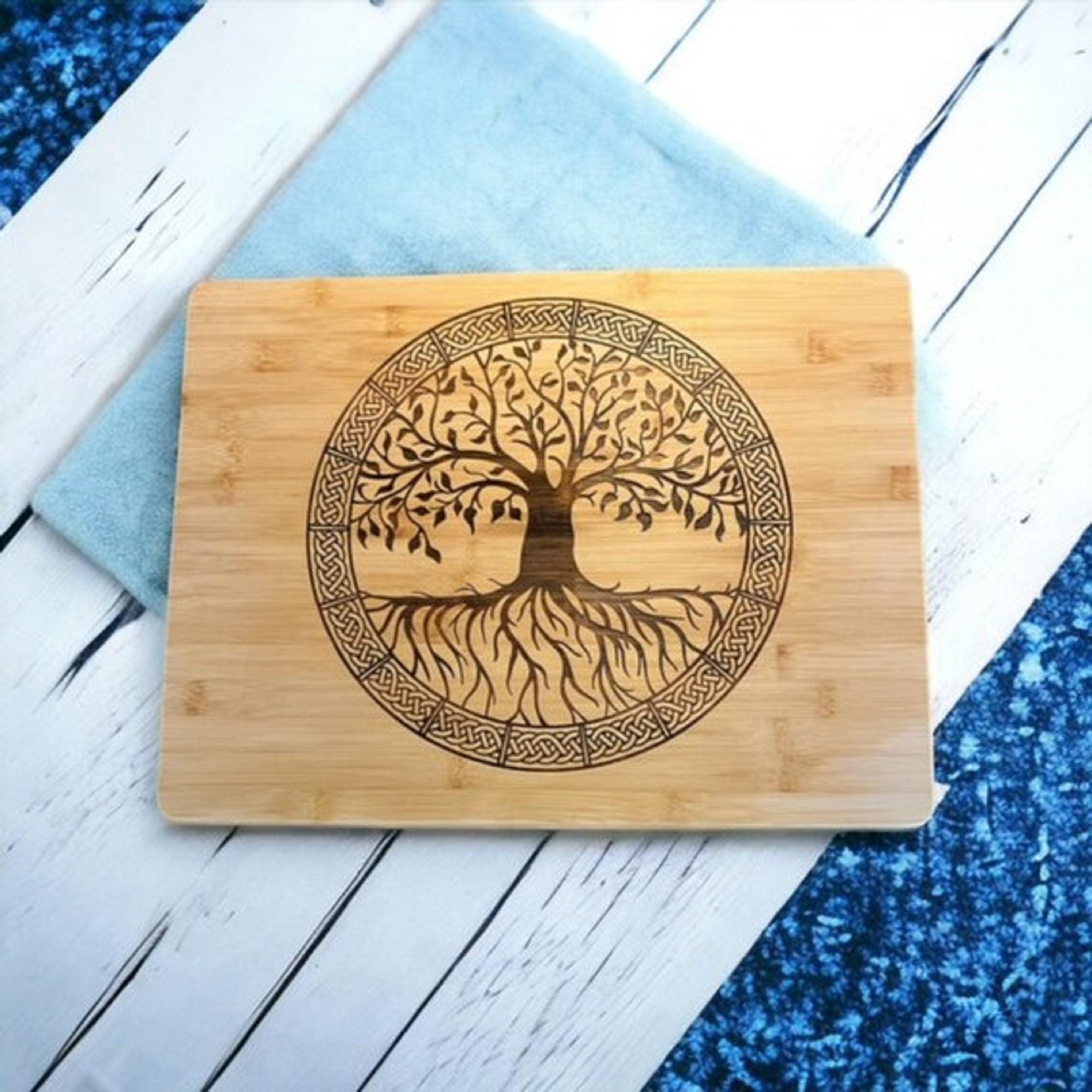 Cutting Board Tree of Life Engraved Wood Serving Platter Kitchen Gift Personalized Charcuterie Board