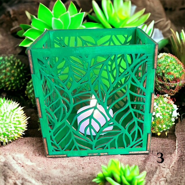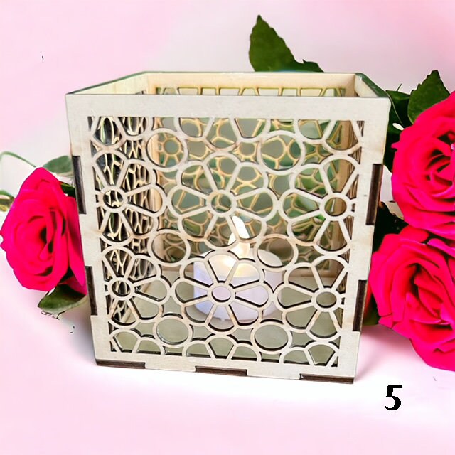 The candle holders are made from 3mm thick basswood and cut with a CO2 Laser for a precise cut.