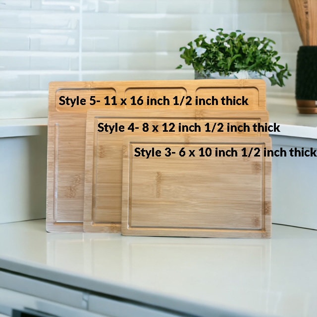 Style 3- 6" x 10" 1/2" thick bamboo/ It has a juice well.
