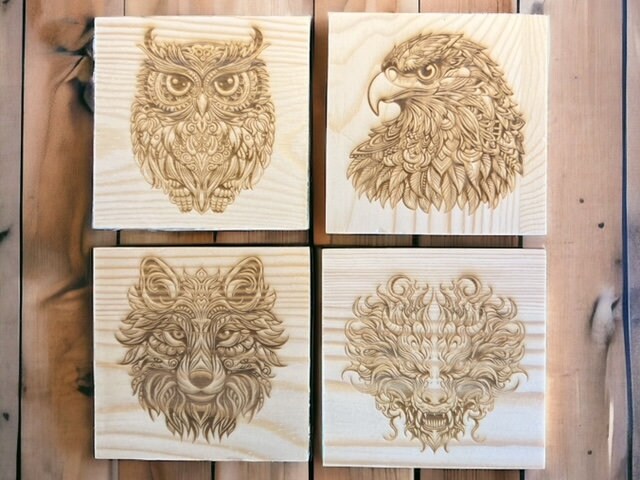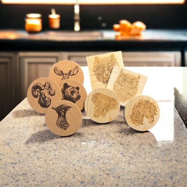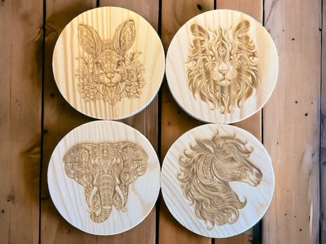 These coasters are beautiful and useful. Due to the woodgrain in the wood coasters you may have striations in the engraving. This is due to the wood. The wood coasters are finished with food grade mineral oil.