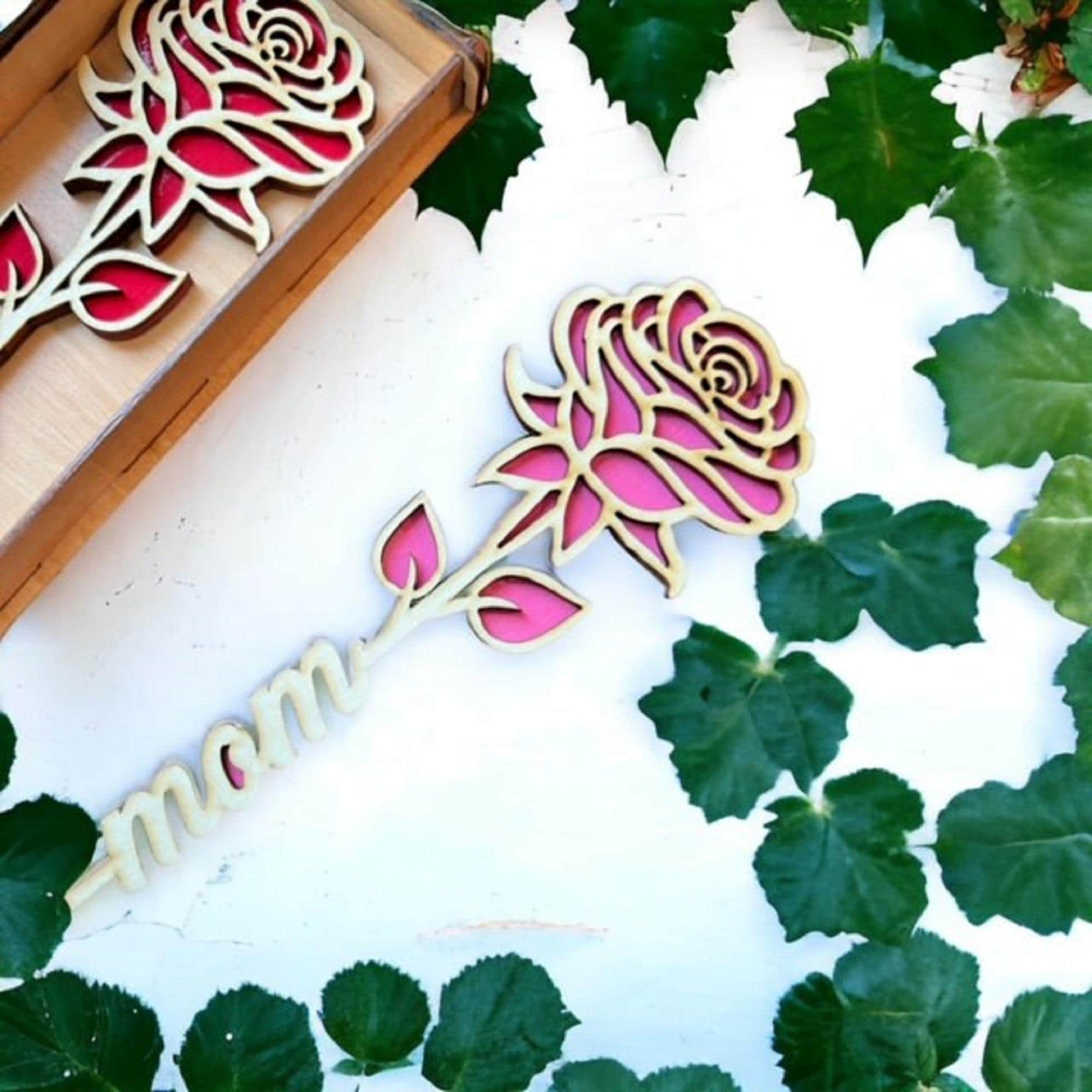Handmade Wooden Rose: Eternal Flower Gift with Custom Stem