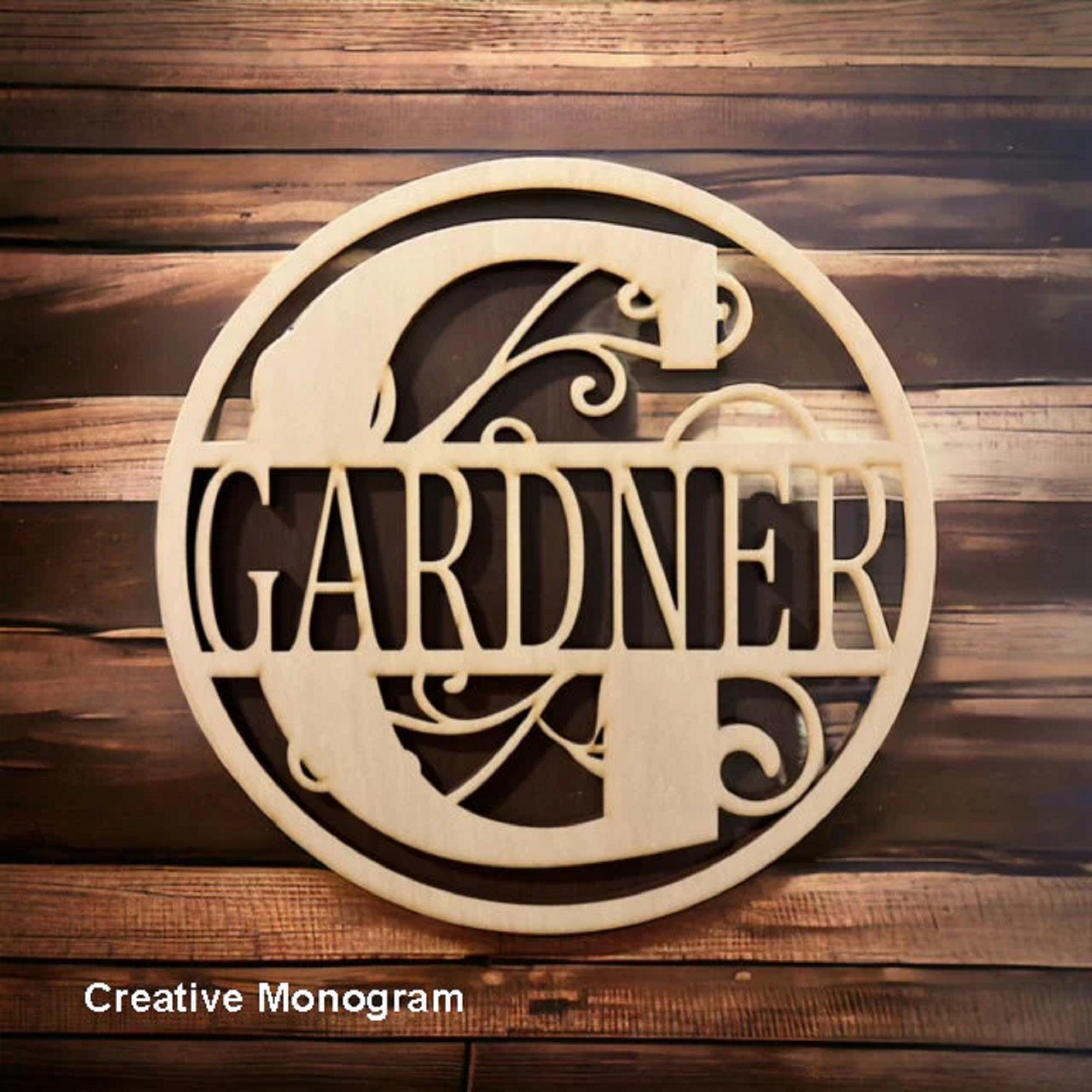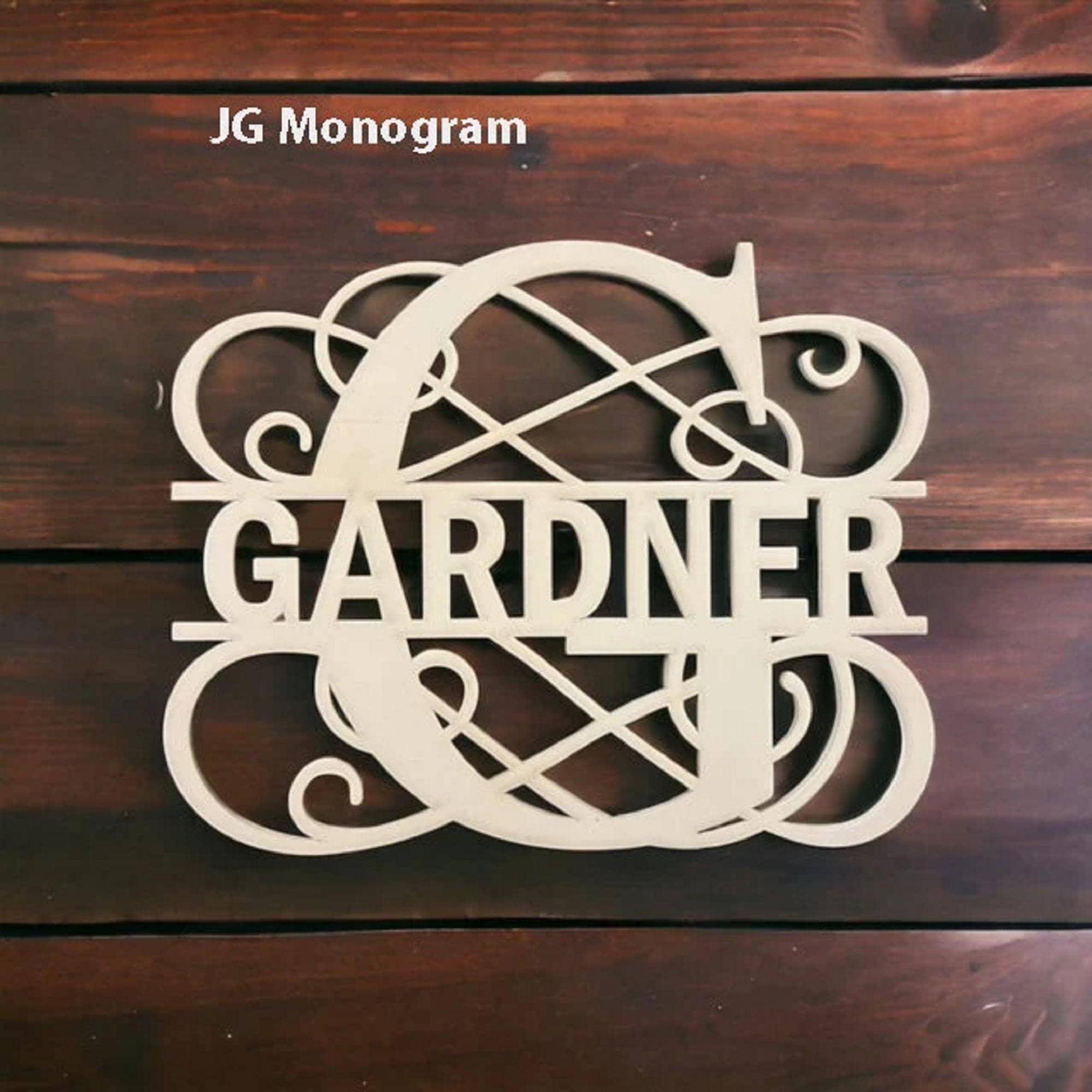 Personalized monograms of either a single letter or family name. There are nine styles to choose from and several stain and paint colors as well. All of the monograms are also available in natural wood color. Most of the pictures are natural wood except for the bold version.
