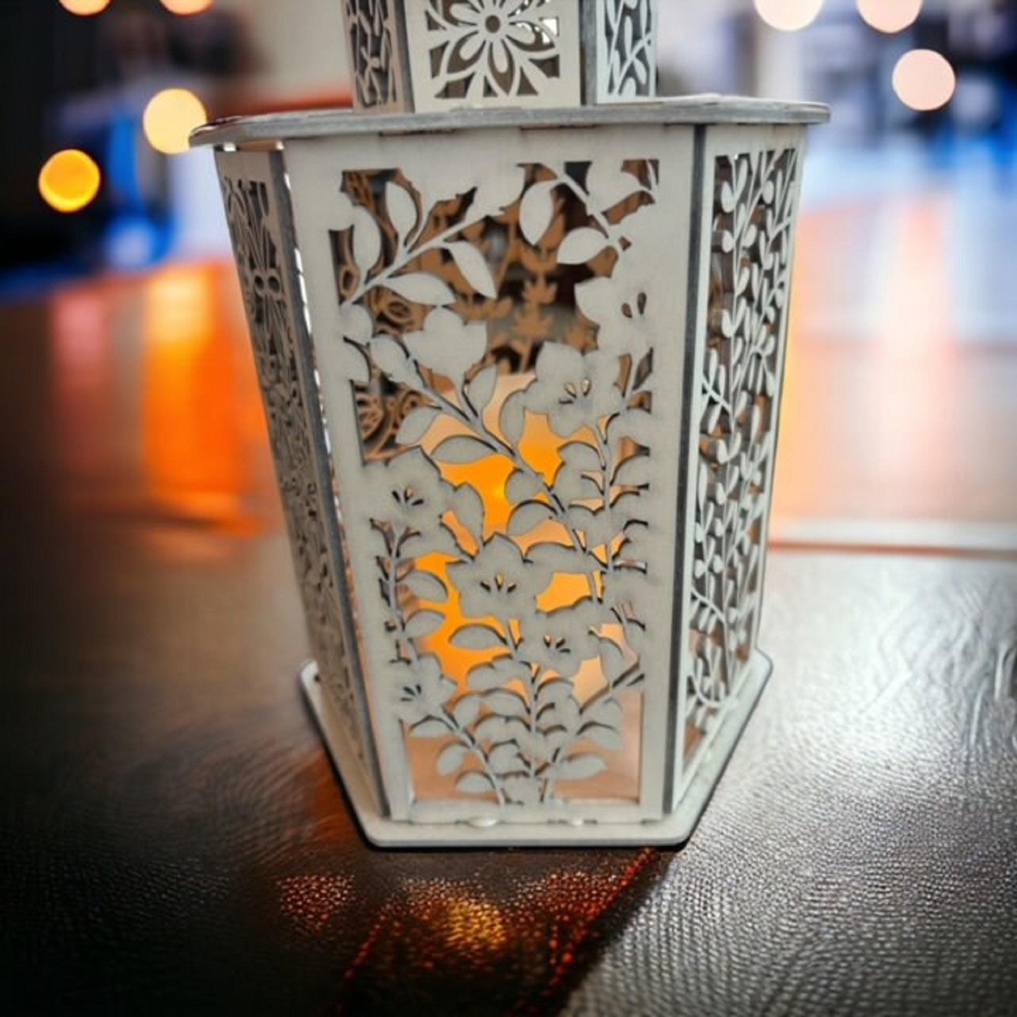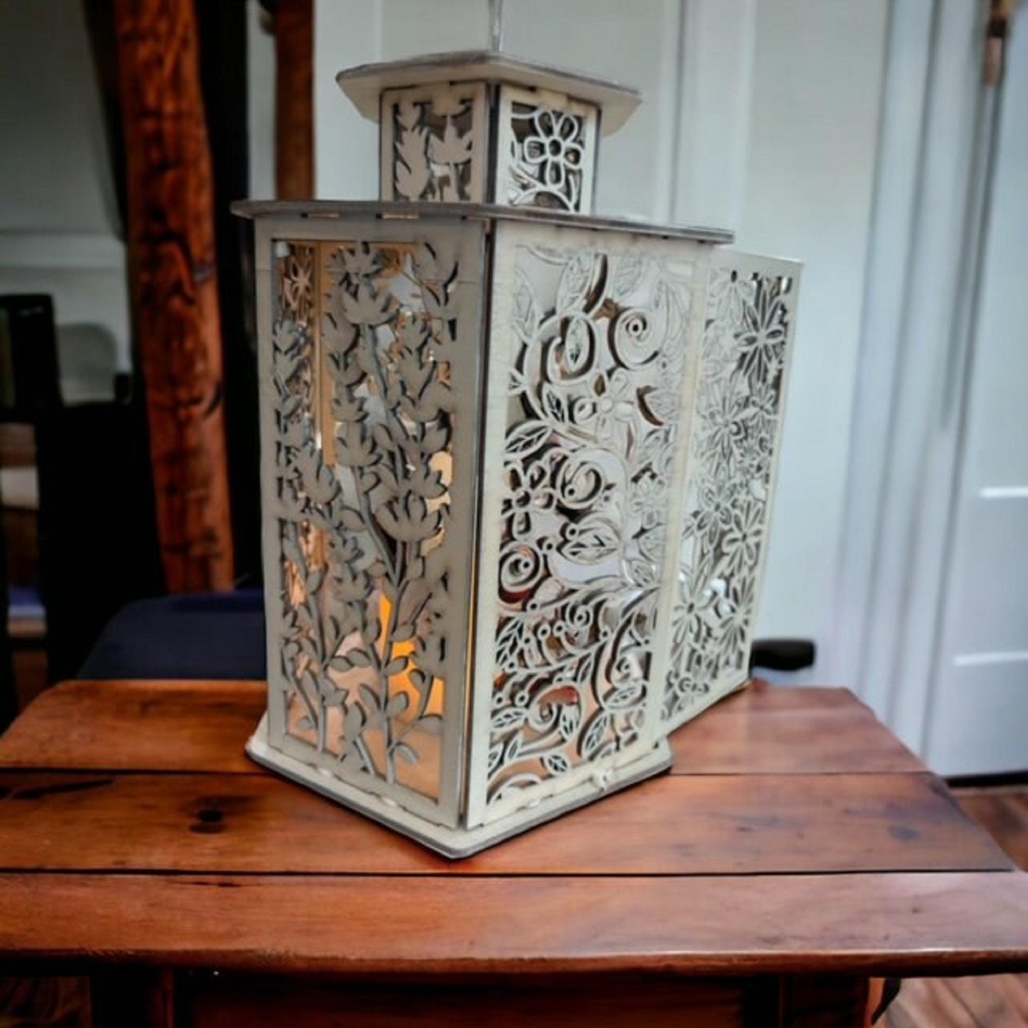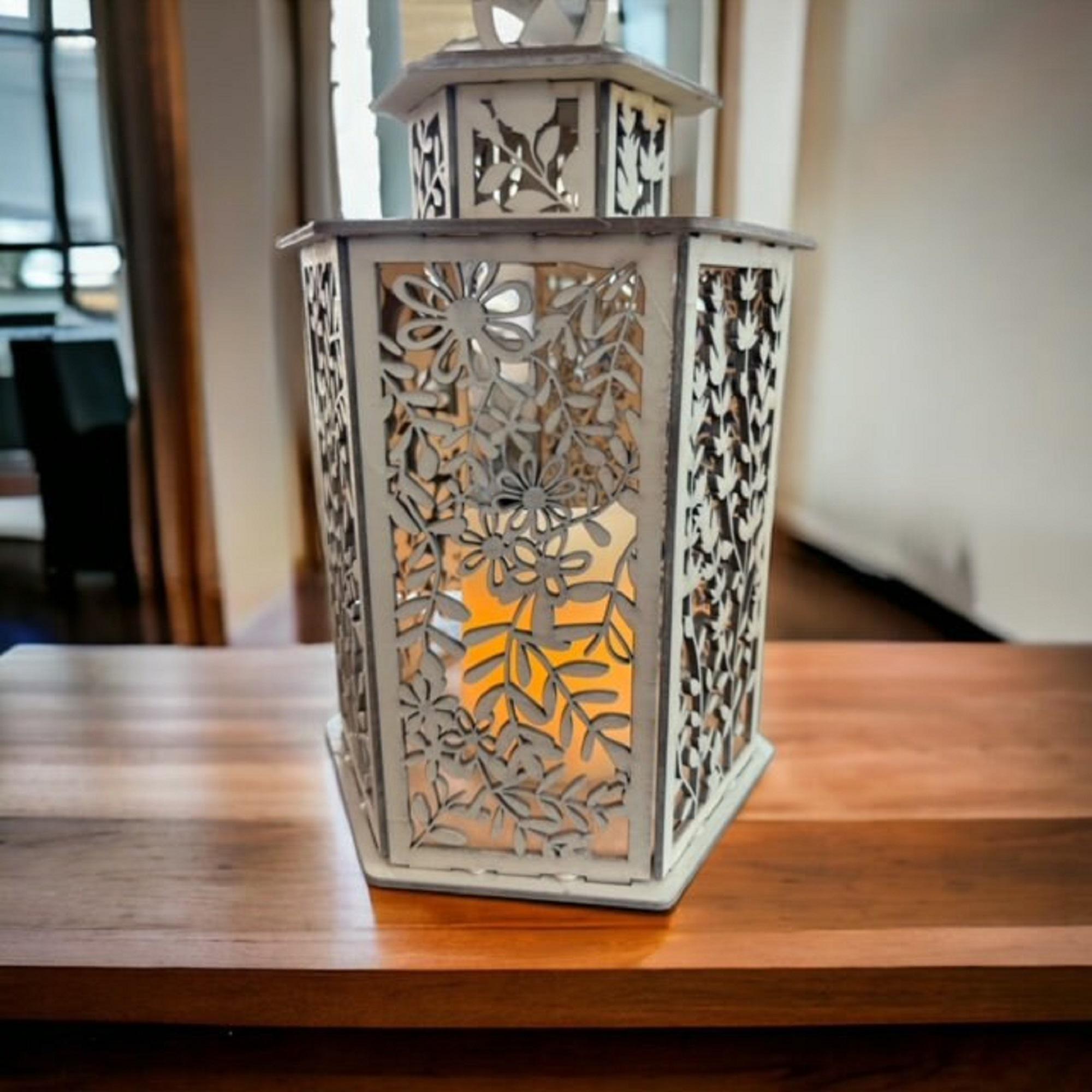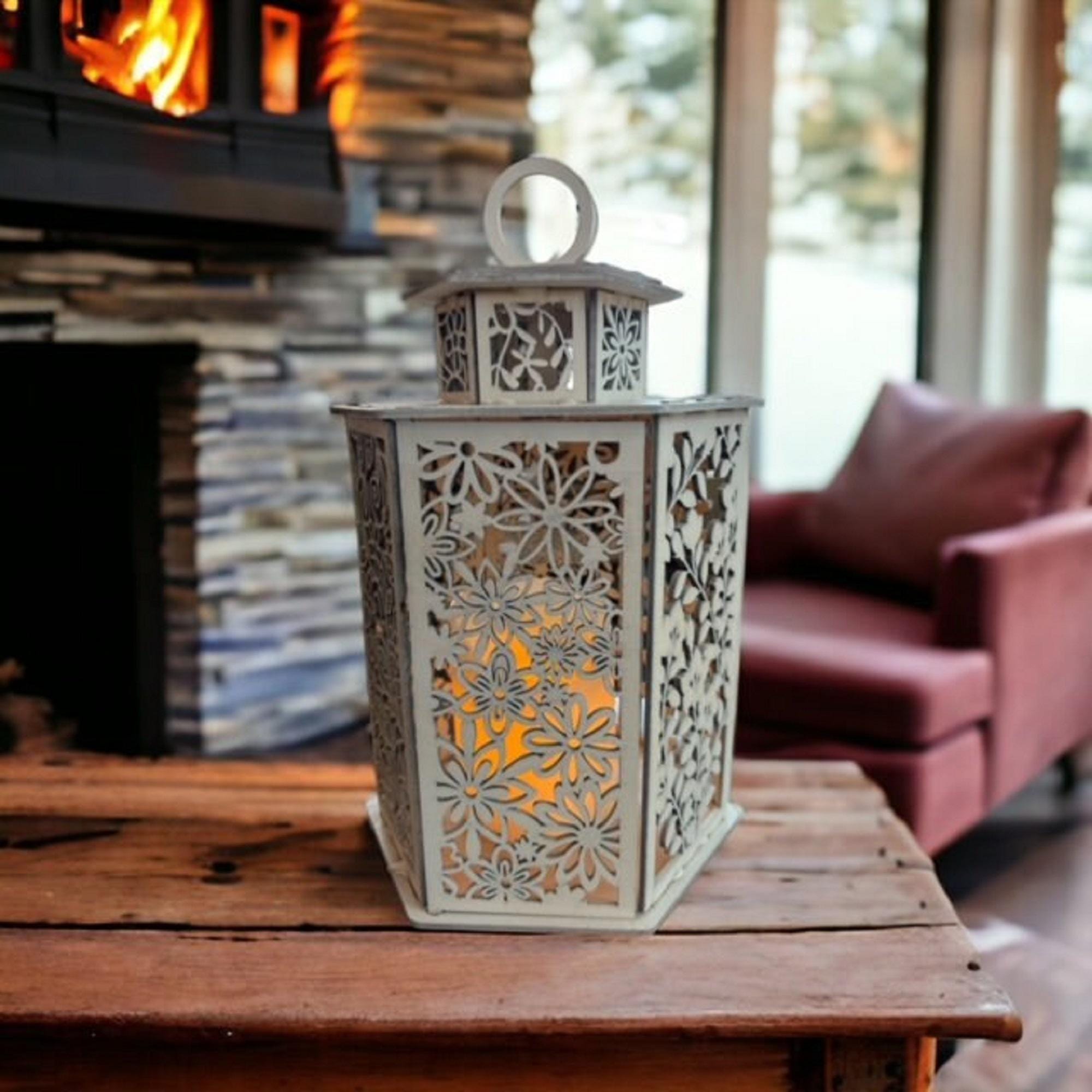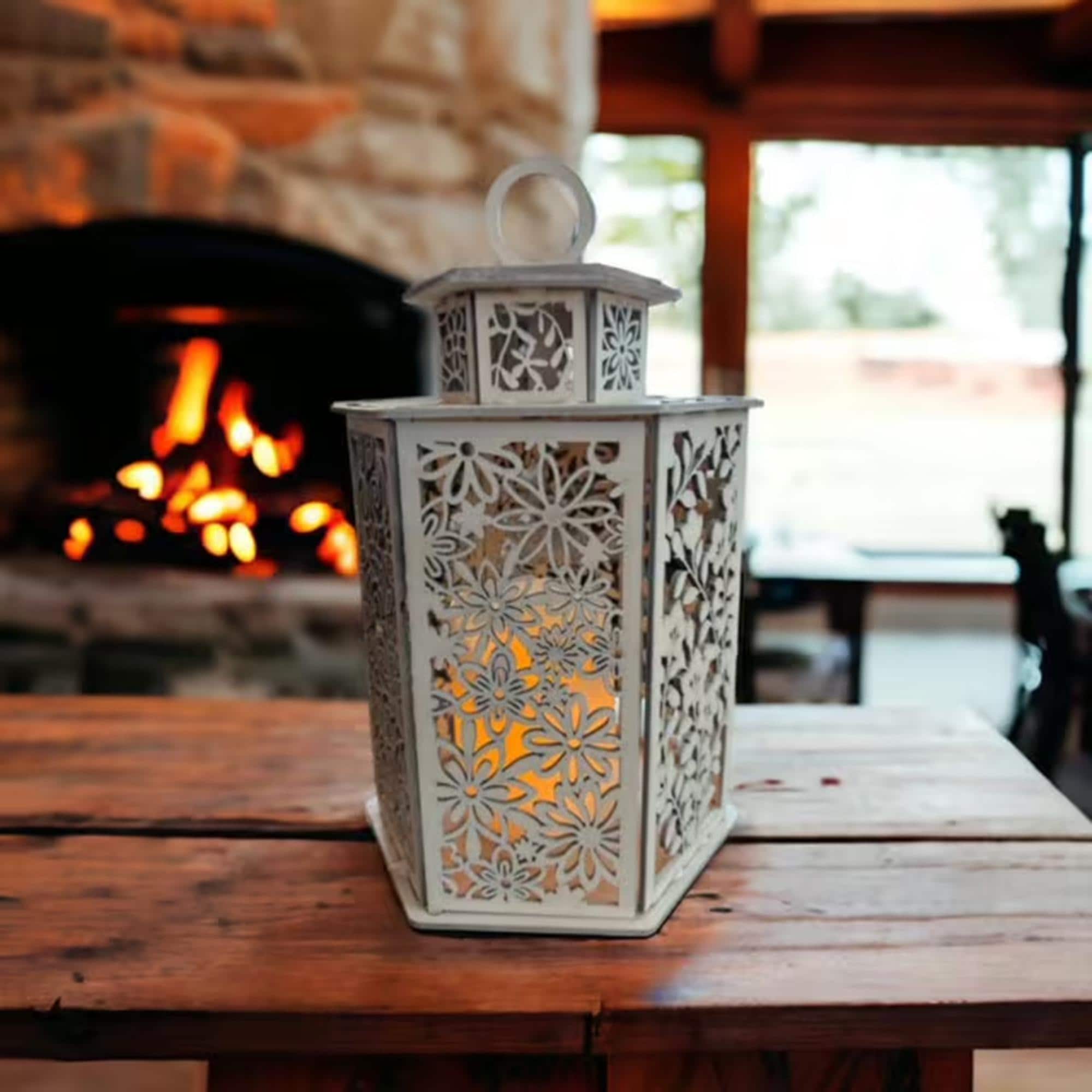 This lantern not only brightens your space but also evokes a sense of calm and nostalgia, making your home and garden inviting and peaceful. Imagine the gentle glow flickering through the floral motif that adds a subtle nature-inspired charm.