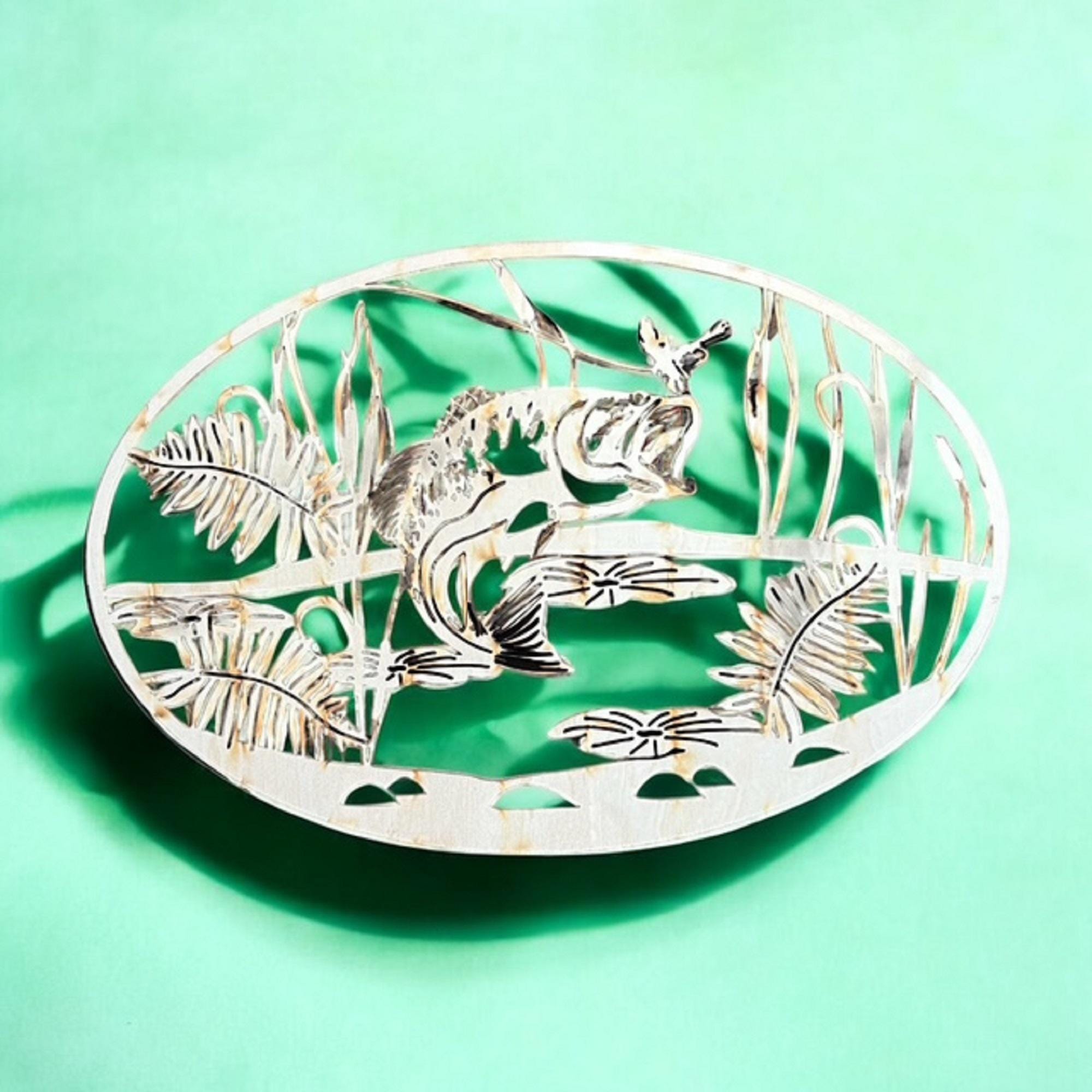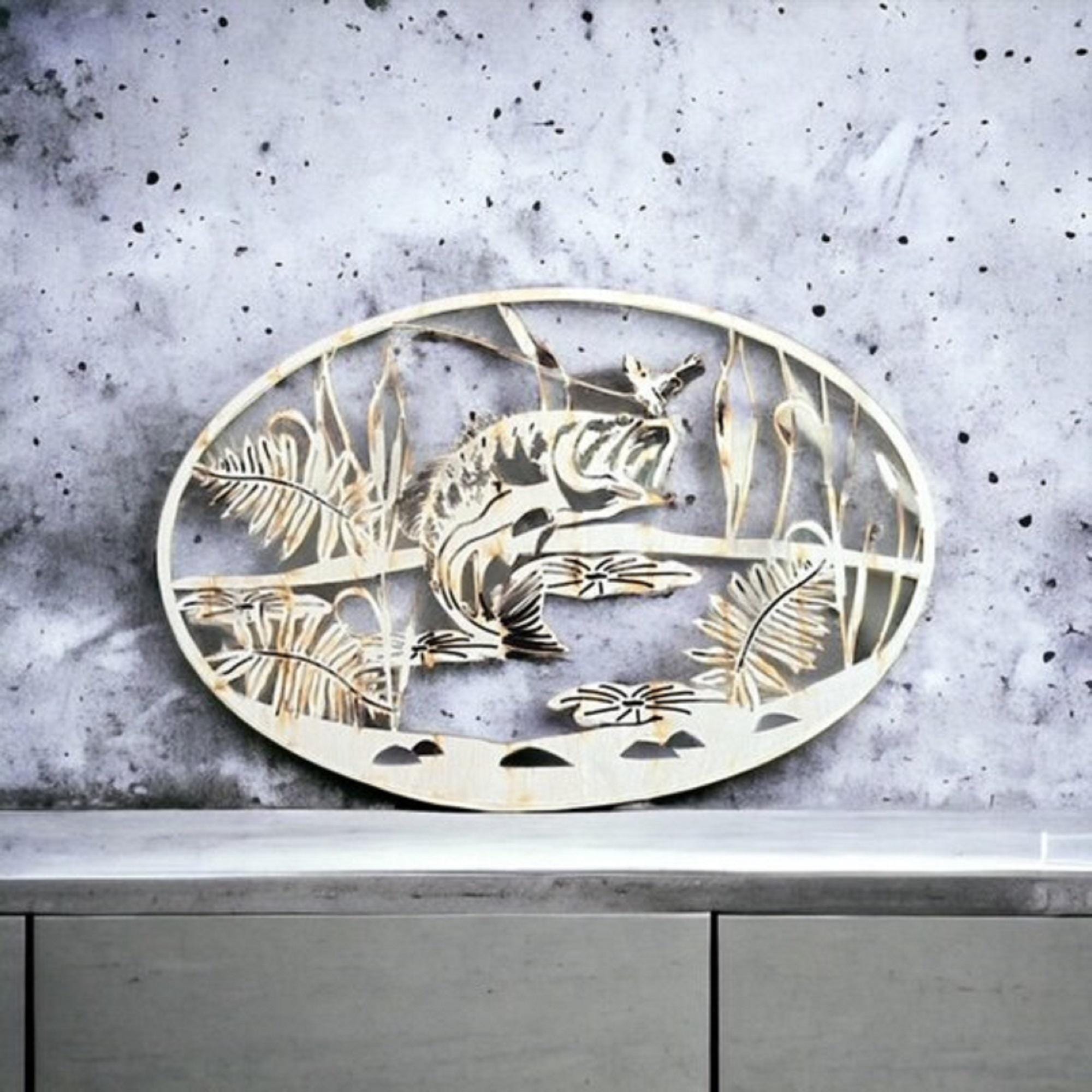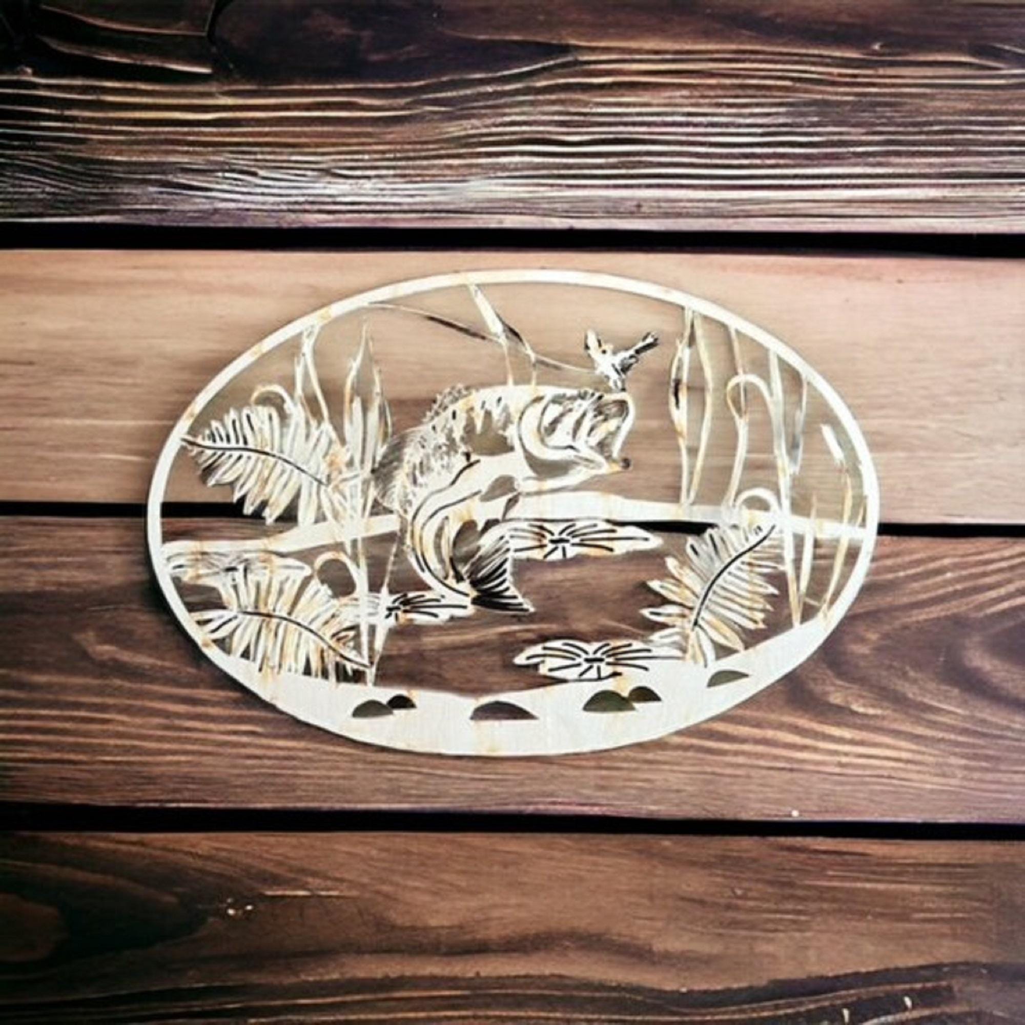 Laser Cut Basswood Fish Wall Hanging: Angler Gift