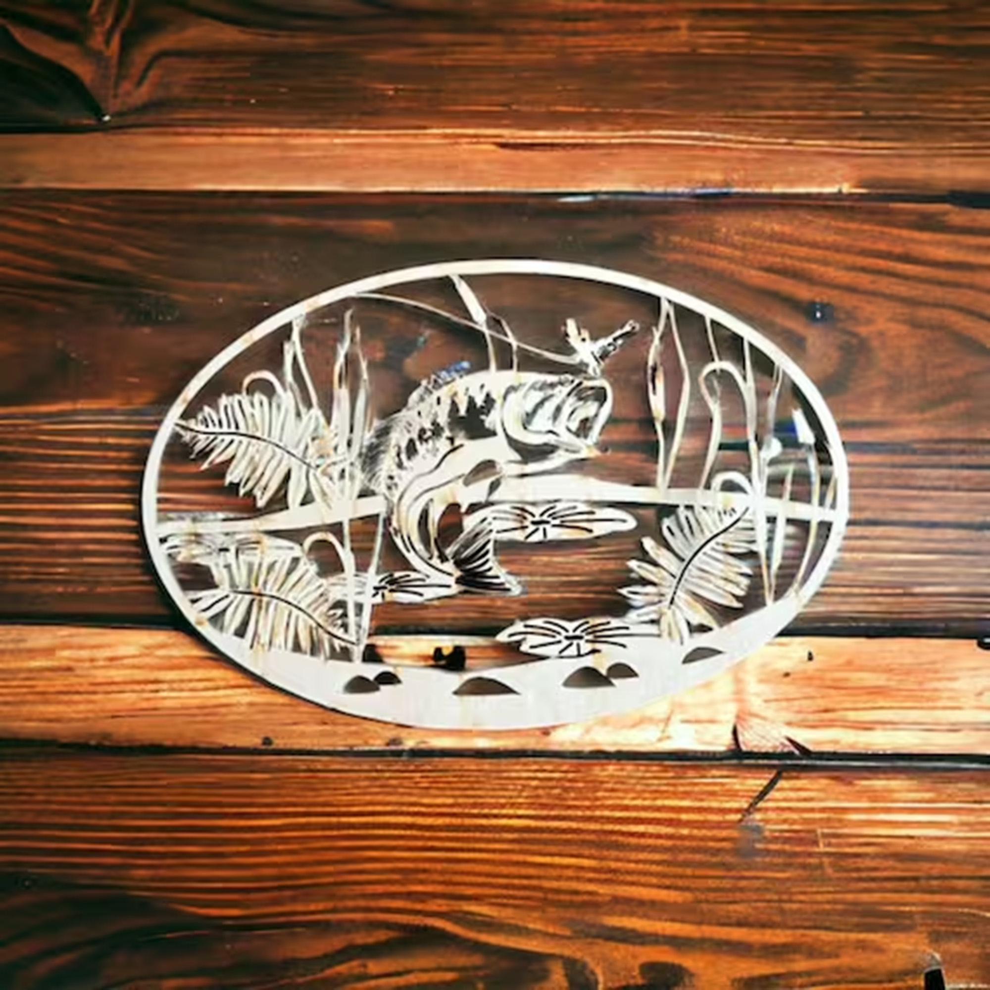 Measuring approximately 11 by 7 inches, this solid wood sign is crafted from 3mm basswood with a stained finish that enhances its vintage look. The detailed bass fish carefully hand-stained, ensuring each piece is unique. Lightweight yet sturdy, it’s easy to hang on any wall. This décor not only celebrates your love for fishing but also brings a warm, outdoorsy feel to your home, office, or cabin.