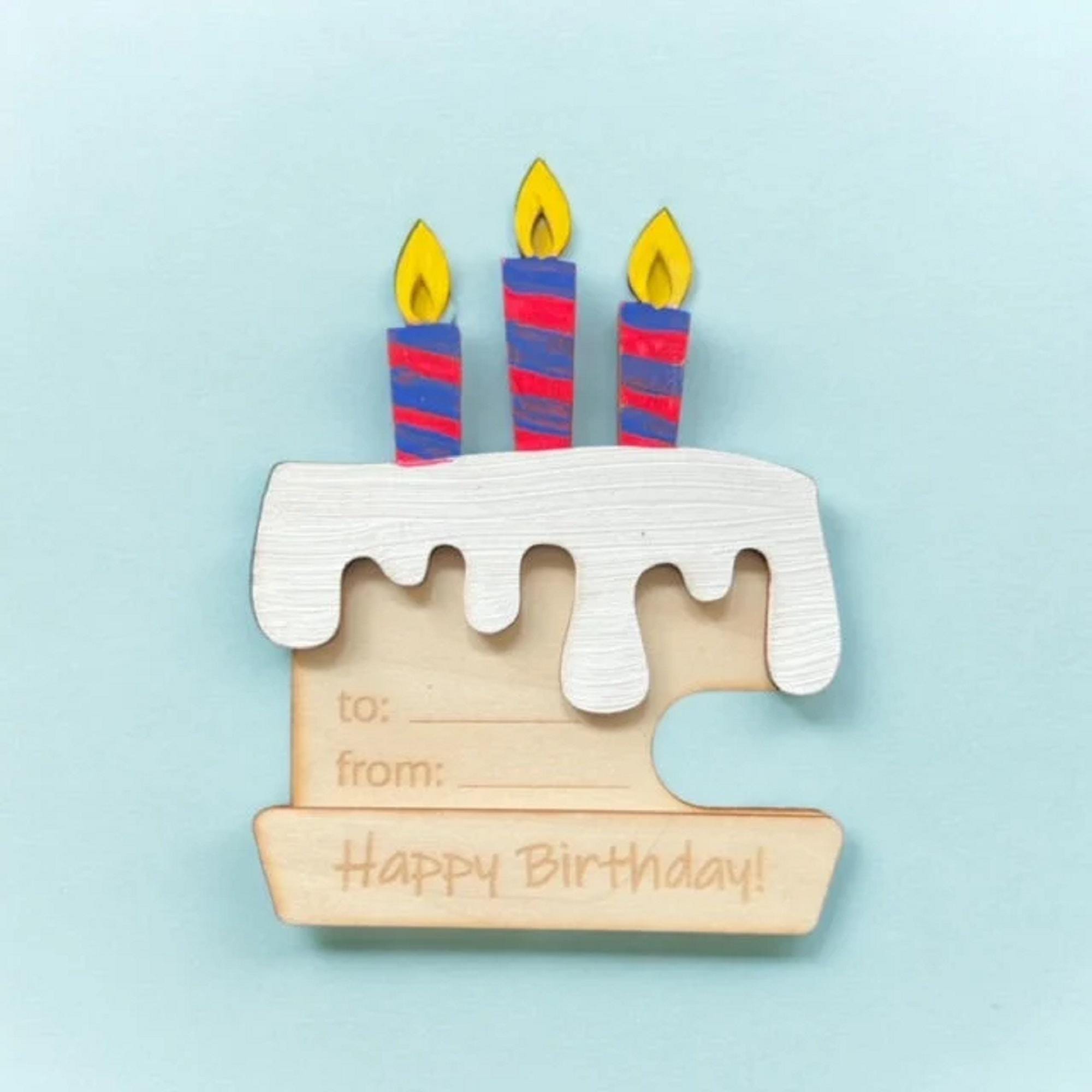 Imagine the joy on your loved one's face when they receive their gift card inside this charming envelope—it transforms a simple gift into a memorable experience that feels thoughtfully prepared and special. The tactile feel of the wood and the cheerful cake design evoke warmth and celebration with every touch.
