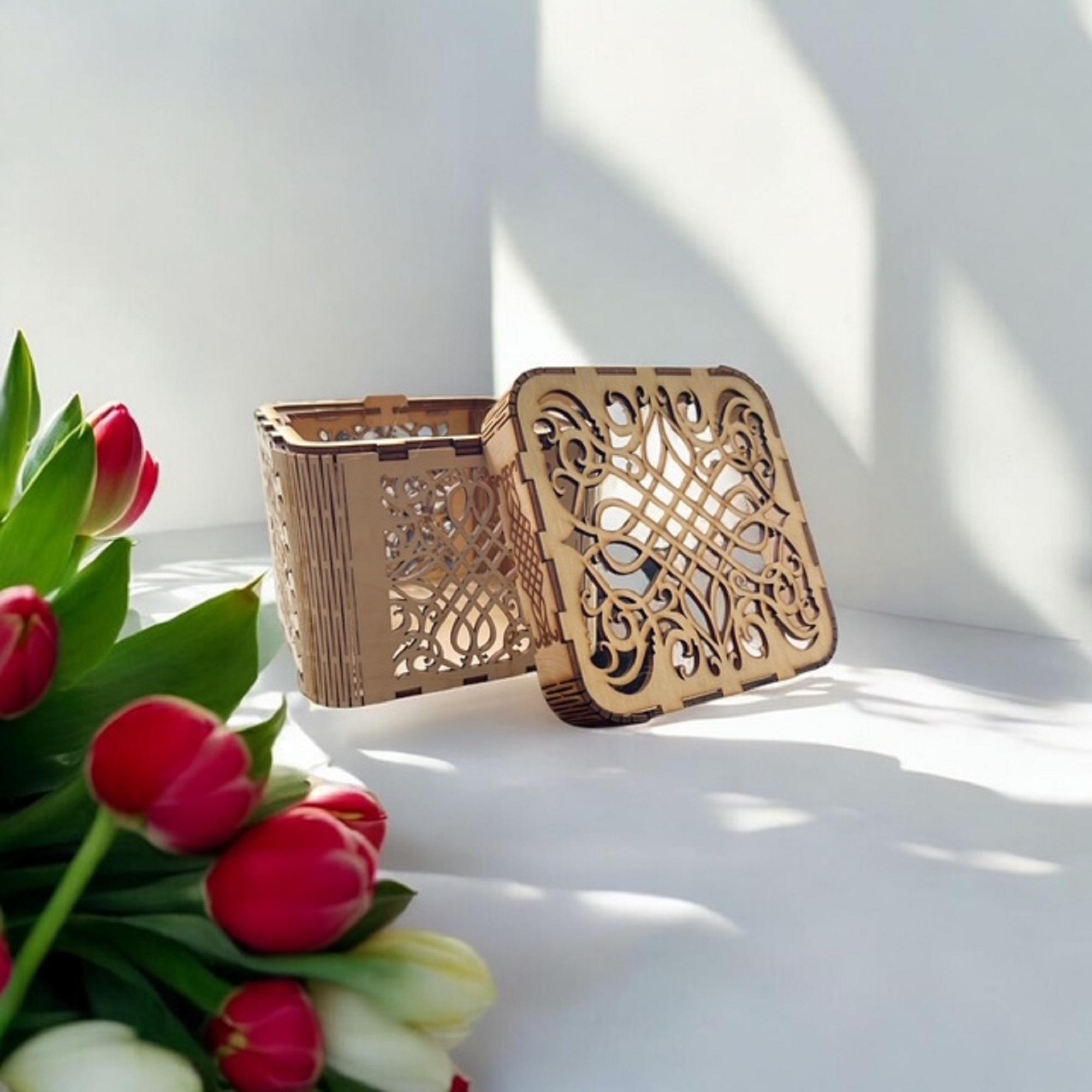 This laser cut wooden box offers a unique blend of rustic charm and practical storage, making it an exceptional choice for organizing your keepsakes or gifting. Handmade with care, this decorative box stands out for its customizable design and durable craftsmanship, providing both beauty and function unlike mass-produced alternatives.