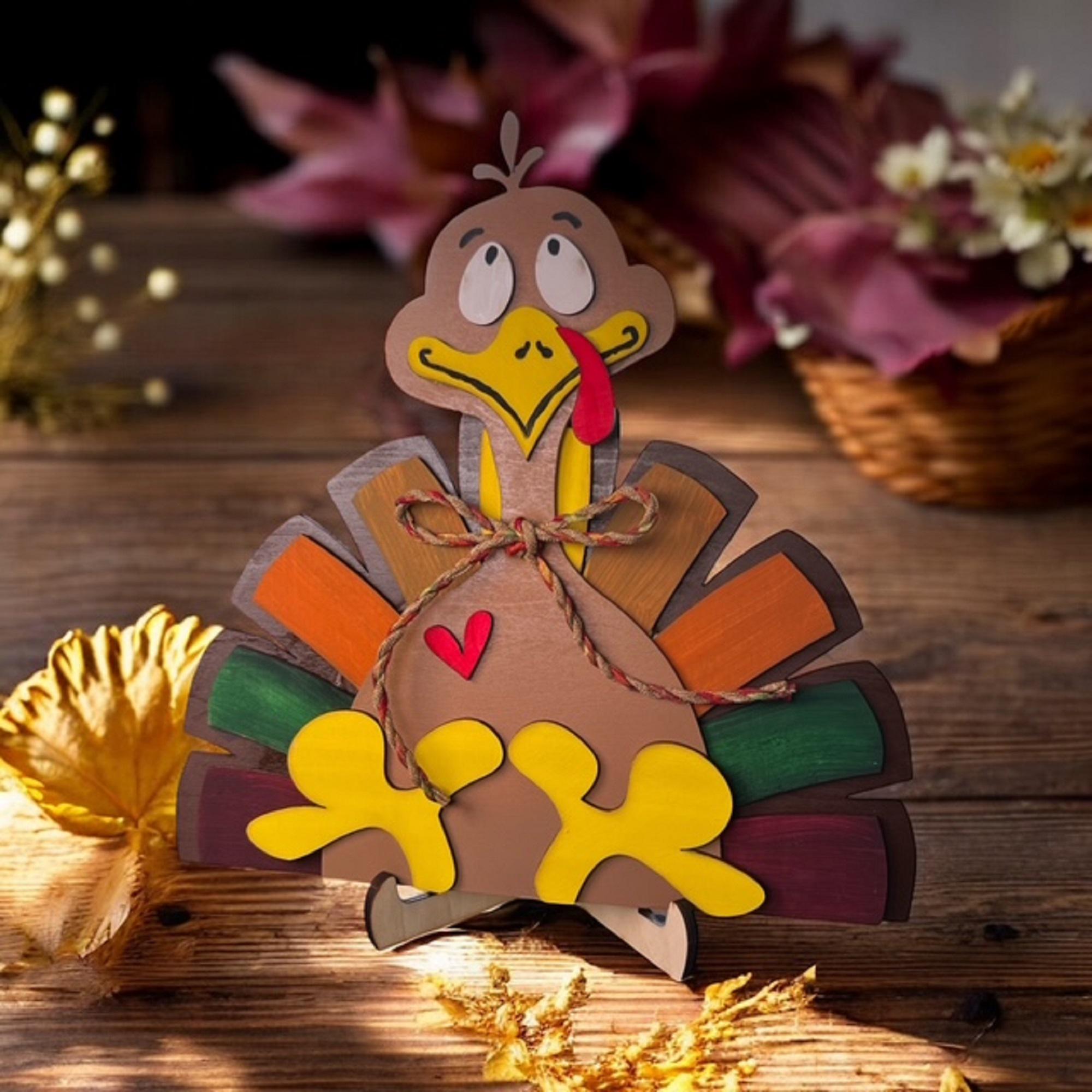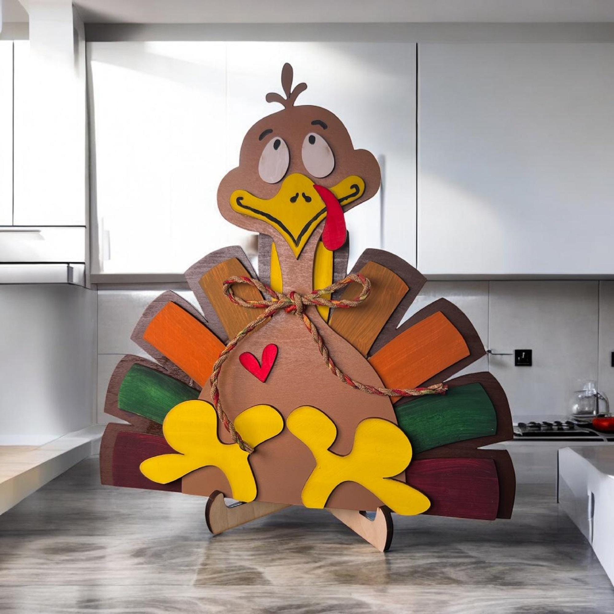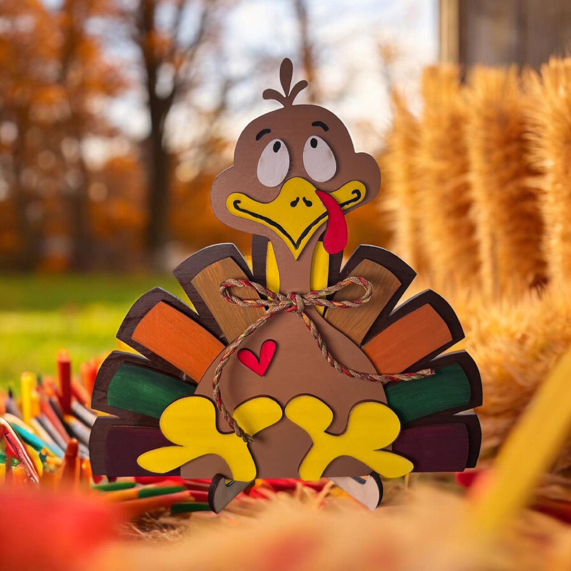 Celebrate the season with this handcrafted wood turkey decoration, designed to bring authentic rustic charm to your fall décor. Unlike mass-produced items, each turkey is carefully laser cut and finished by hand, making it a unique centerpiece for your Thanksgiving and harvest table displays.