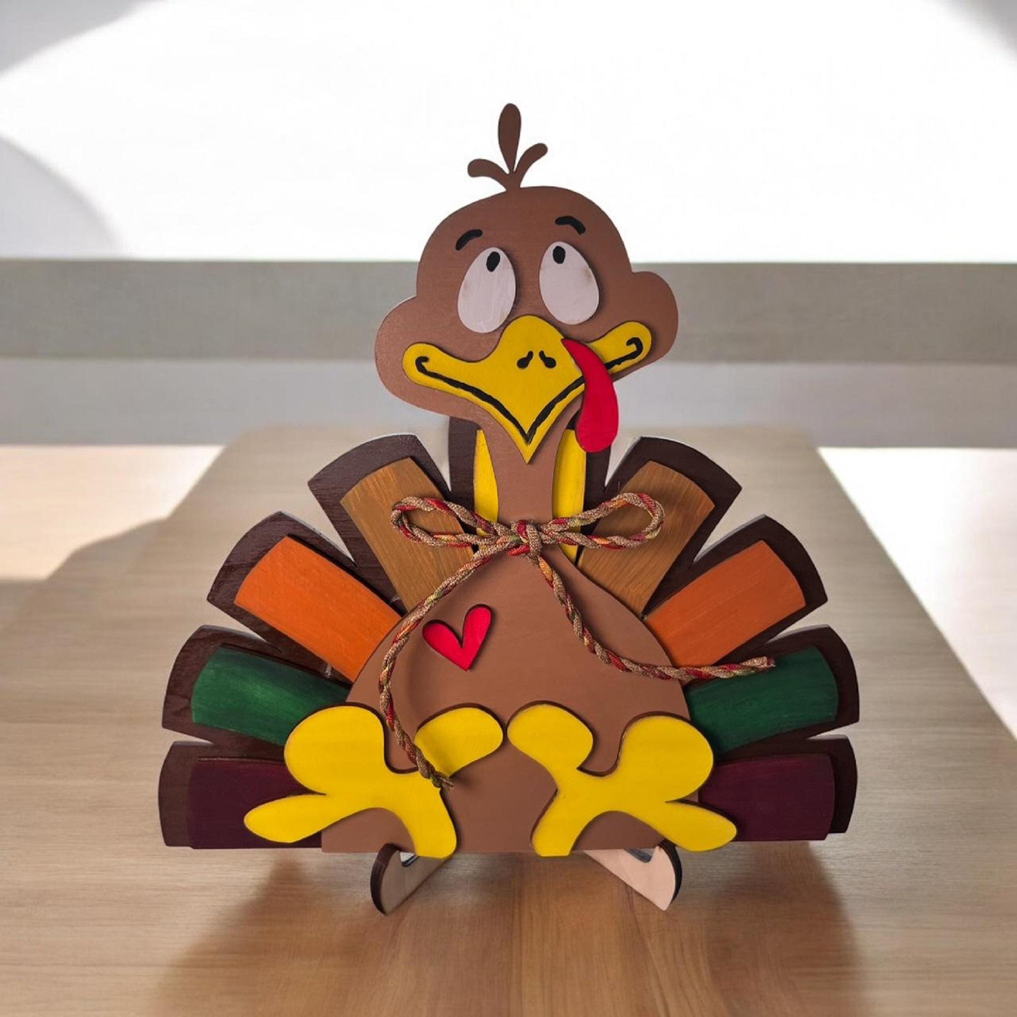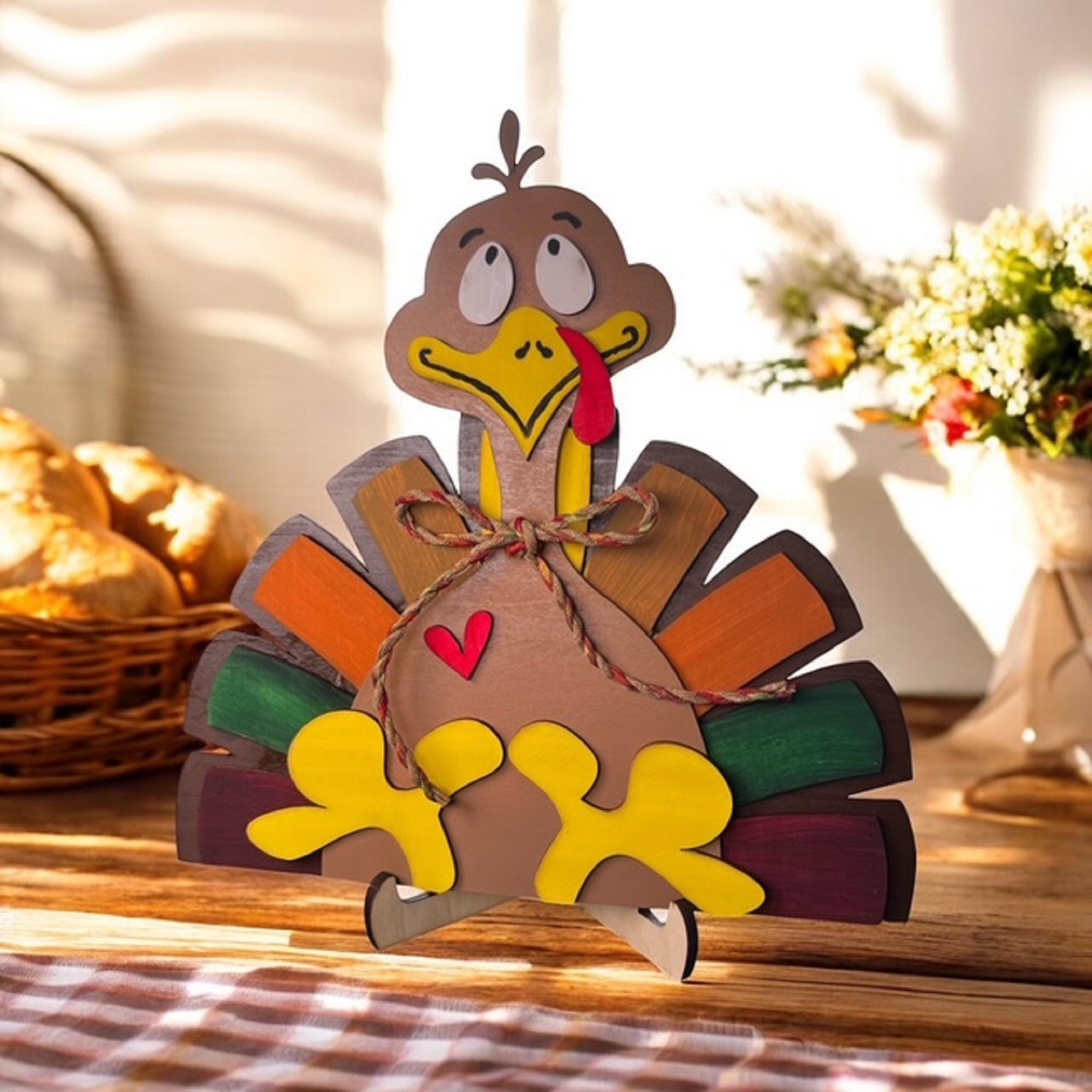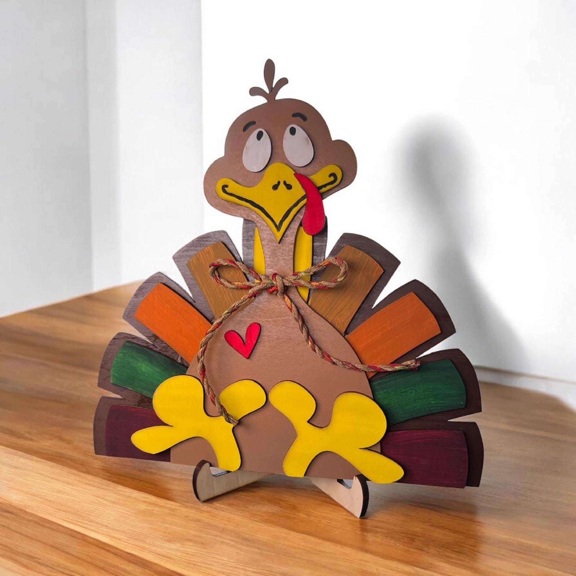 Celebrate the season with this handcrafted wood turkey decoration, designed to bring authentic rustic charm to your fall décor. Unlike mass-produced items, each turkey is carefully laser cut and finished by hand, making it a unique centerpiece for your Thanksgiving and harvest table displays.