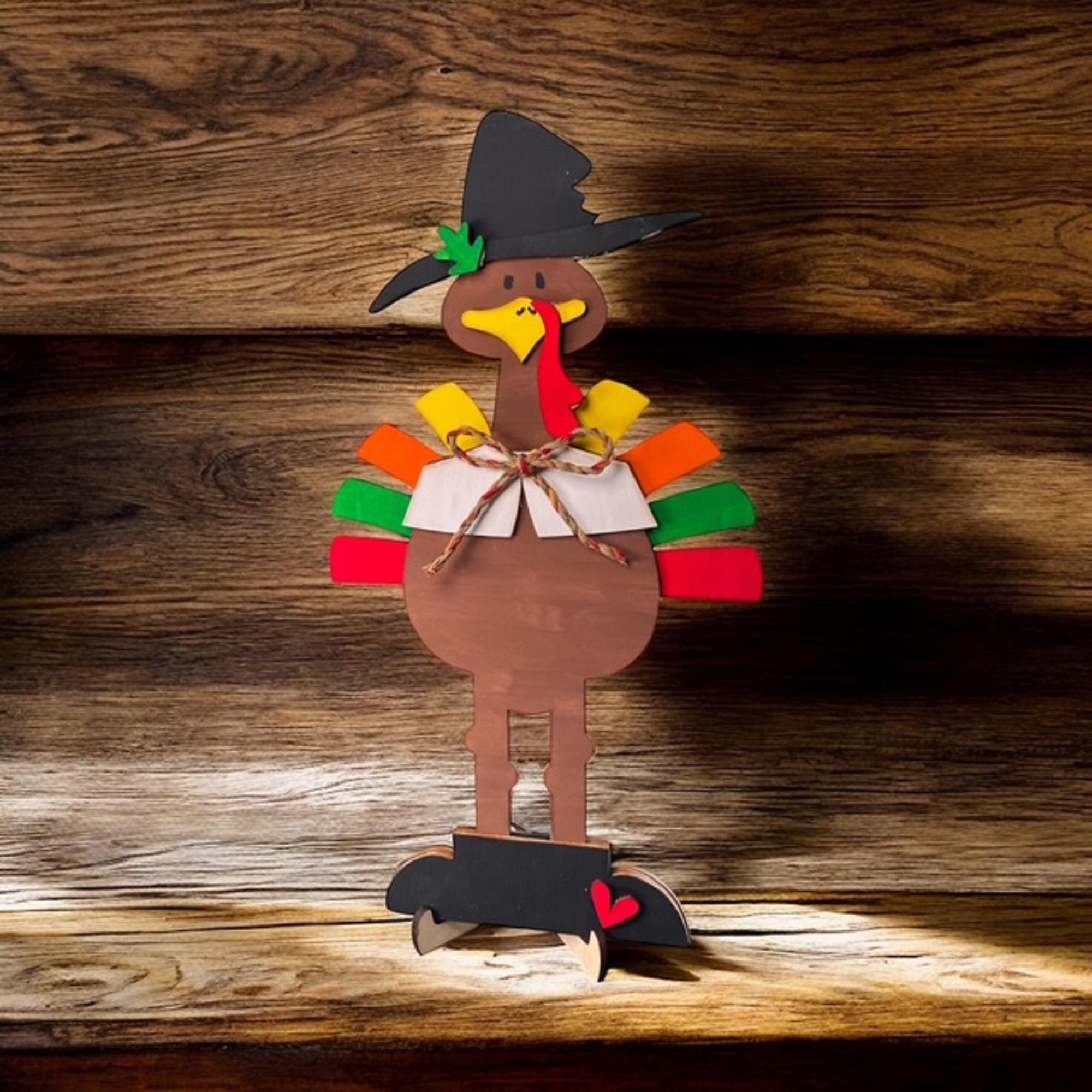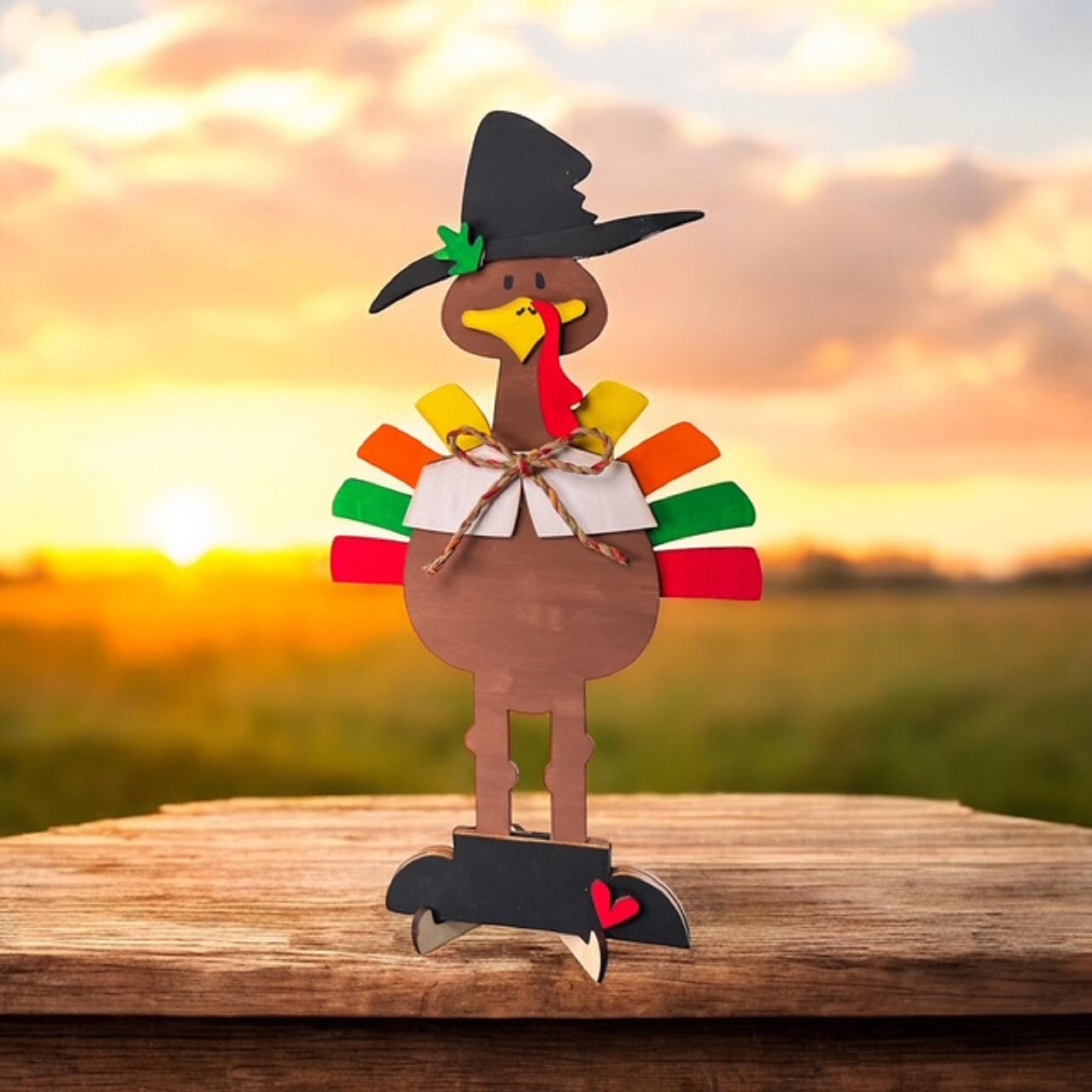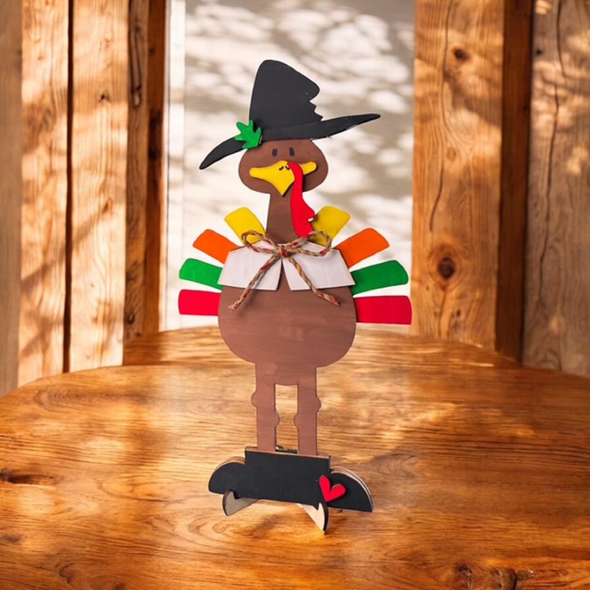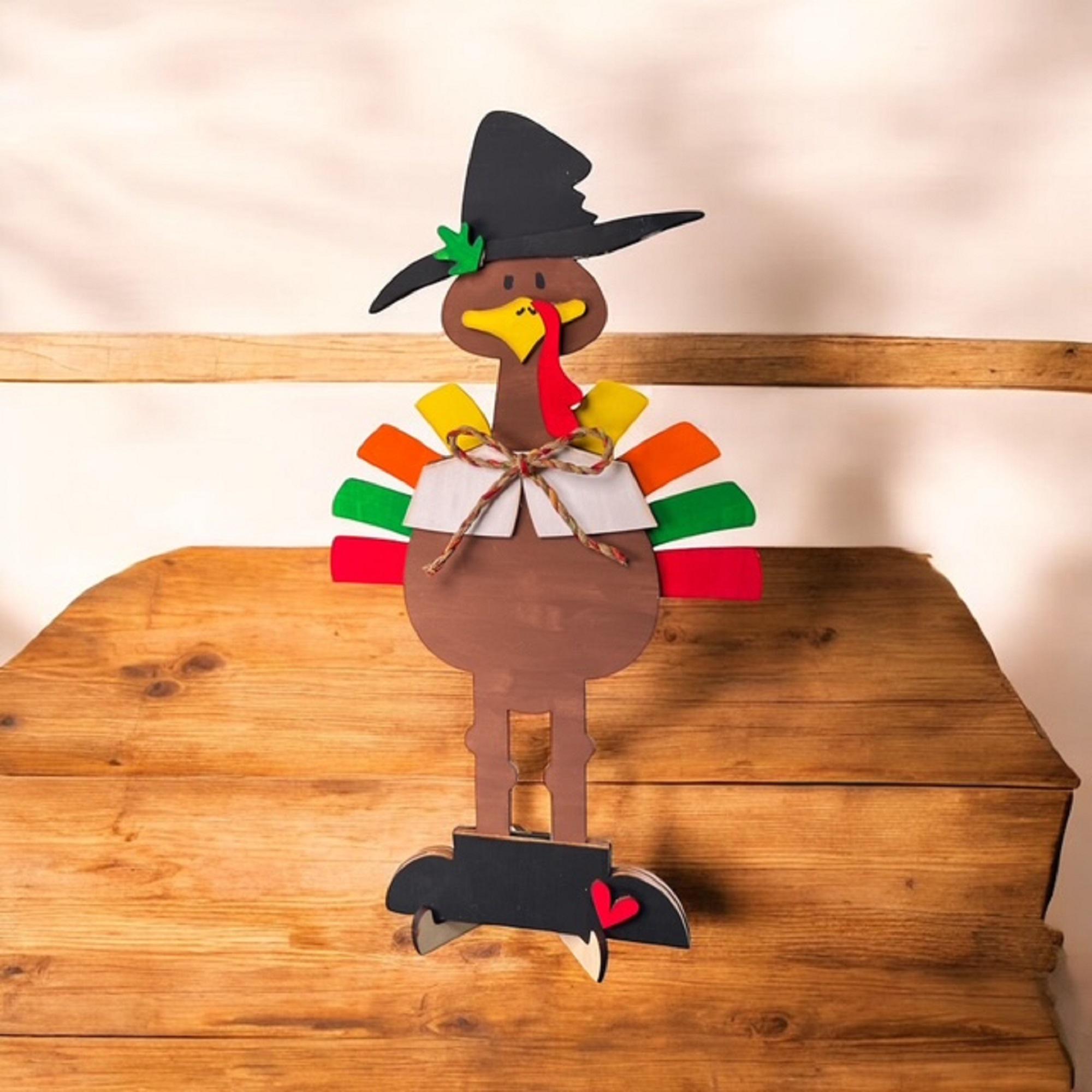 Hand Painted Wooden Turkey: Thanksgiving Table Decoration