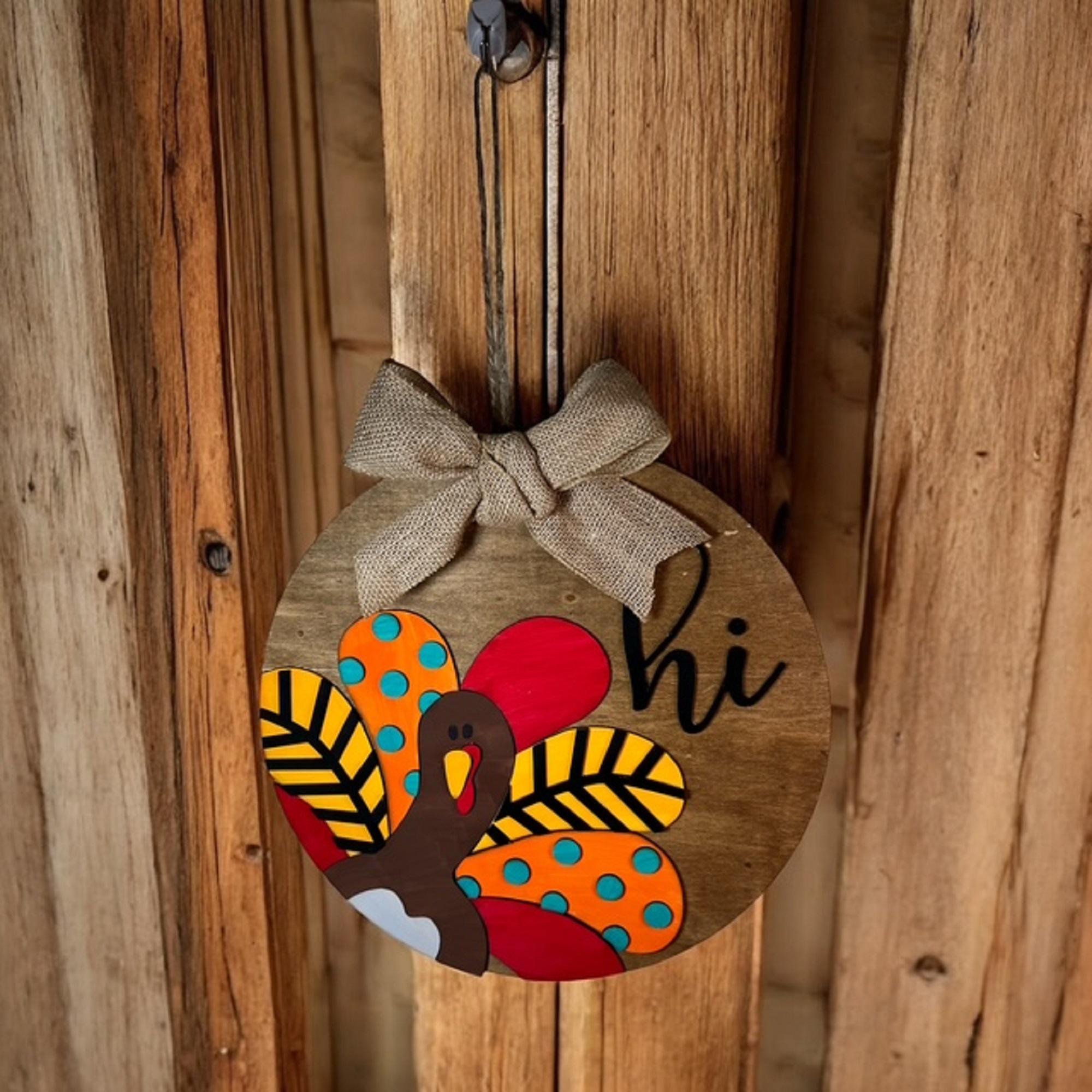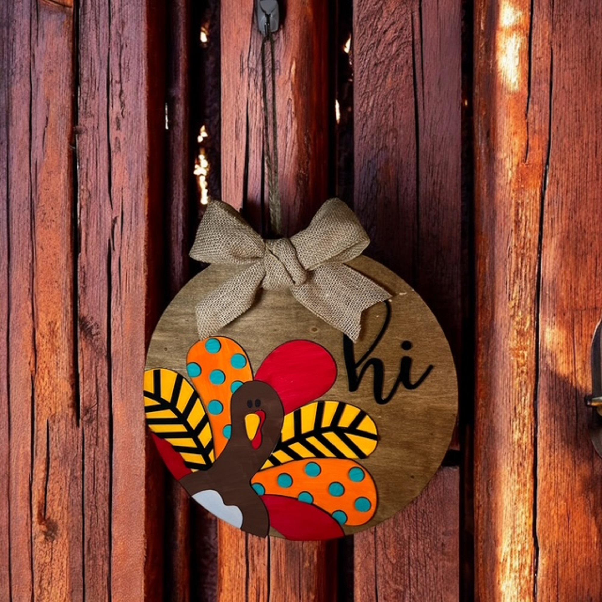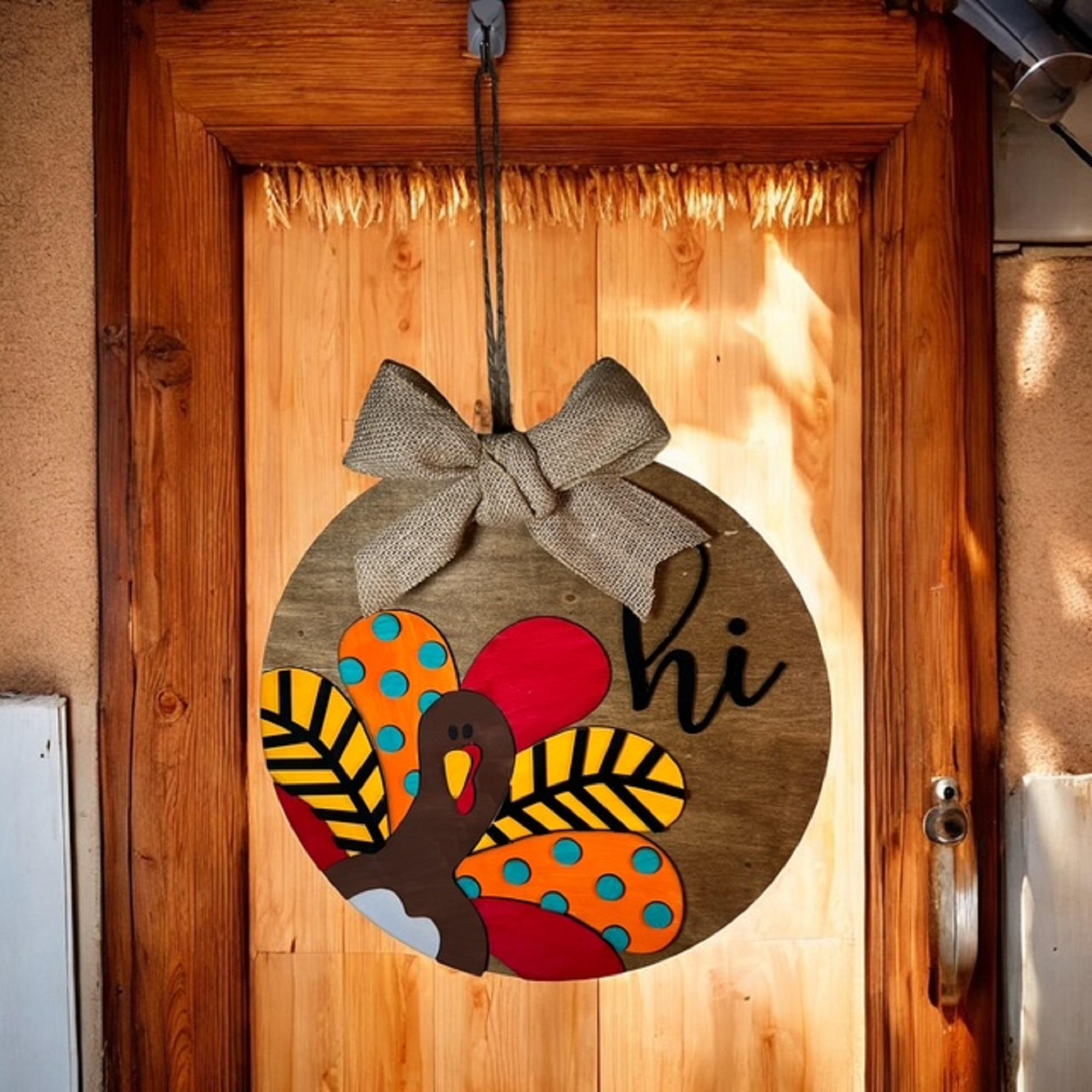 Turkey Door Hanger: Fall Decor with Burlap Bow