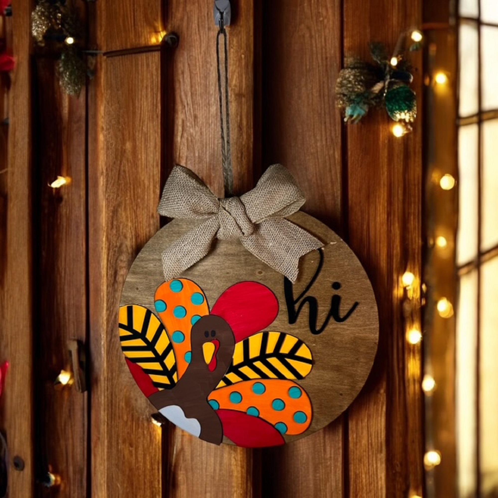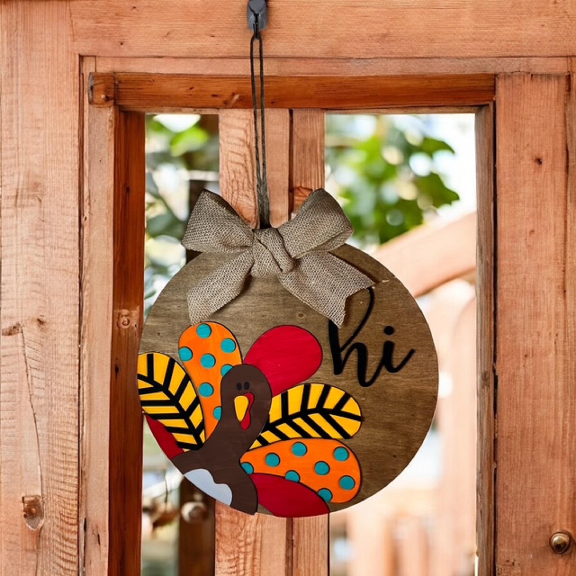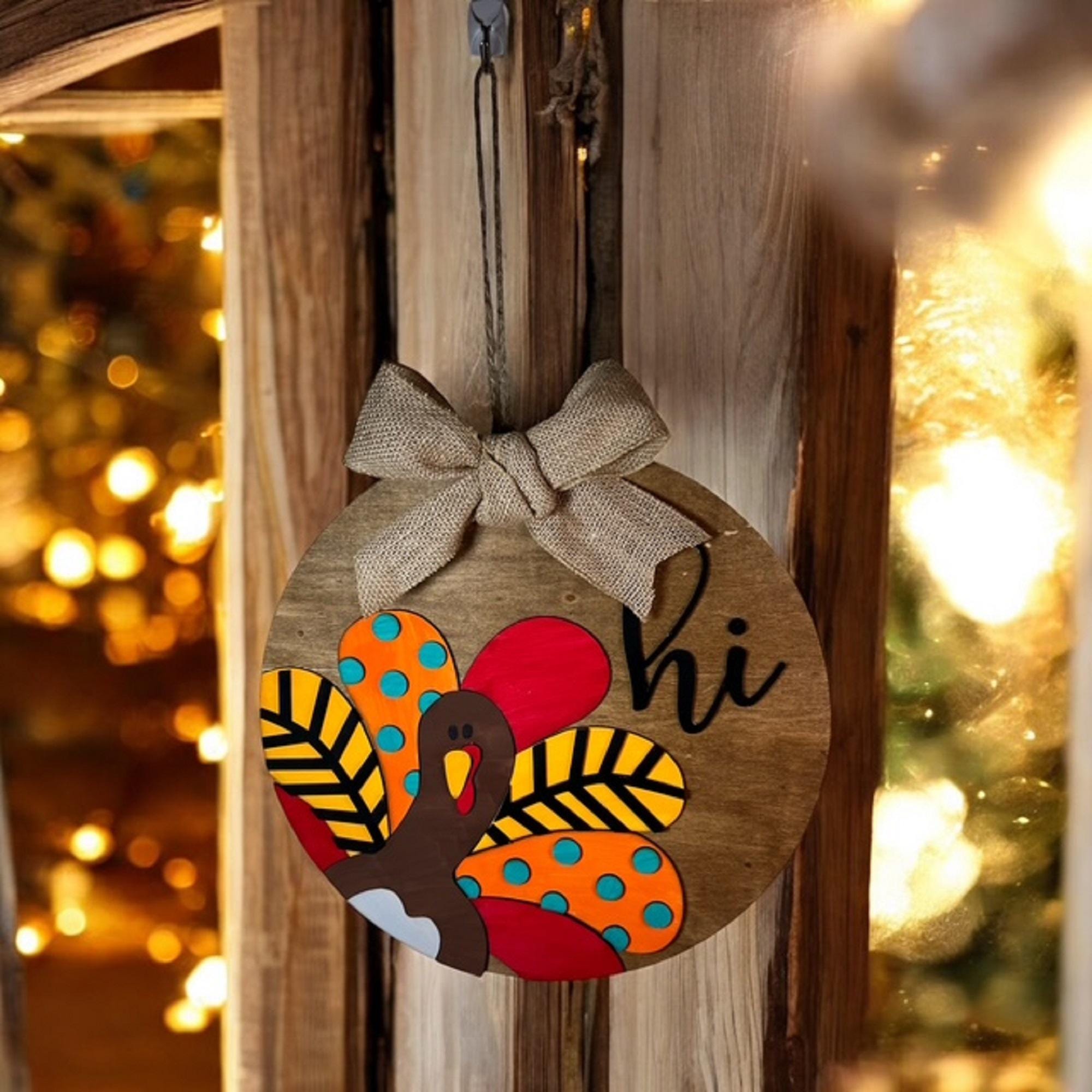 Welcome guests with a charming turkey door hanger that brings warmth and festive spirit to your front porch this Thanksgiving. Crafted with durable materials and thoughtful design, this fall harvest decoration stands out as a welcoming accent that celebrates the essence of autumn.