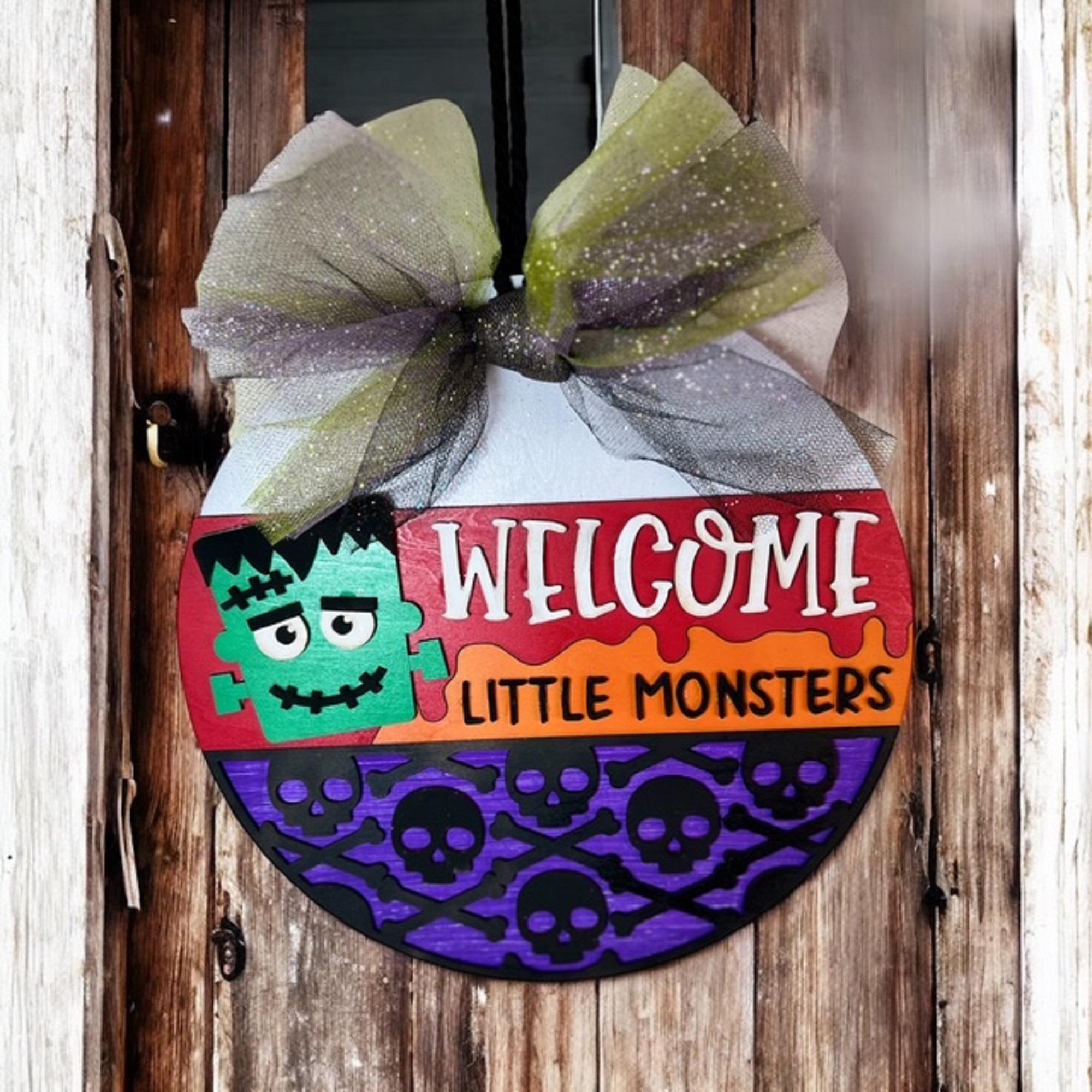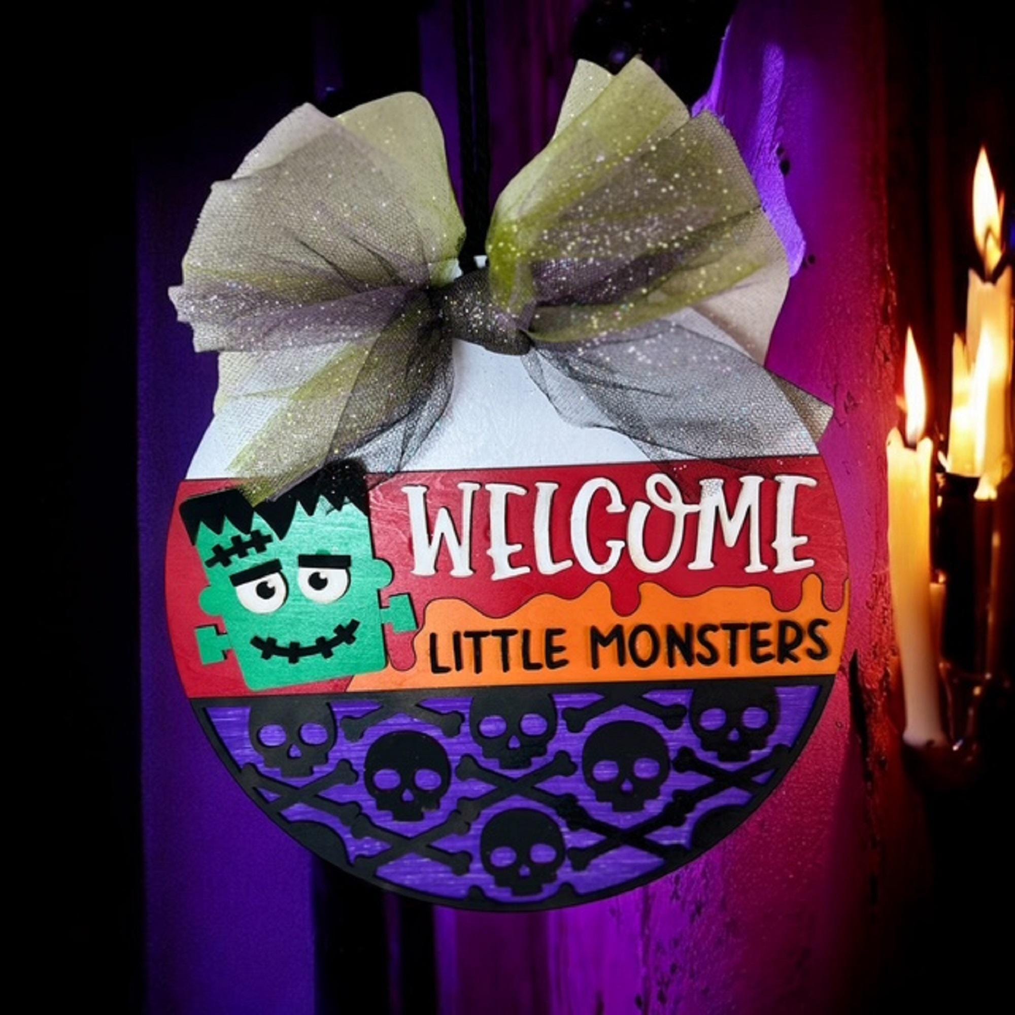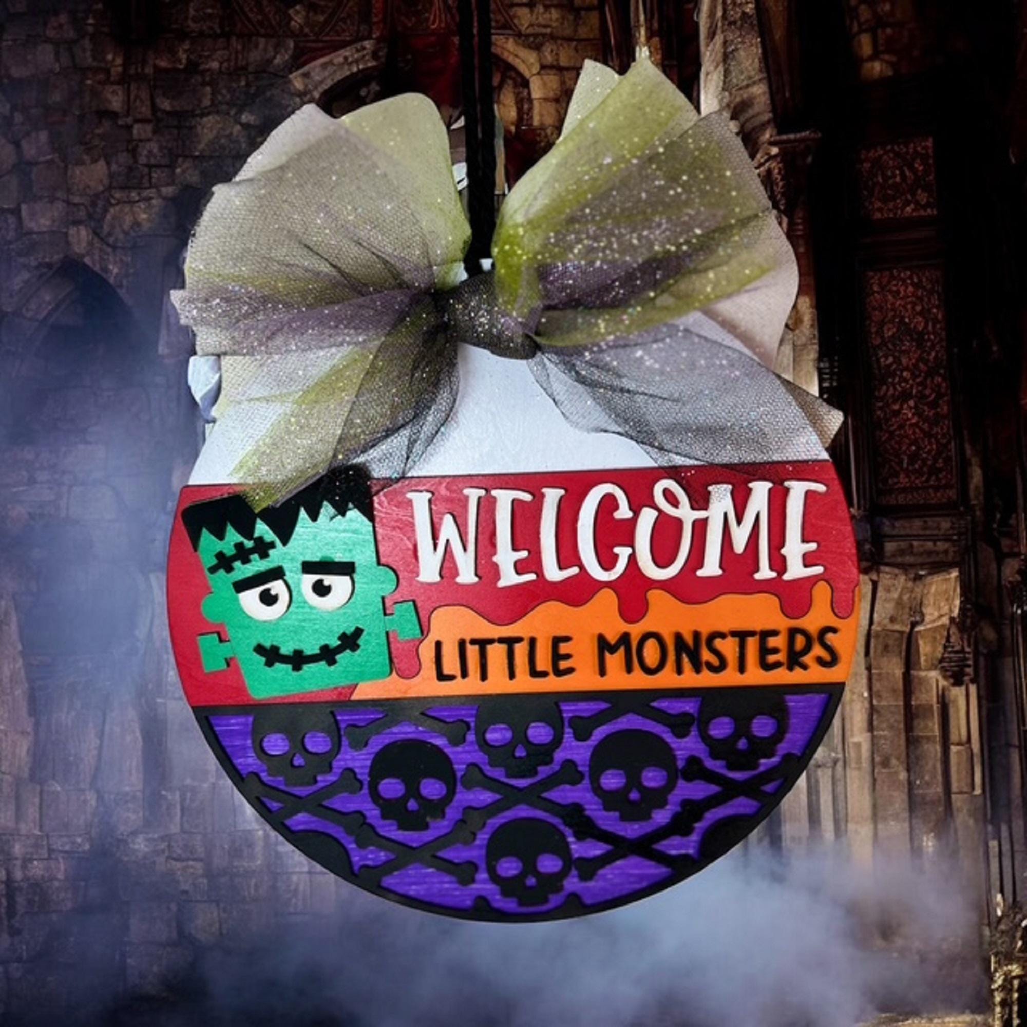 Order your Little Monsters door hanger today to secure this limited-edition Halloween decoration. Enjoy responsive customer service and fast shipping from our shop, ensuring your festive door display arrives ready to enchant.