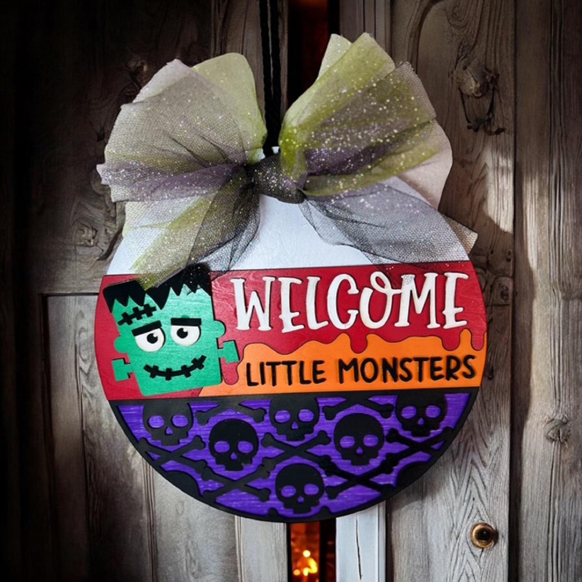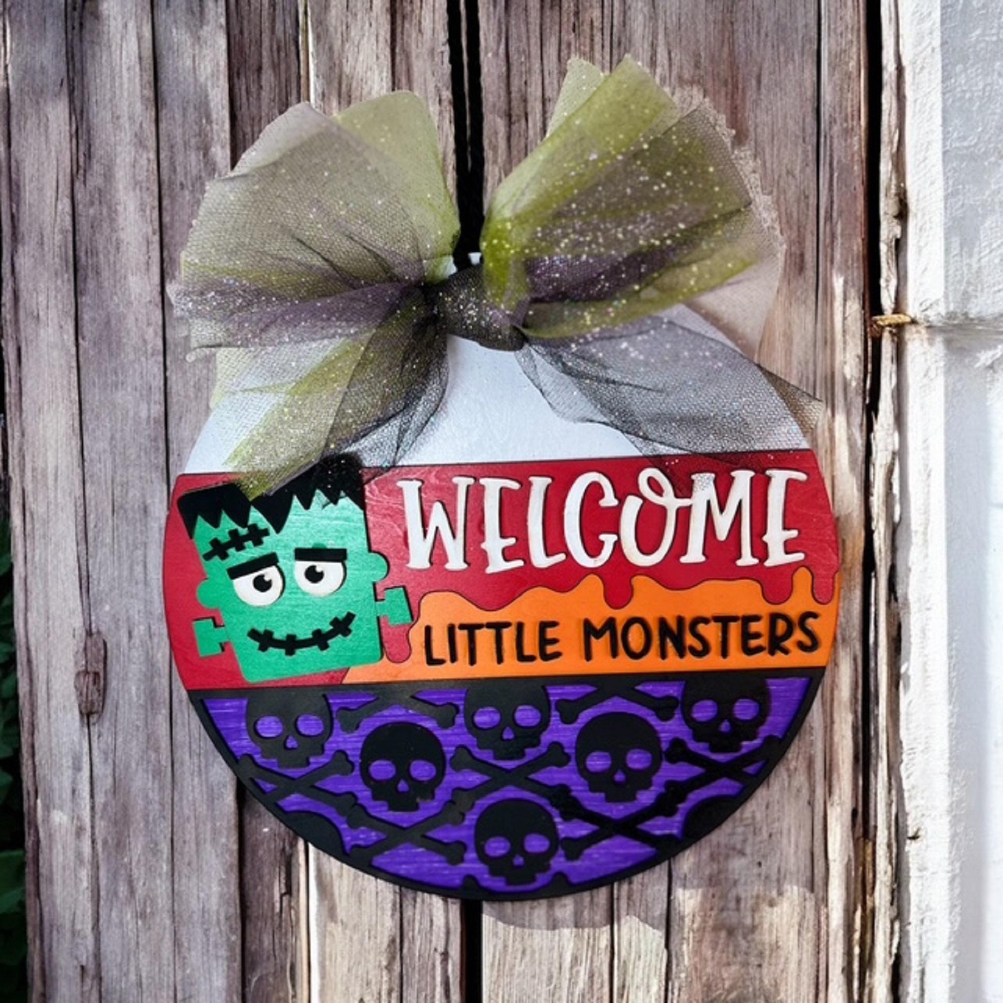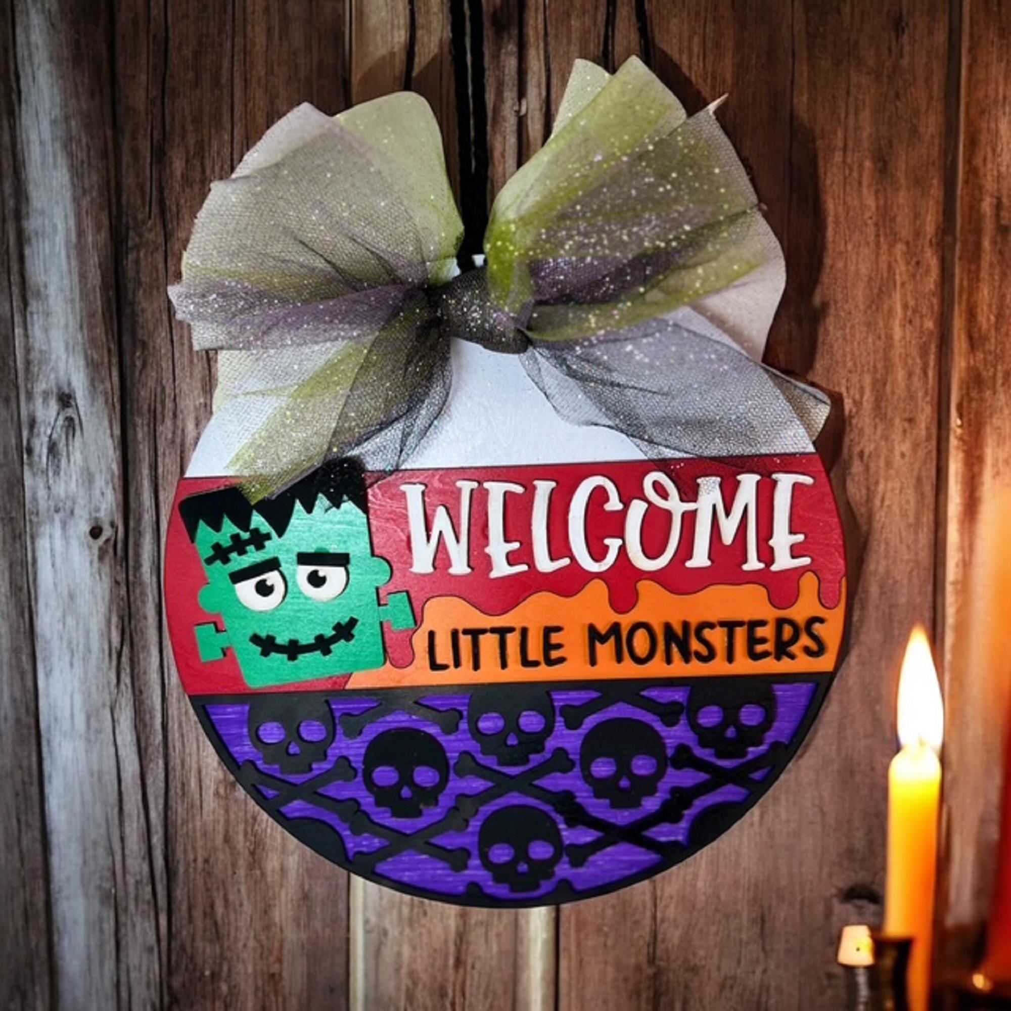 Order your Little Monsters door hanger today to secure this limited-edition Halloween decoration. Enjoy responsive customer service and fast shipping from our shop, ensuring your festive door display arrives ready to enchant.
