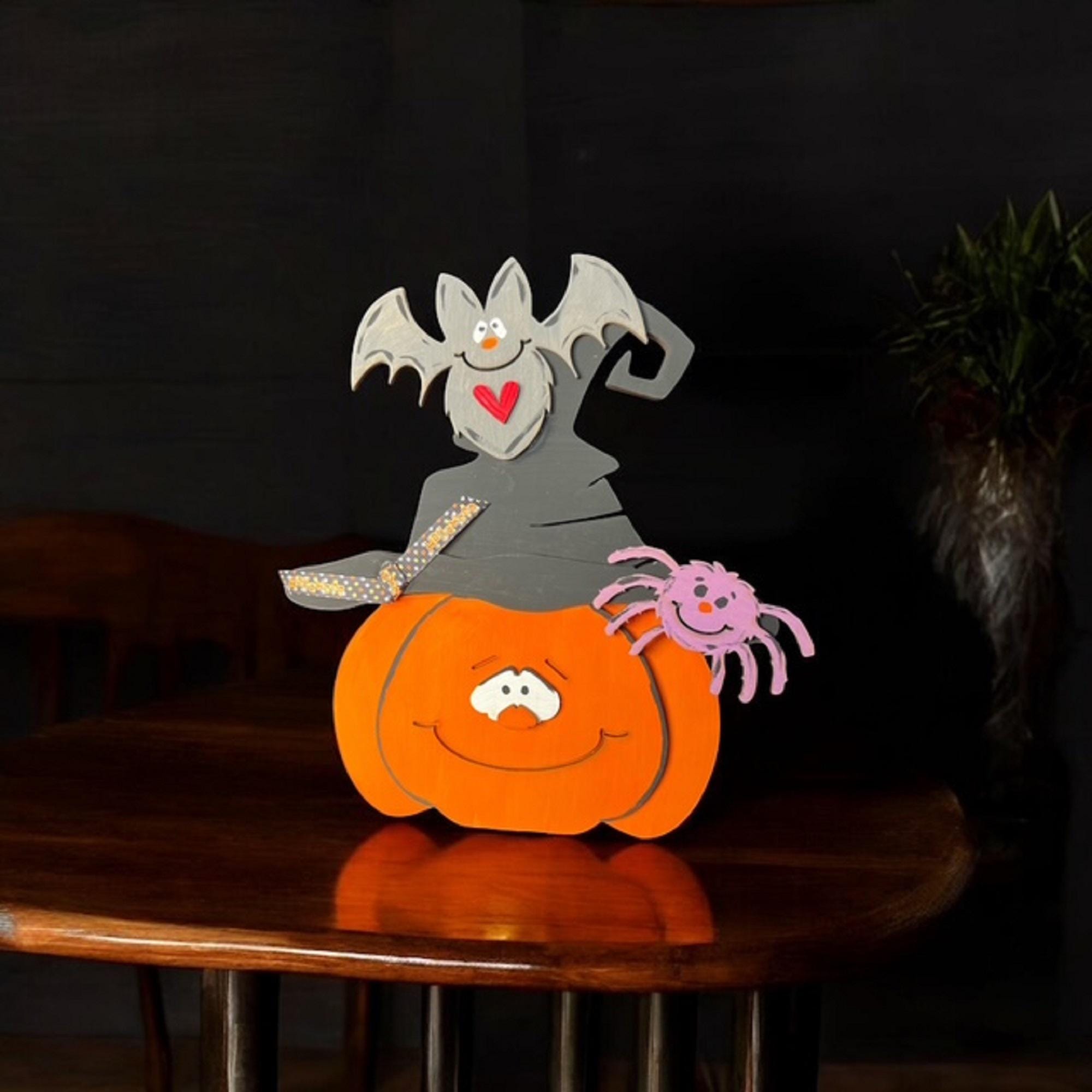 Laser Cut Pumpkin Decoration: Basswood Halloween Decor