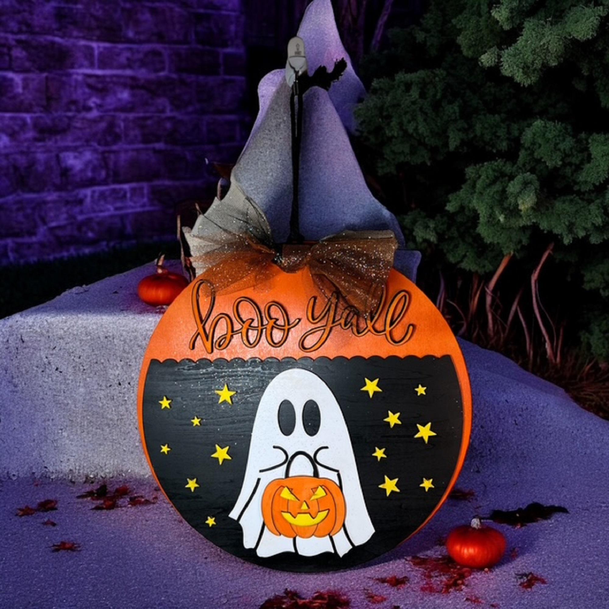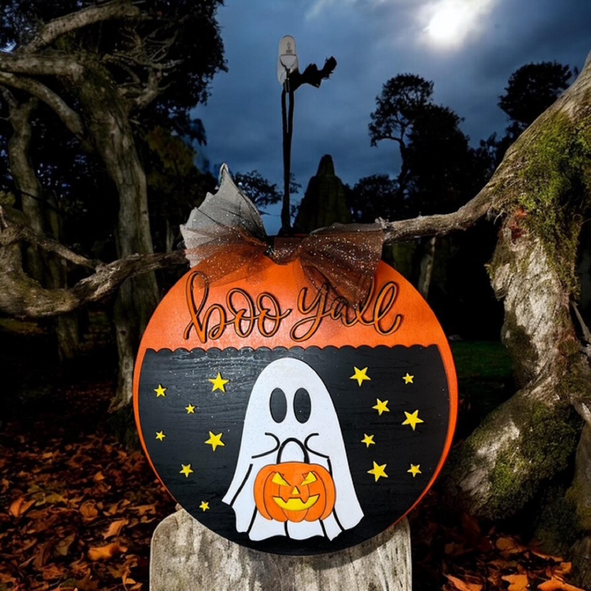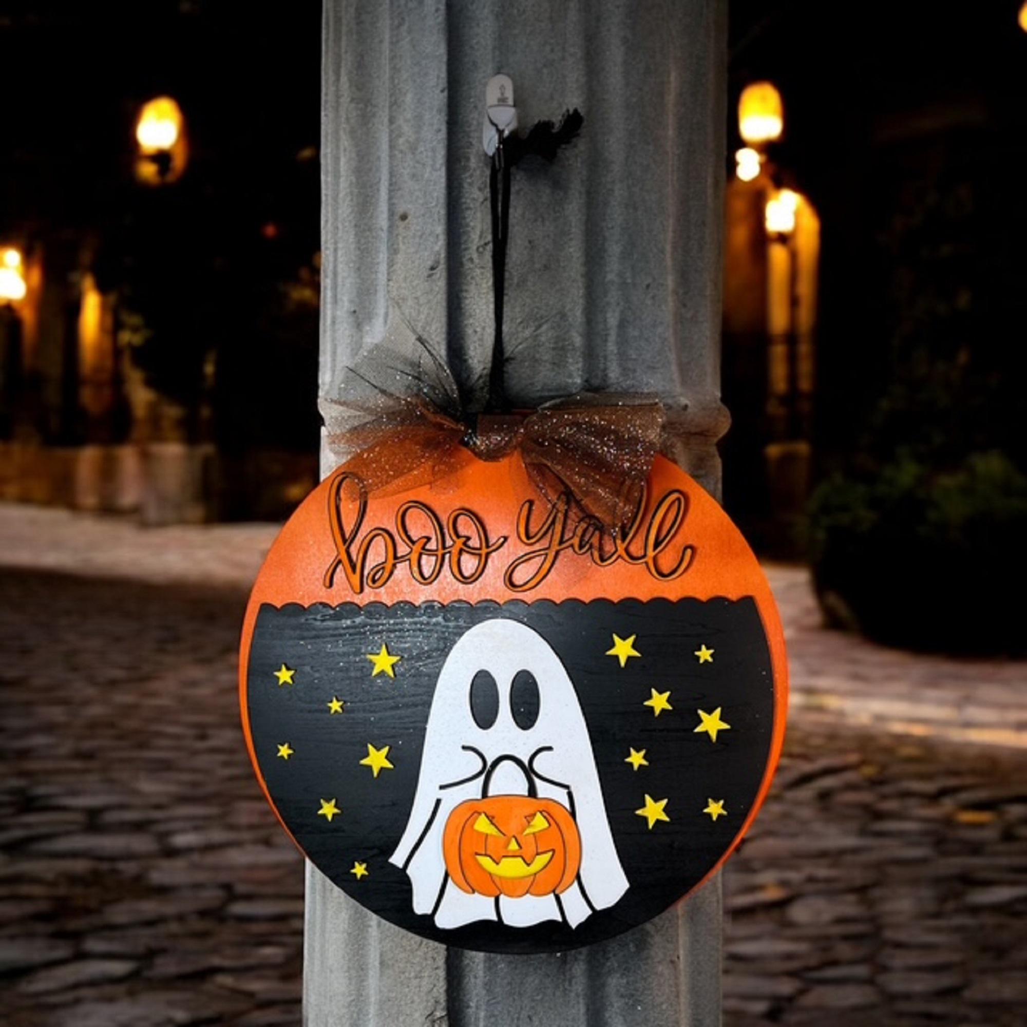 Boo Y'all Ghost Door Hanger: Hand-Painted Basswood Halloween Decor