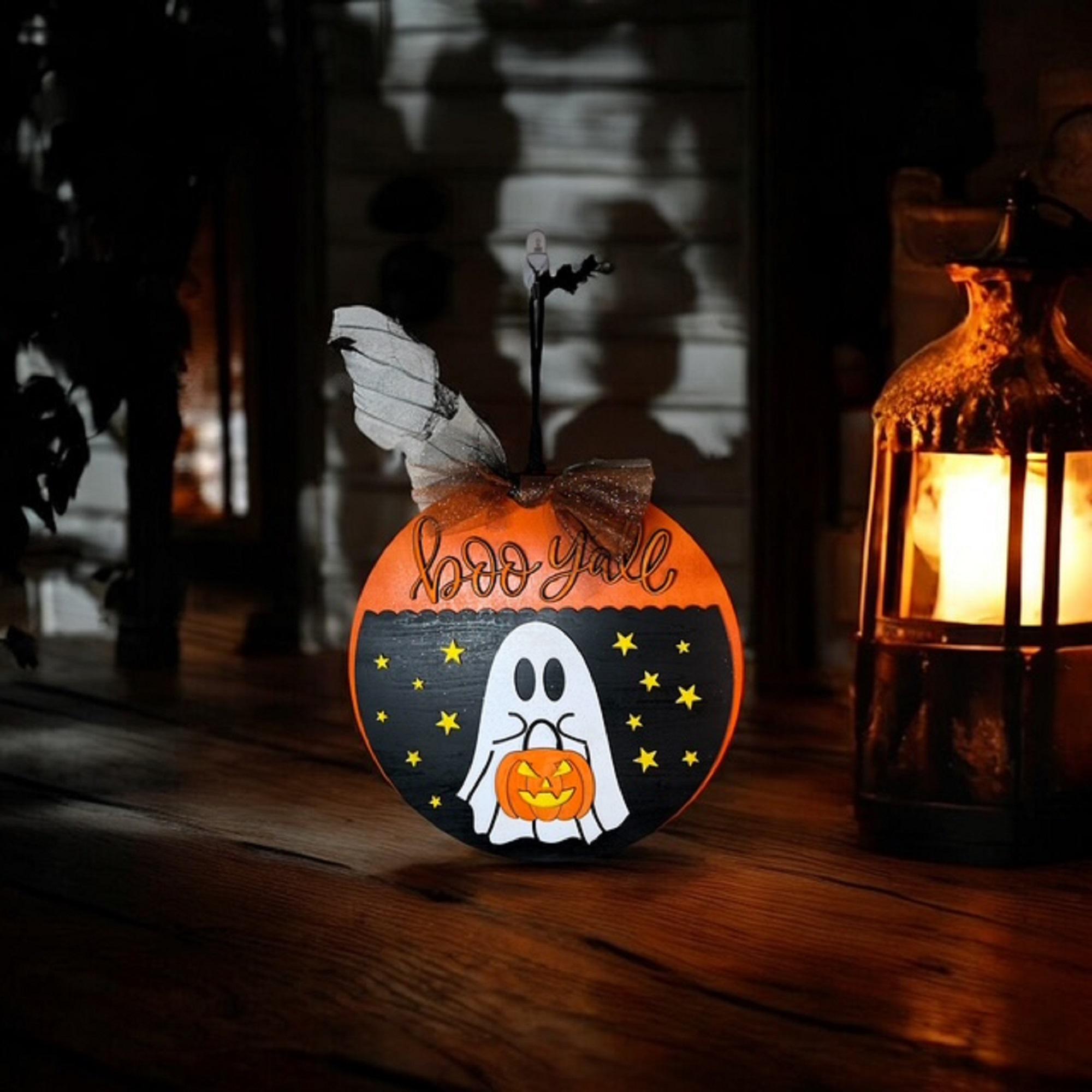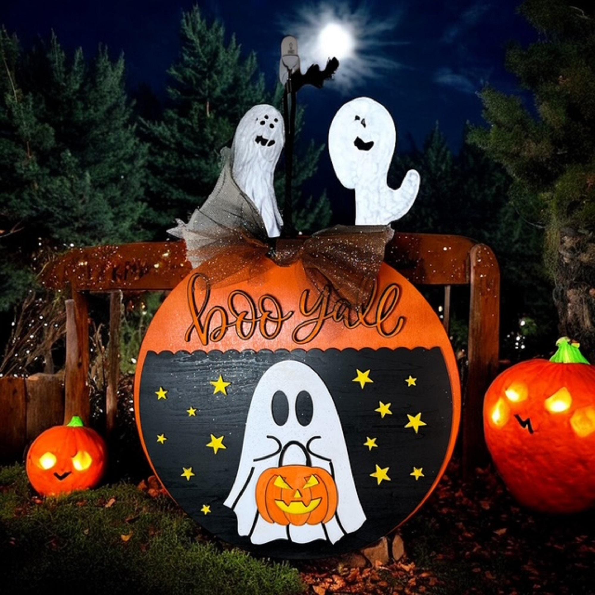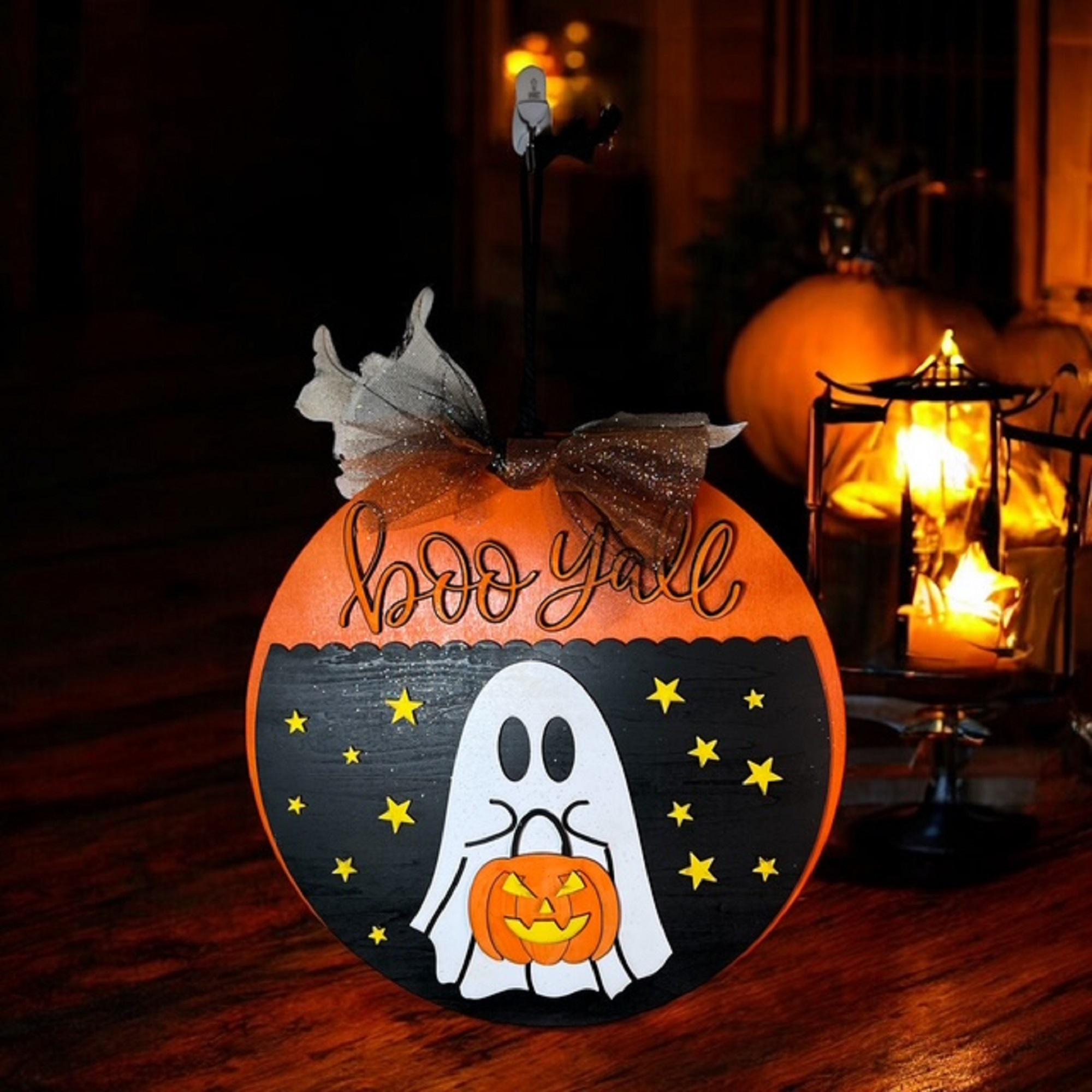 Boo Y'all Ghost Door Hanger: Hand-Painted Basswood Halloween Decor