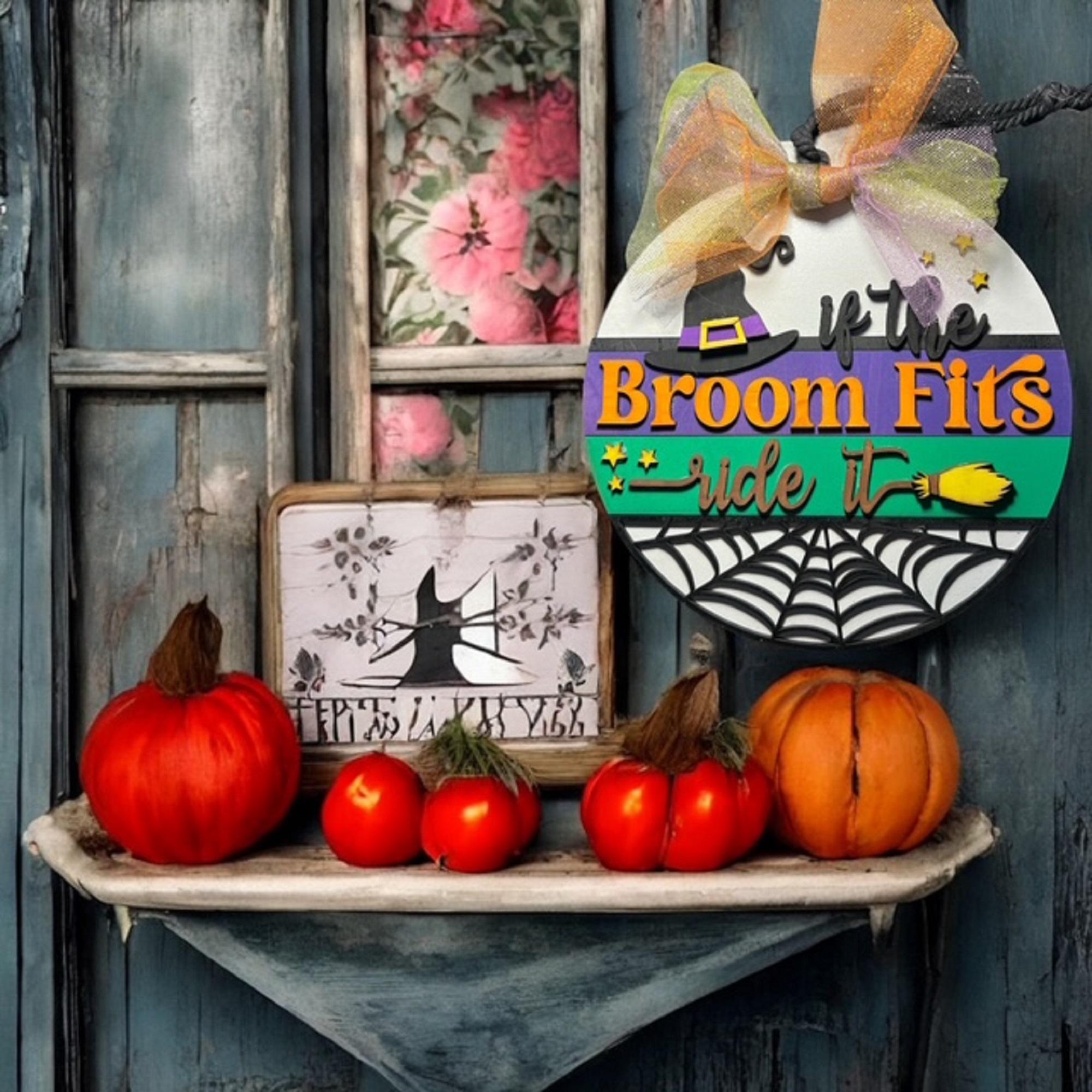 Welcome the spooky season with this charming "If the Broom Fits Ride It" door hanger, designed to bring a whimsical witchy vibe to your Halloween decor. Crafted to stand out on any front door, this unique witch decor adds festive flair that’s both playful and inviting, making your porch the highlight of fall celebrations.