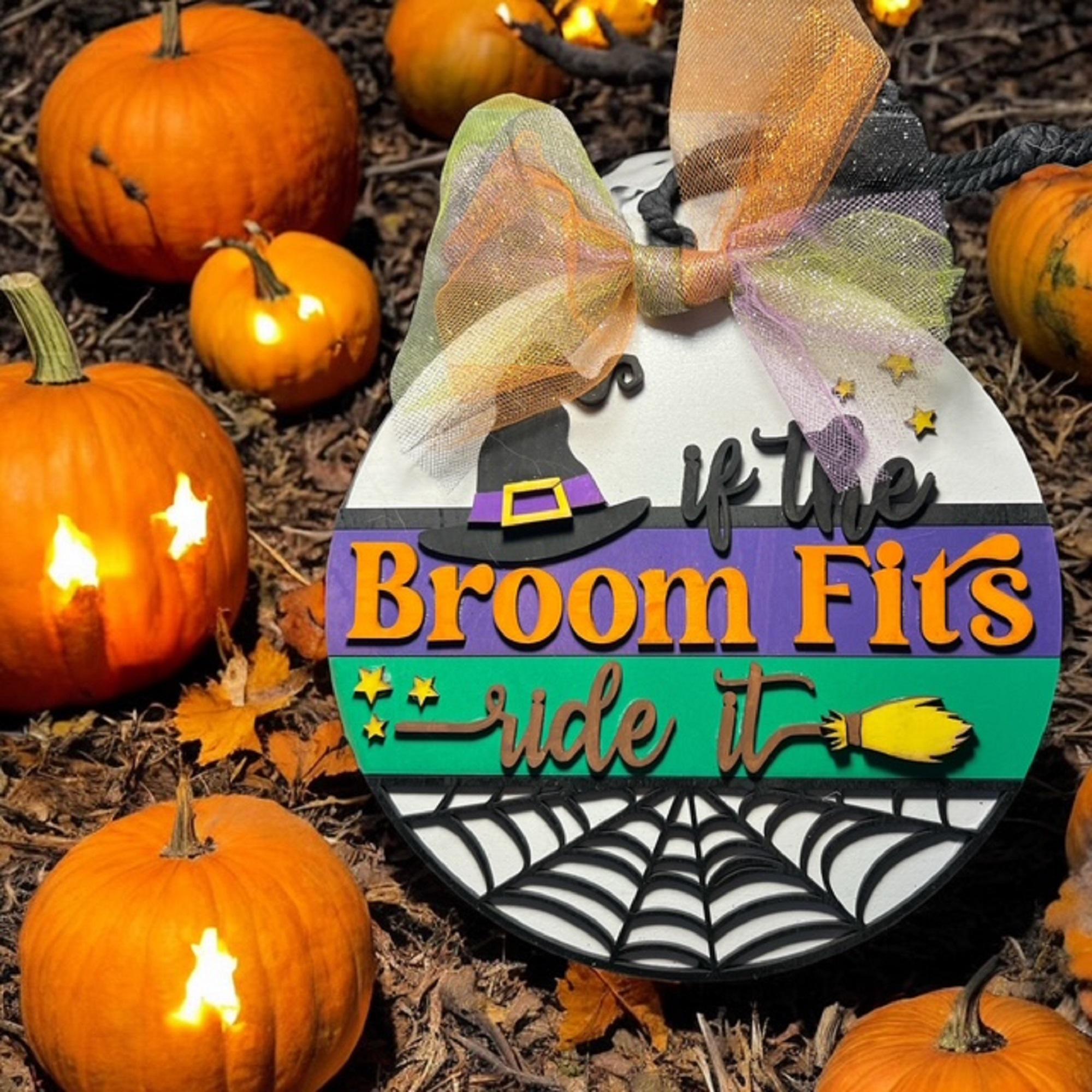 If the Broom Fits Ride It Door Hanger: Halloween Decor