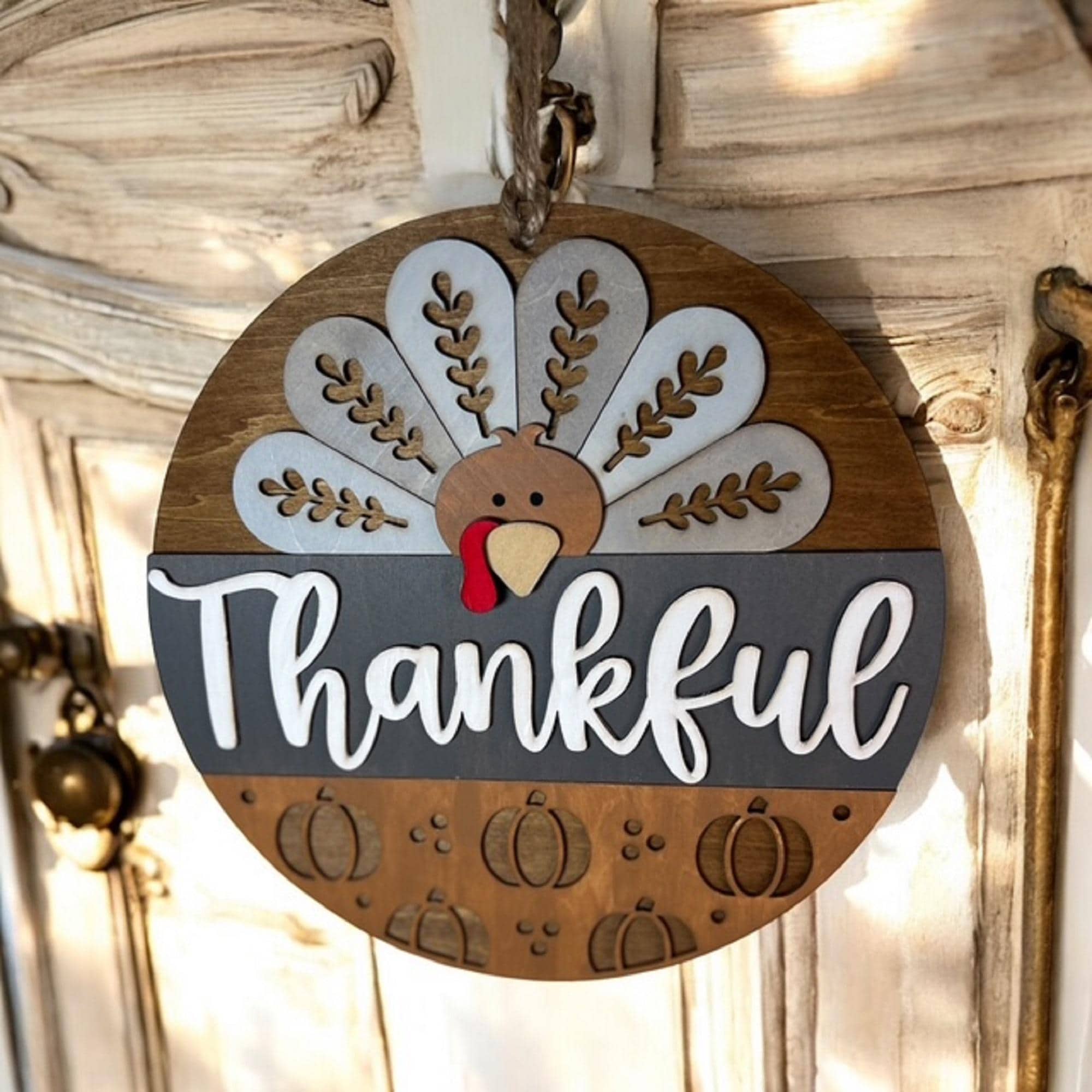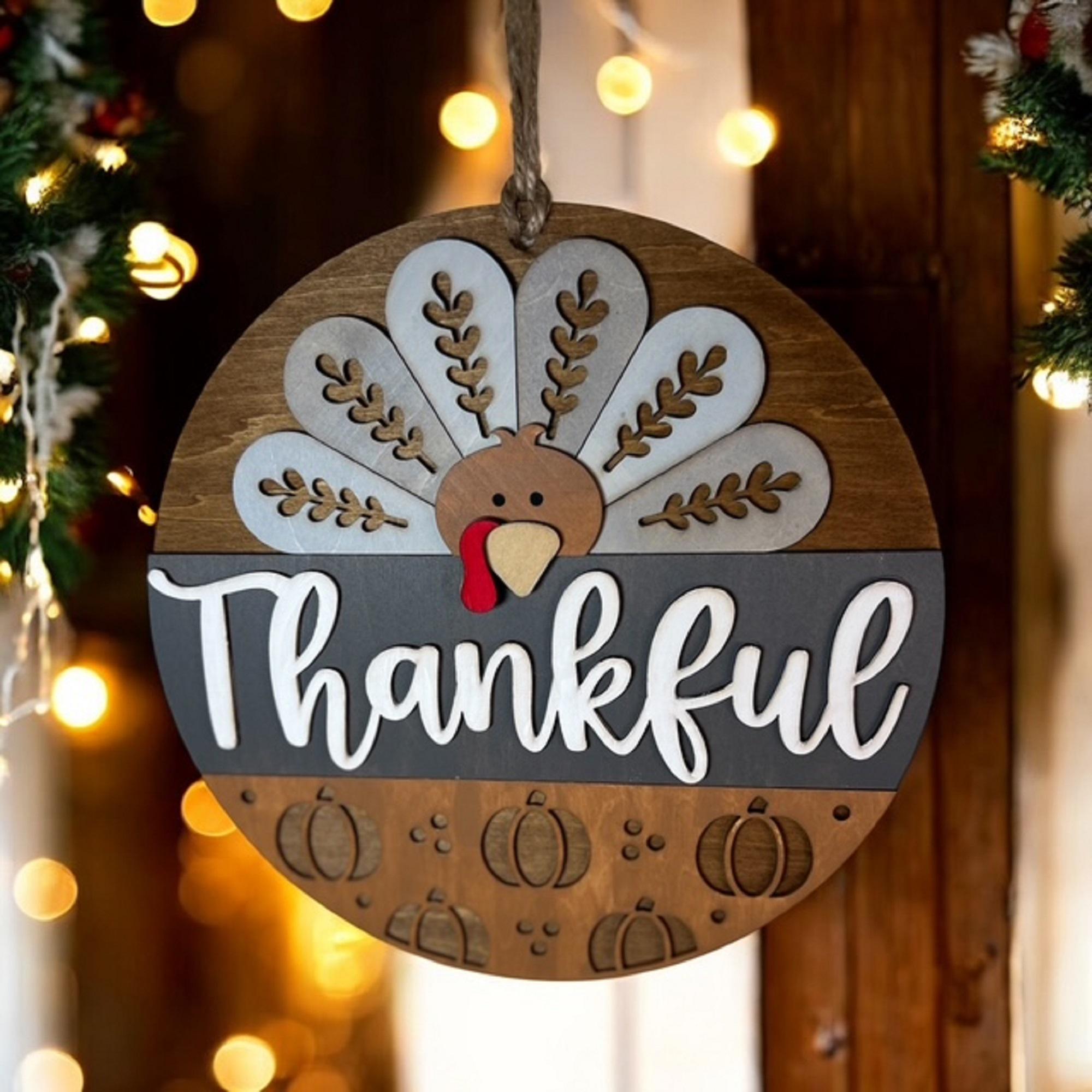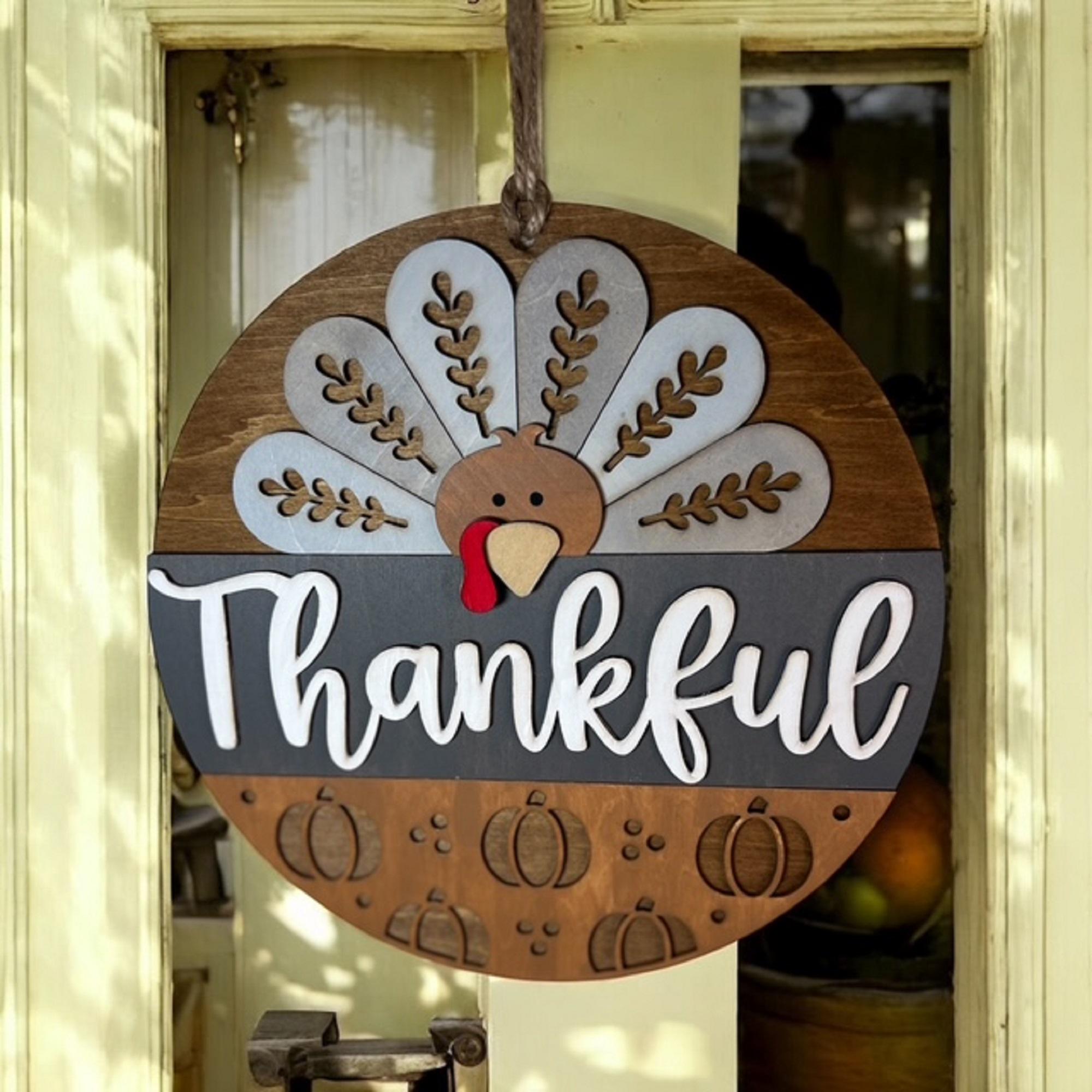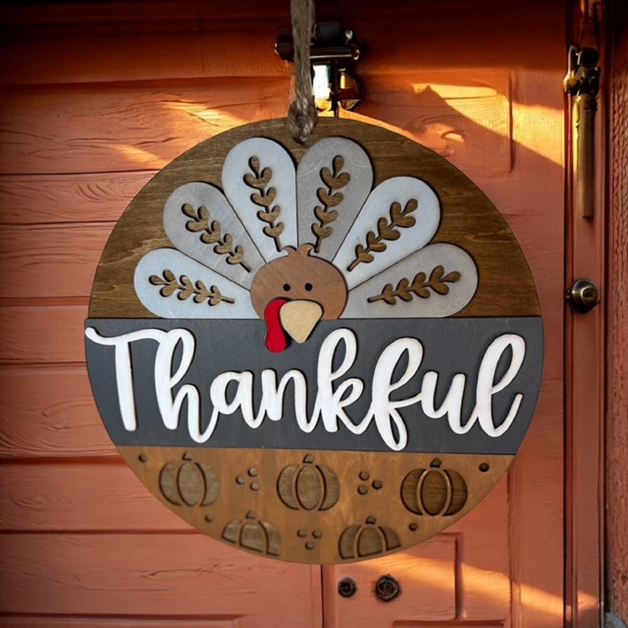 Welcome guests with our Thankful Turkey door hanger, a charming autumn front door decoration designed to bring warmth and gratitude to your Thanksgiving decor. This unique fall welcome sign offers a heartfelt alternative to traditional seasonal wreaths, making your entryway inviting and festive.