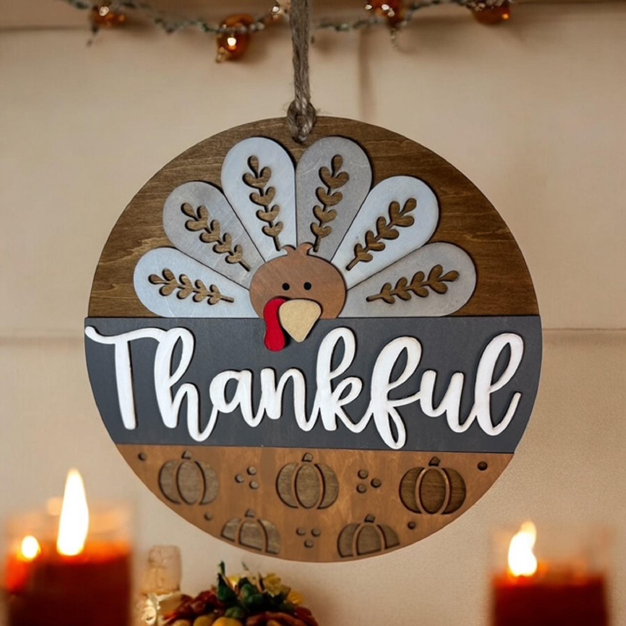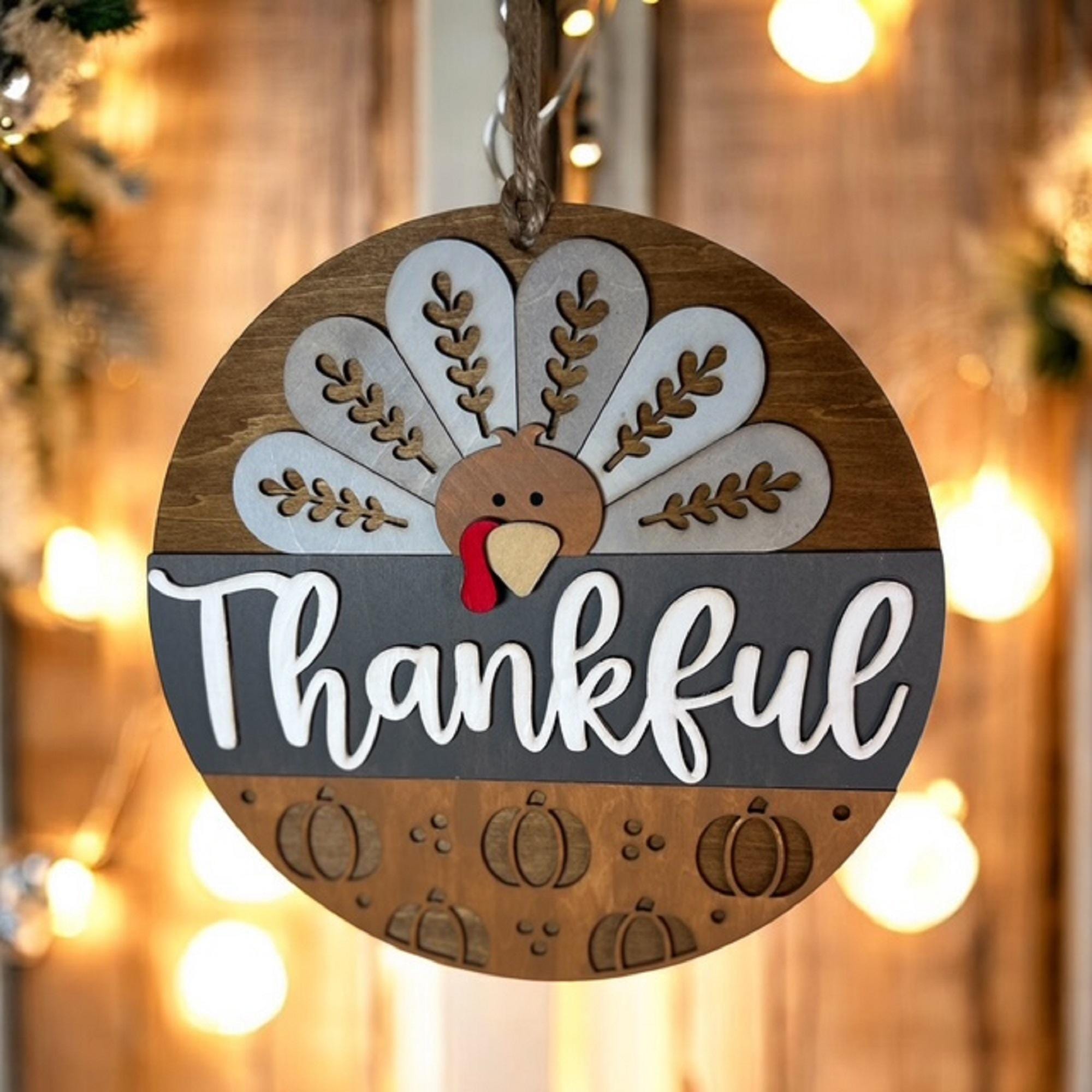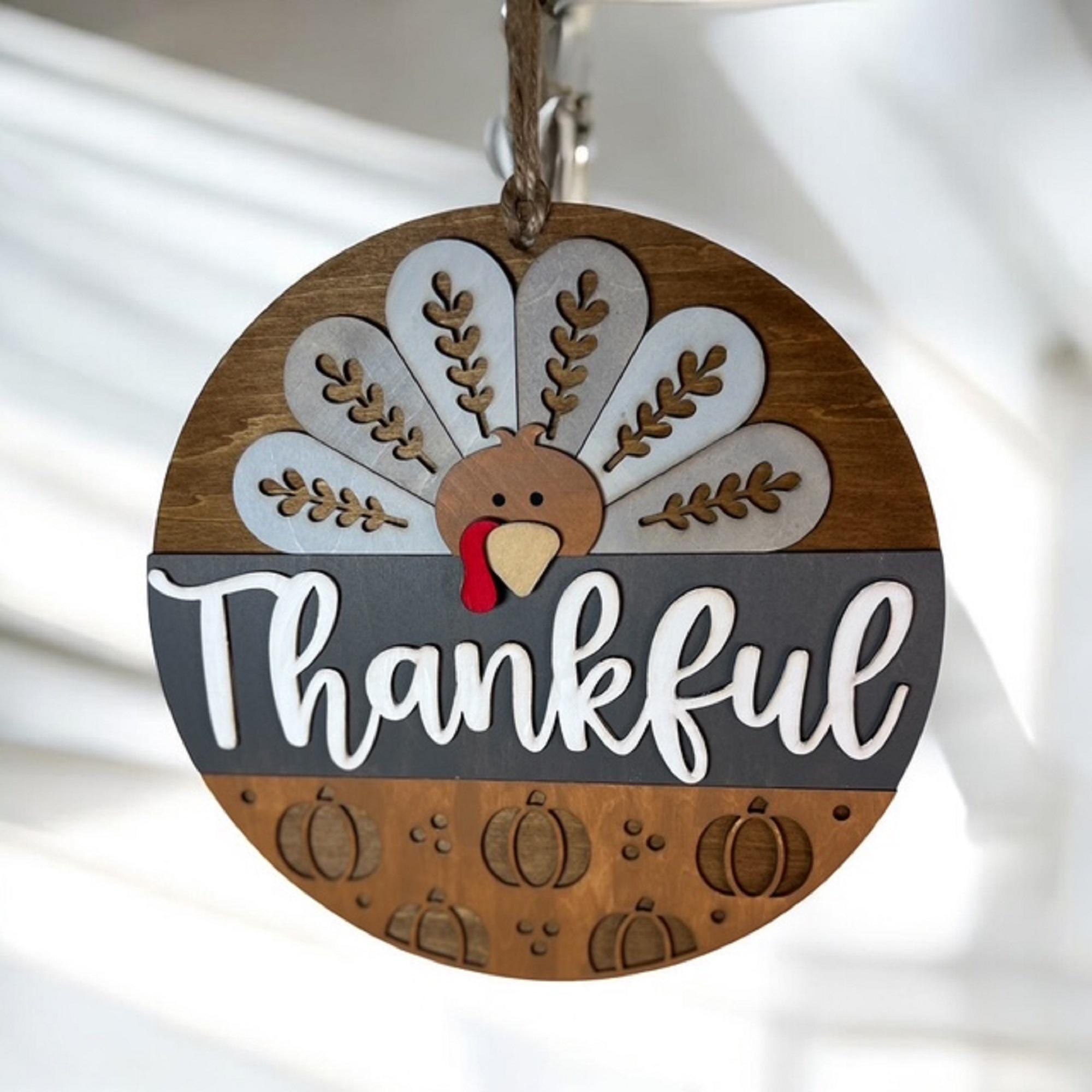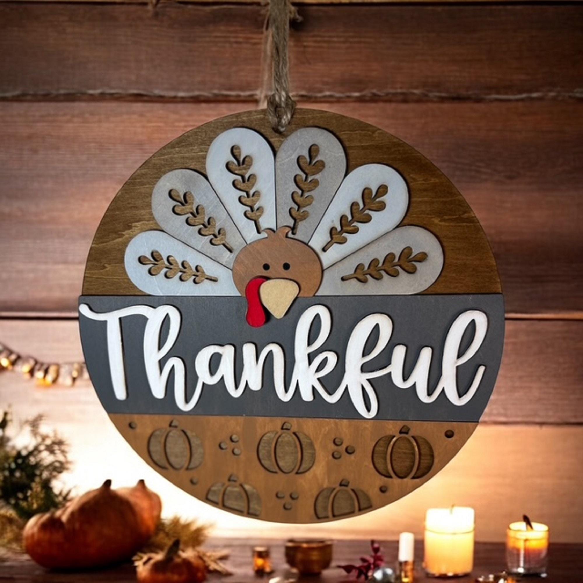Welcome guests with our Thankful Turkey door hanger, a charming autumn front door decoration designed to bring warmth and gratitude to your Thanksgiving decor. This unique fall welcome sign offers a heartfelt alternative to traditional seasonal wreaths, making your entryway inviting and festive.