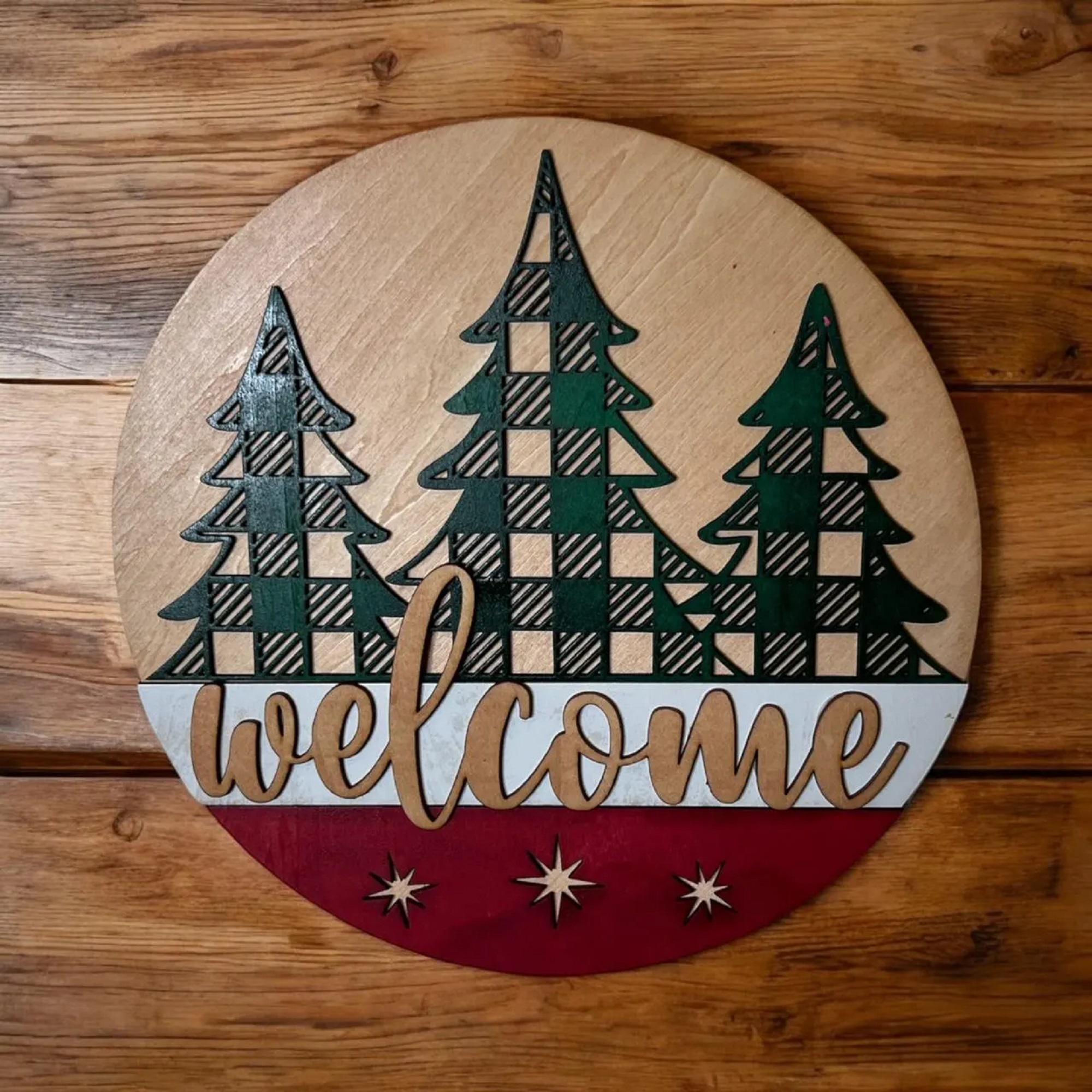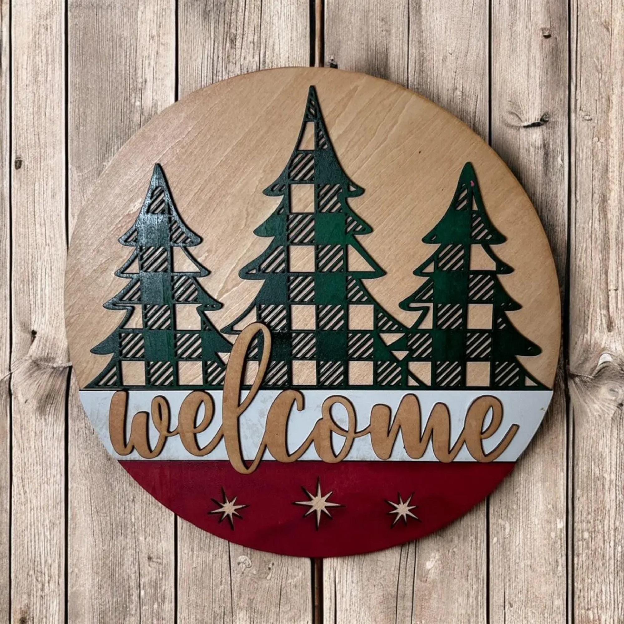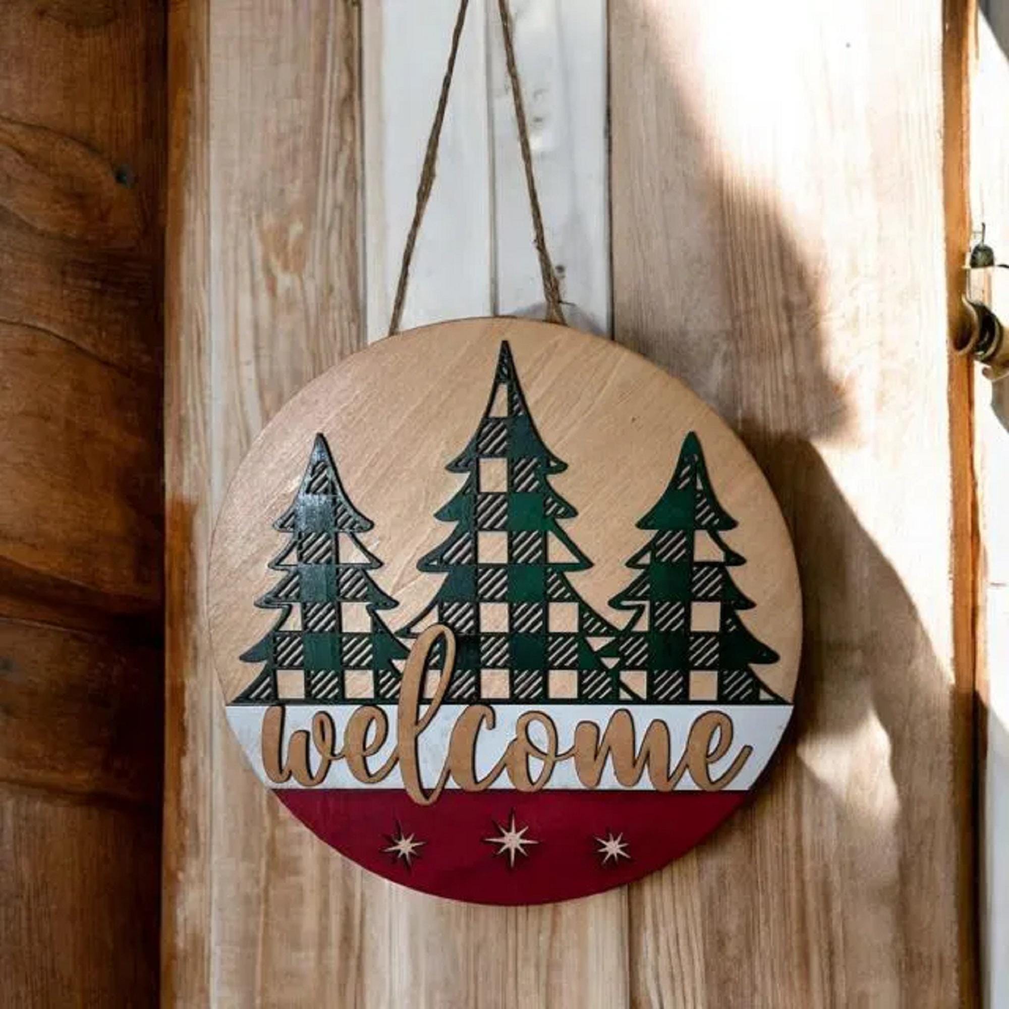 Rustic Forest Welcome Door Hanger: Laser Cut Wood Cabin Decor