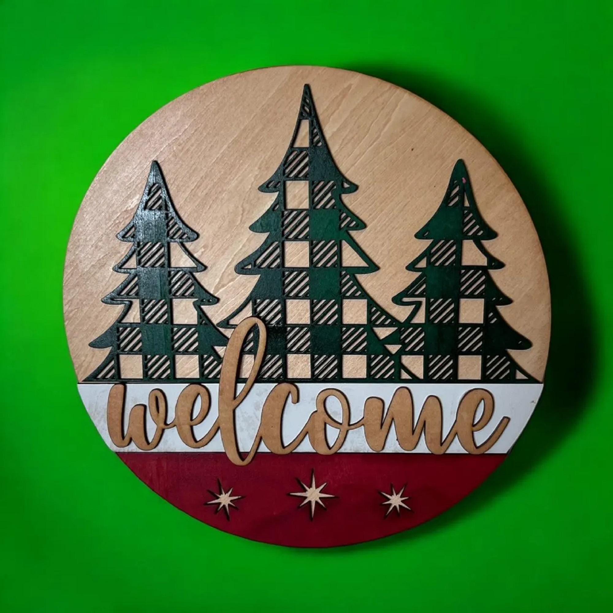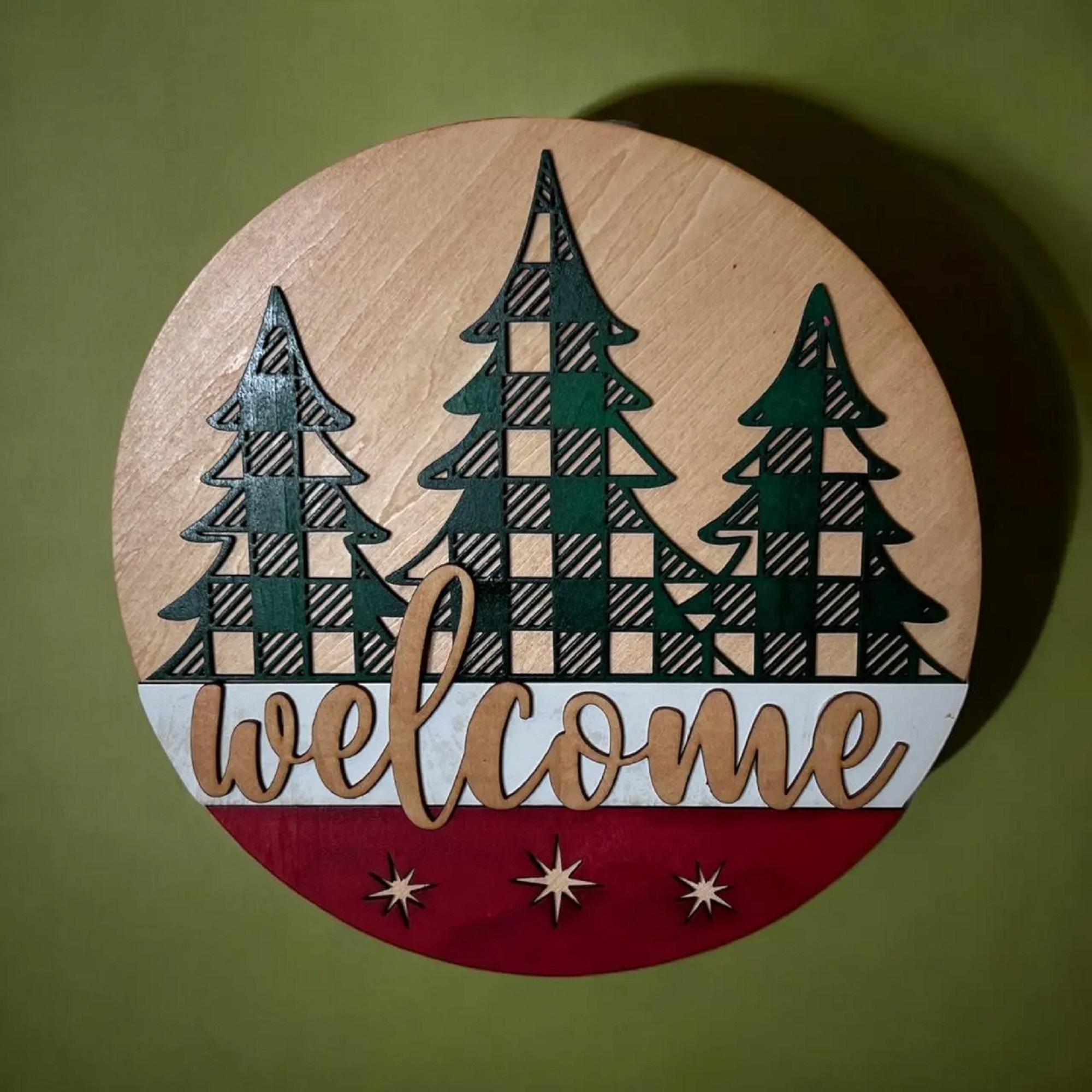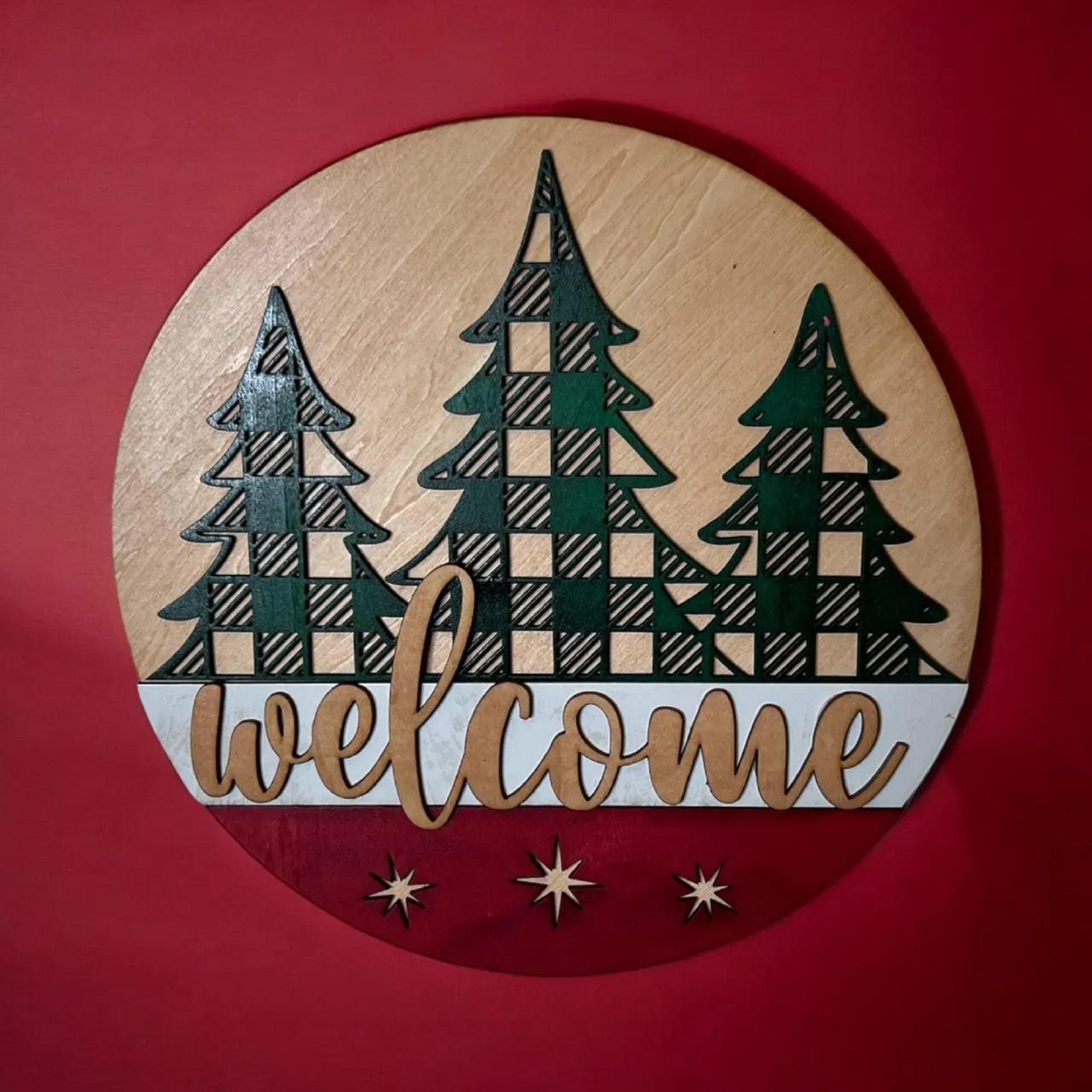 Rustic Forest Welcome Door Hanger: Laser Cut Wood Cabin Decor