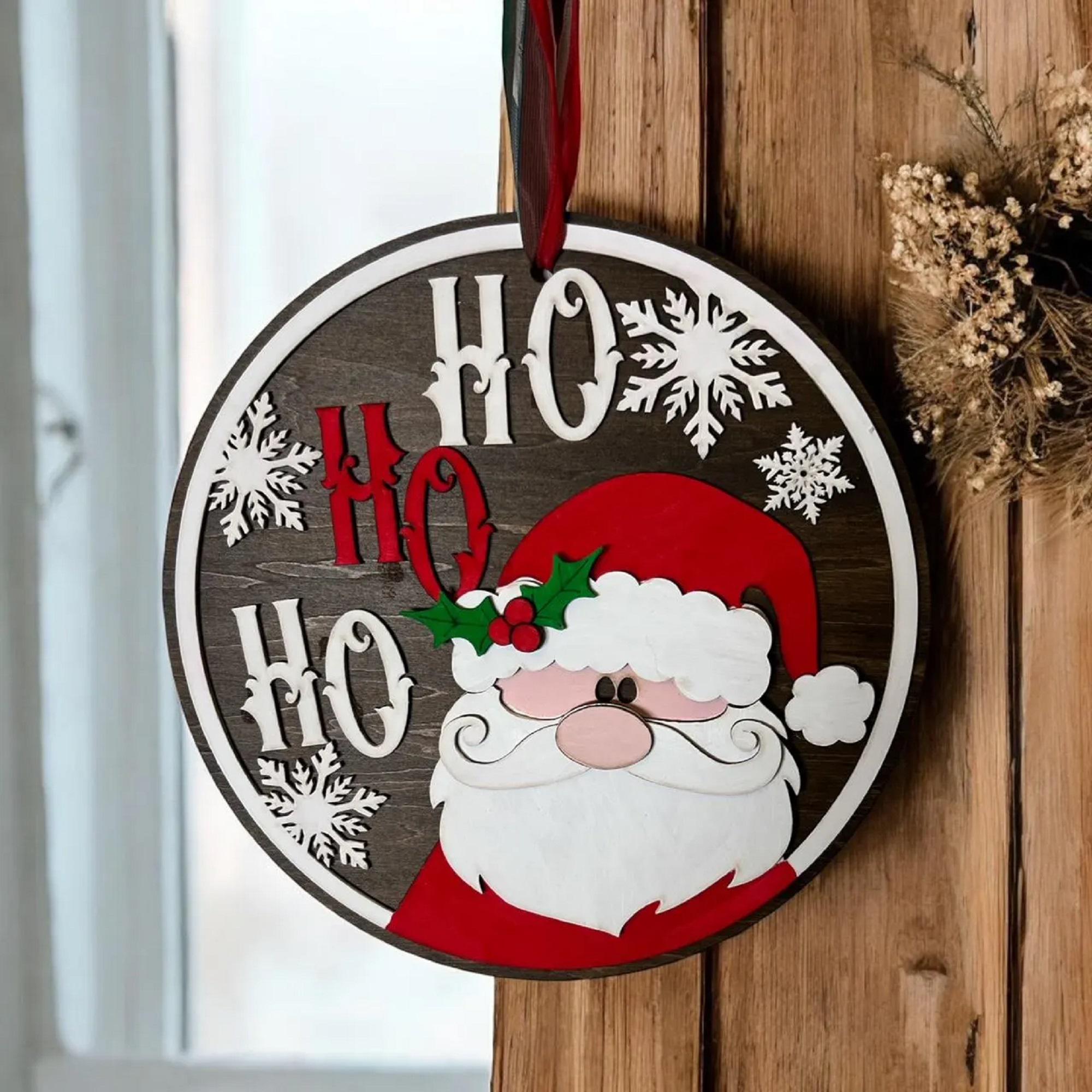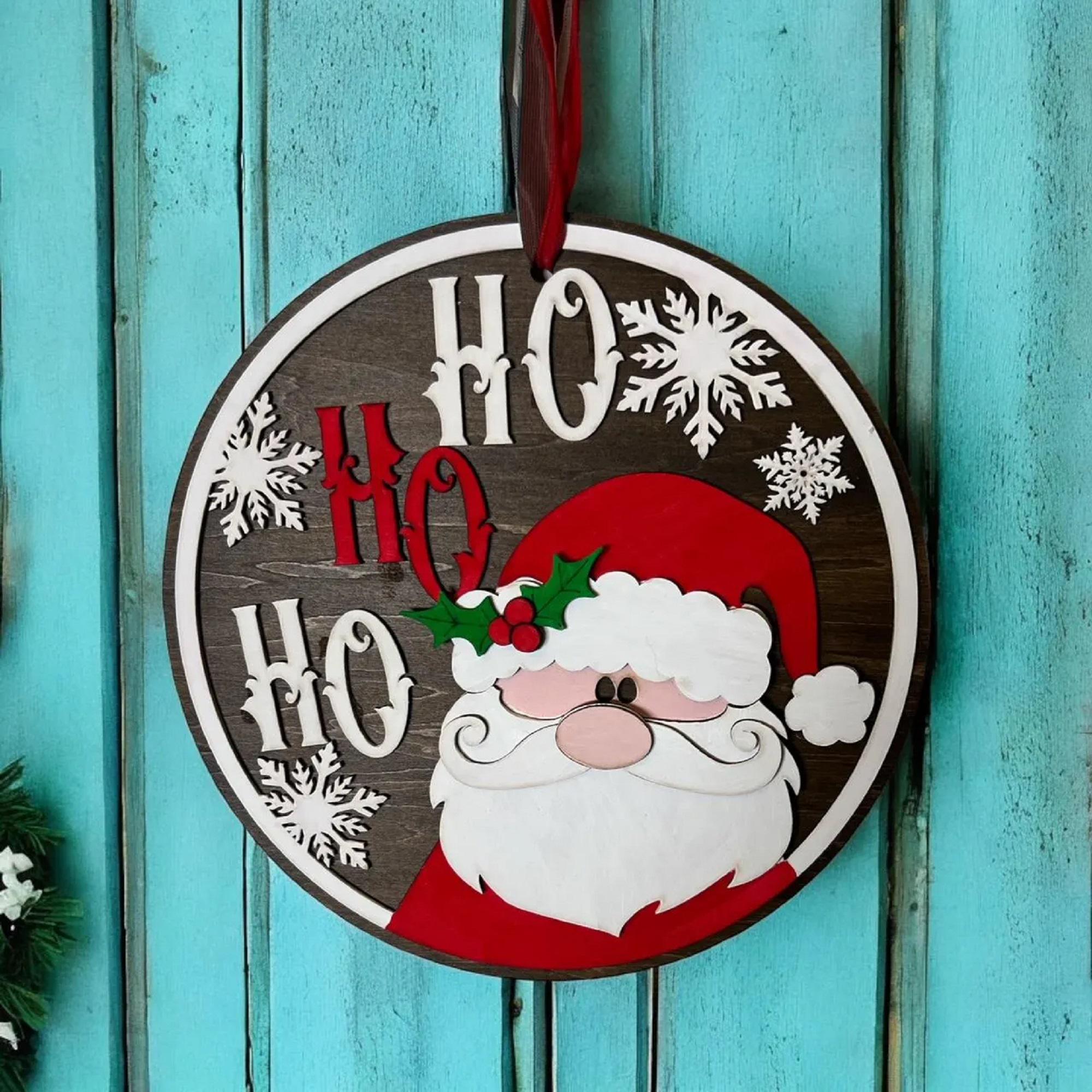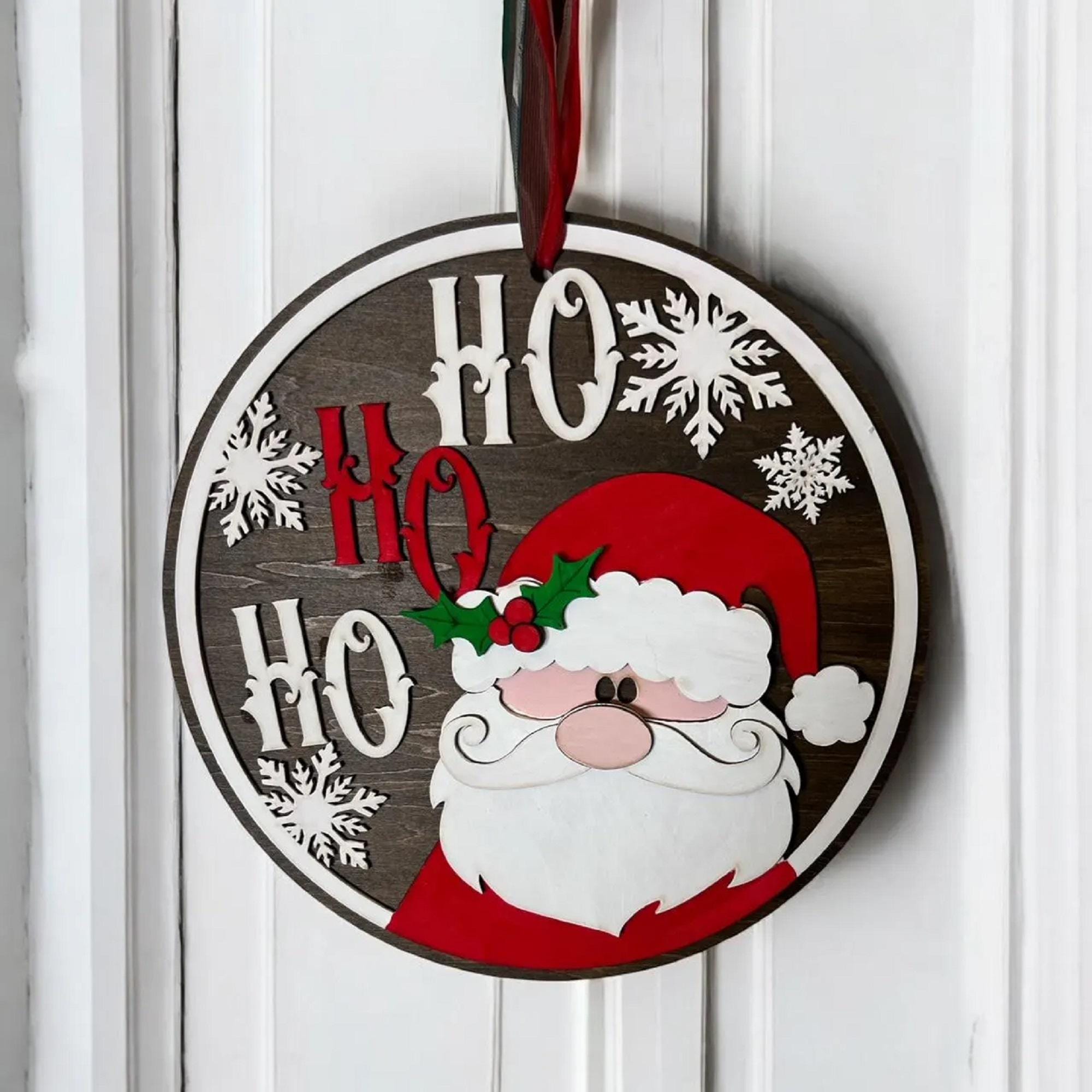 Ho Ho Ho Santa Door Hanger Christmas Decoration Wooden Holiday Sign Festive Front Entry Decor Winter Welcome Wreath Alternative Gift