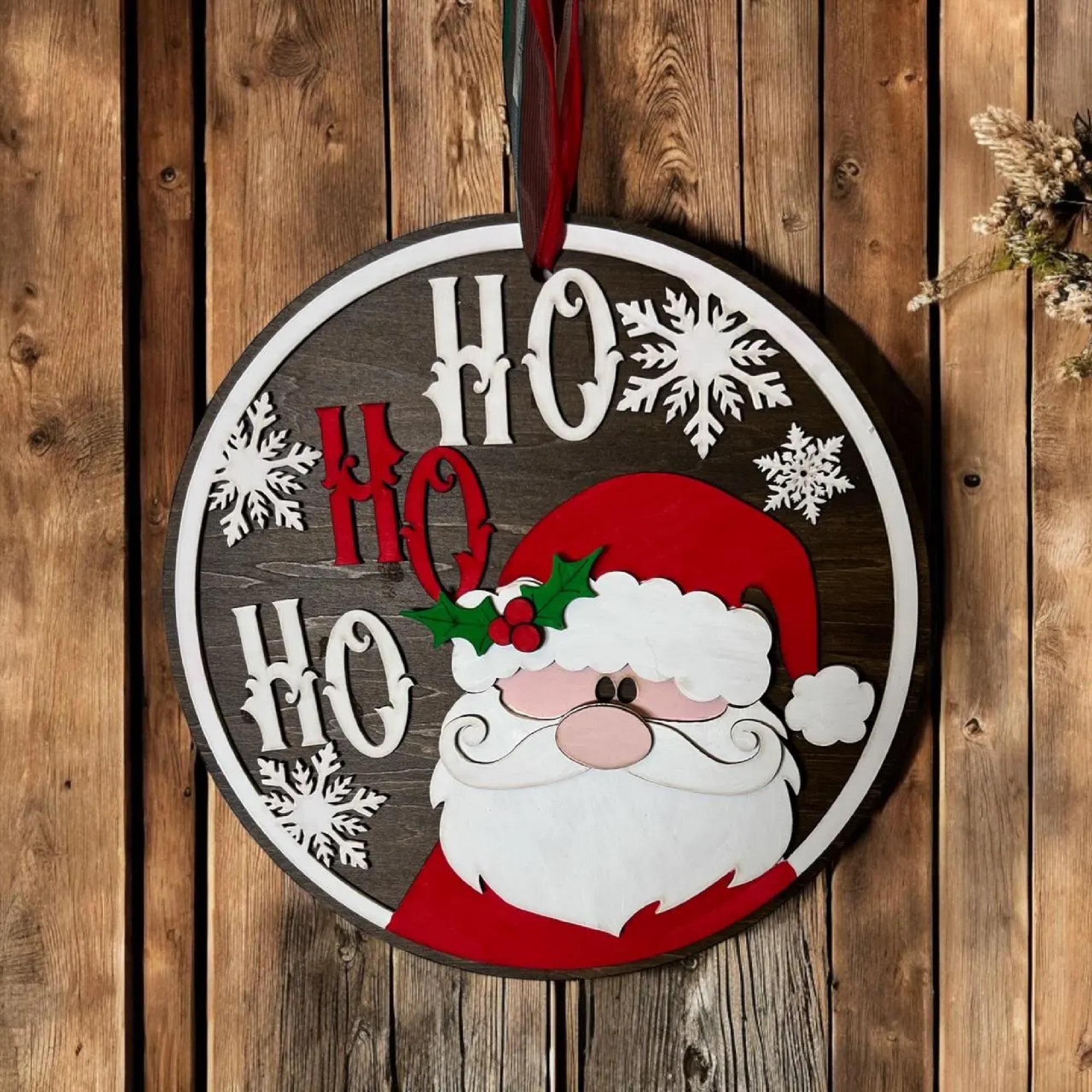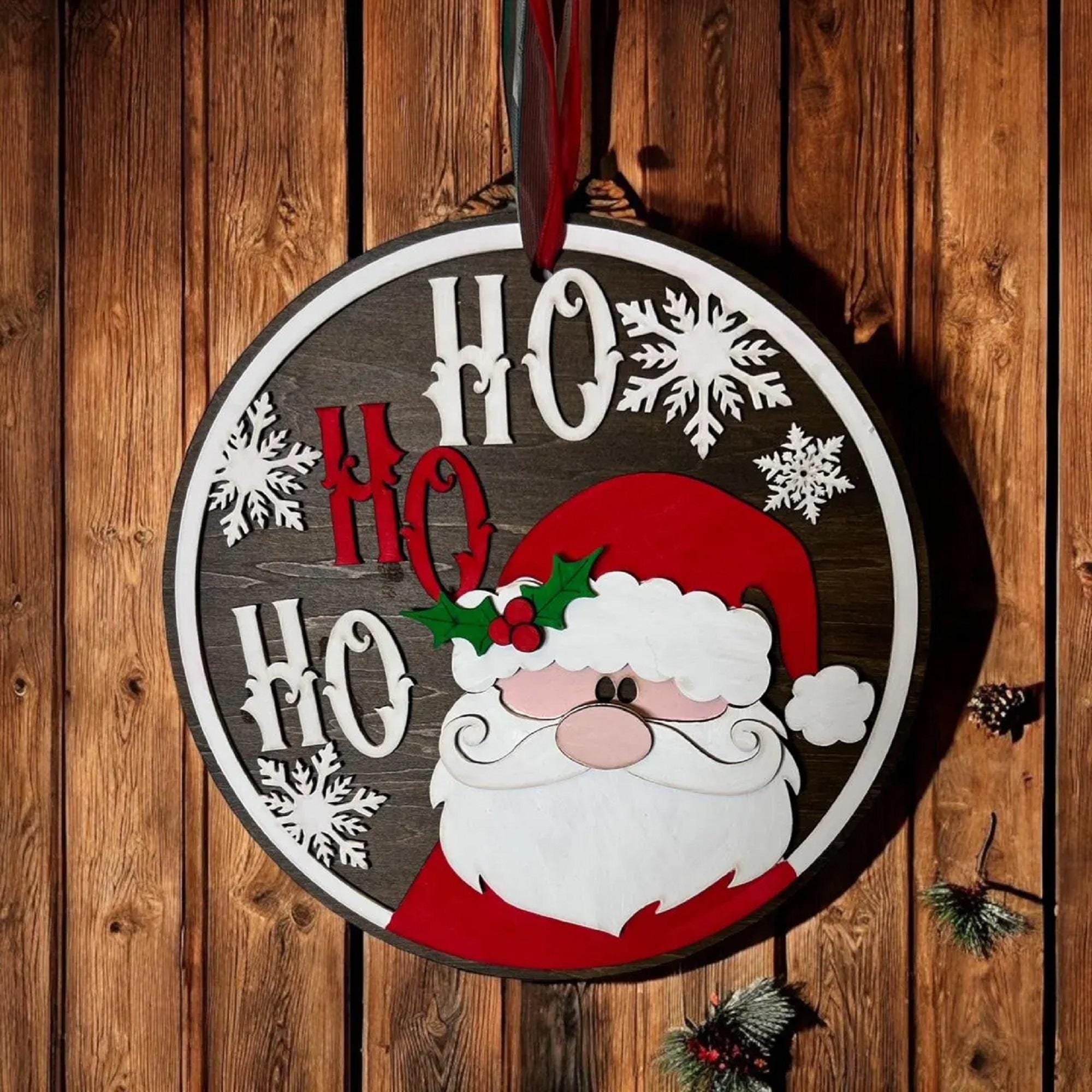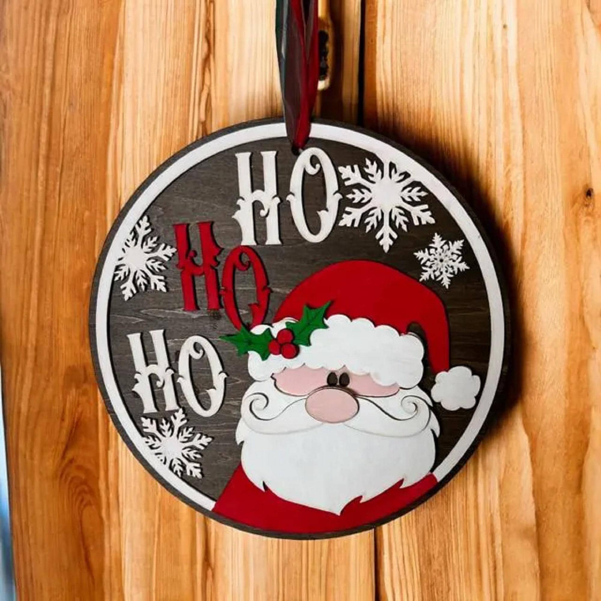 Ho Ho Ho Santa Door Hanger Christmas Decoration Wooden Holiday Sign Festive Front Entry Decor Winter Welcome Wreath Alternative Gift