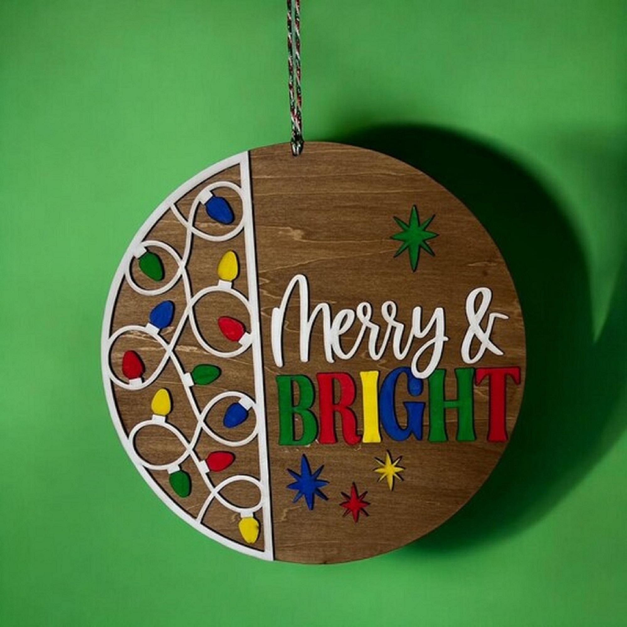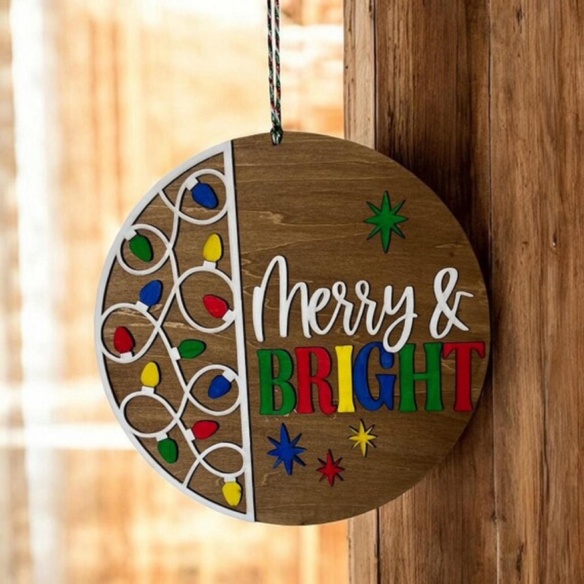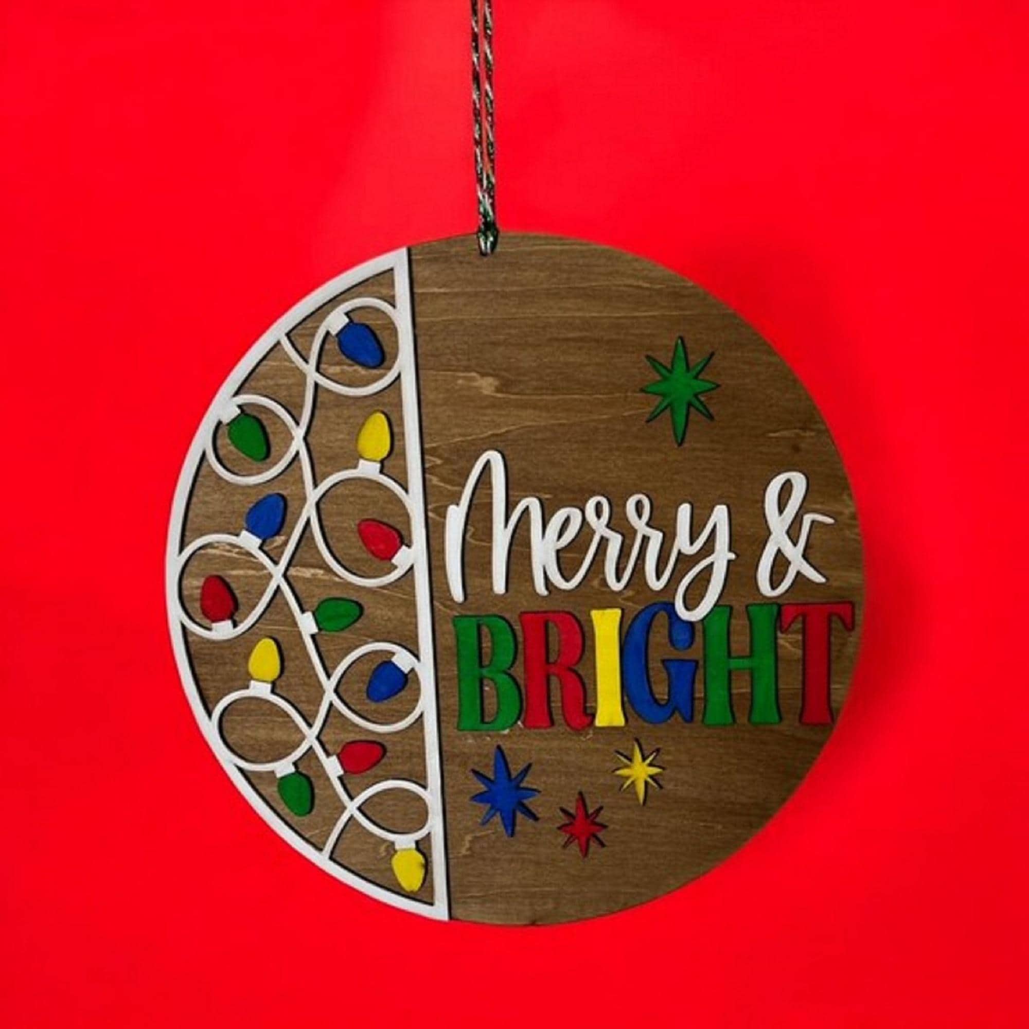 Merry and Bright Christmas Door Hanger: Hand-Painted Basswood