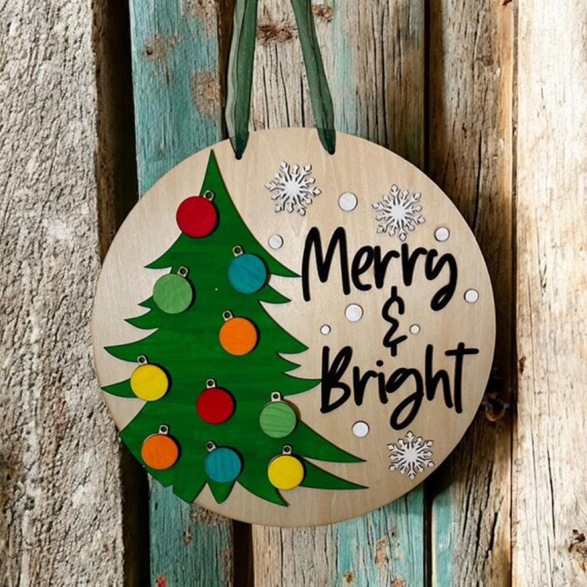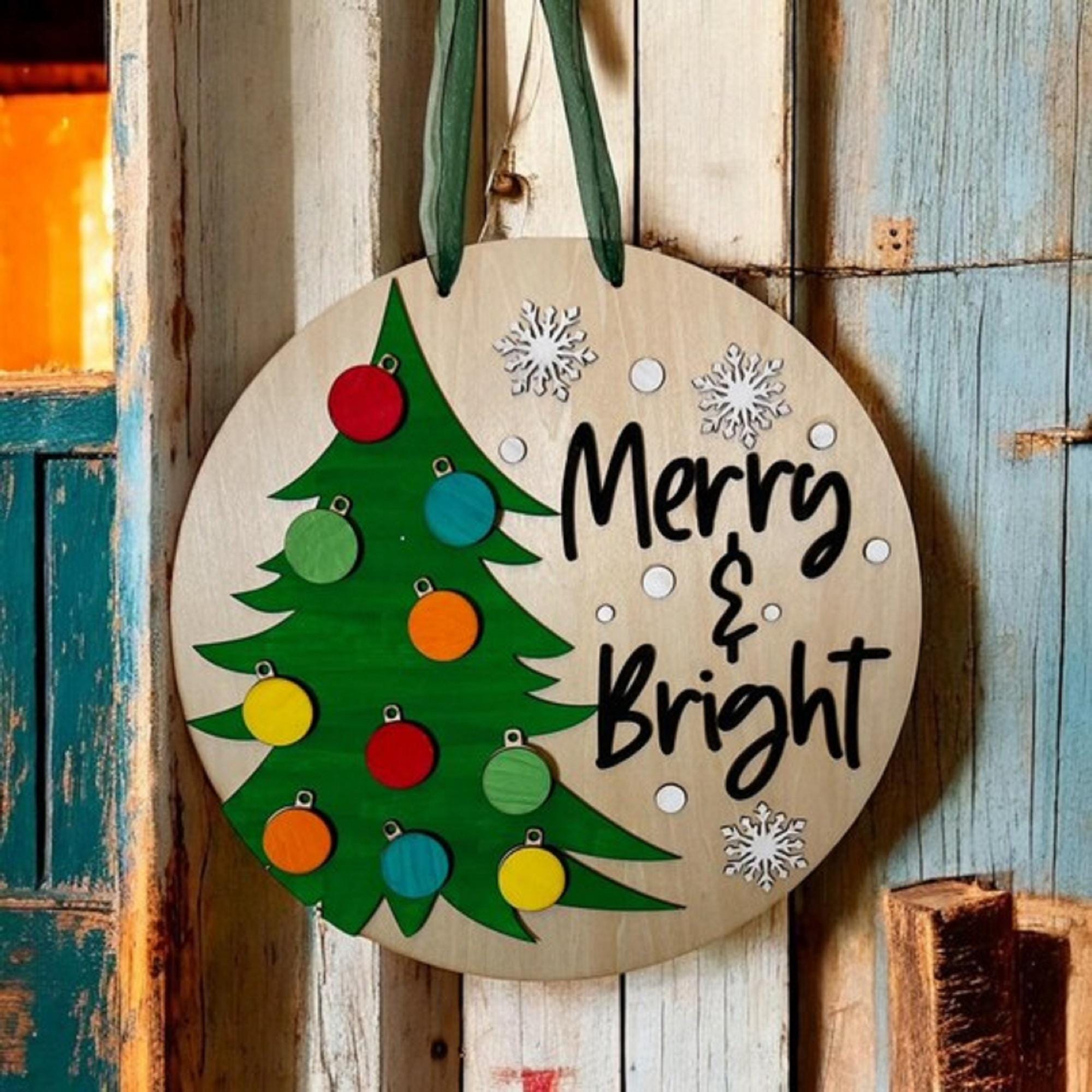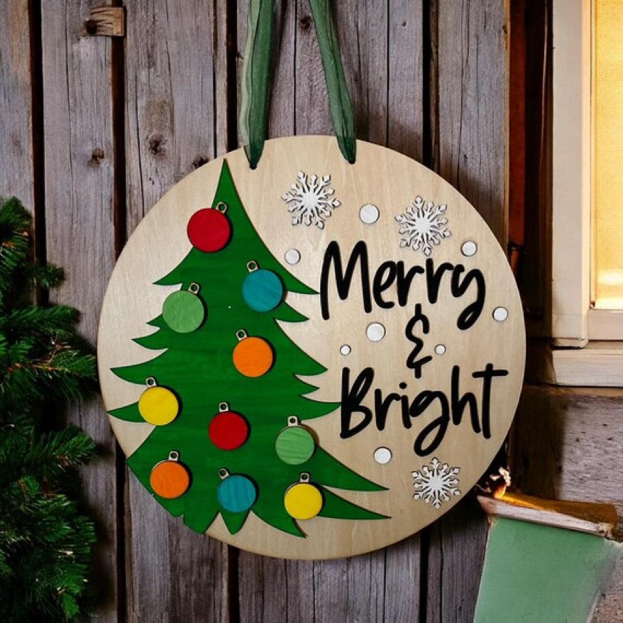 Welcome the festive season with this charming Door Hanger featuring a rustic "Merry and Bright" message framed by a classic Christmas tree silhouette. Crafted to brighten your front door or winter porch, this unique holiday decoration combines seasonal warmth with timeless style, setting it apart from standard holiday décor.