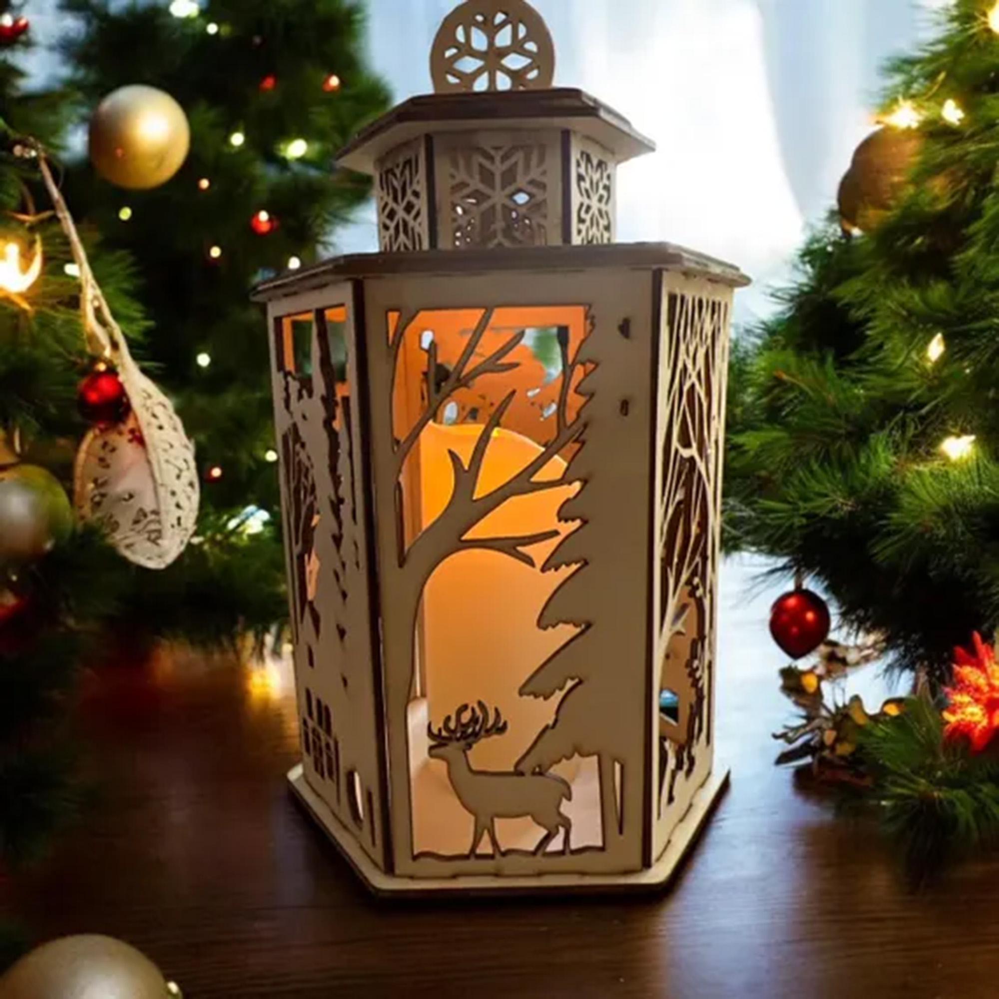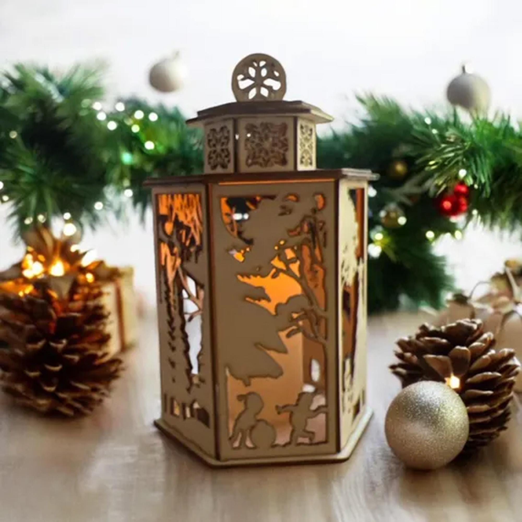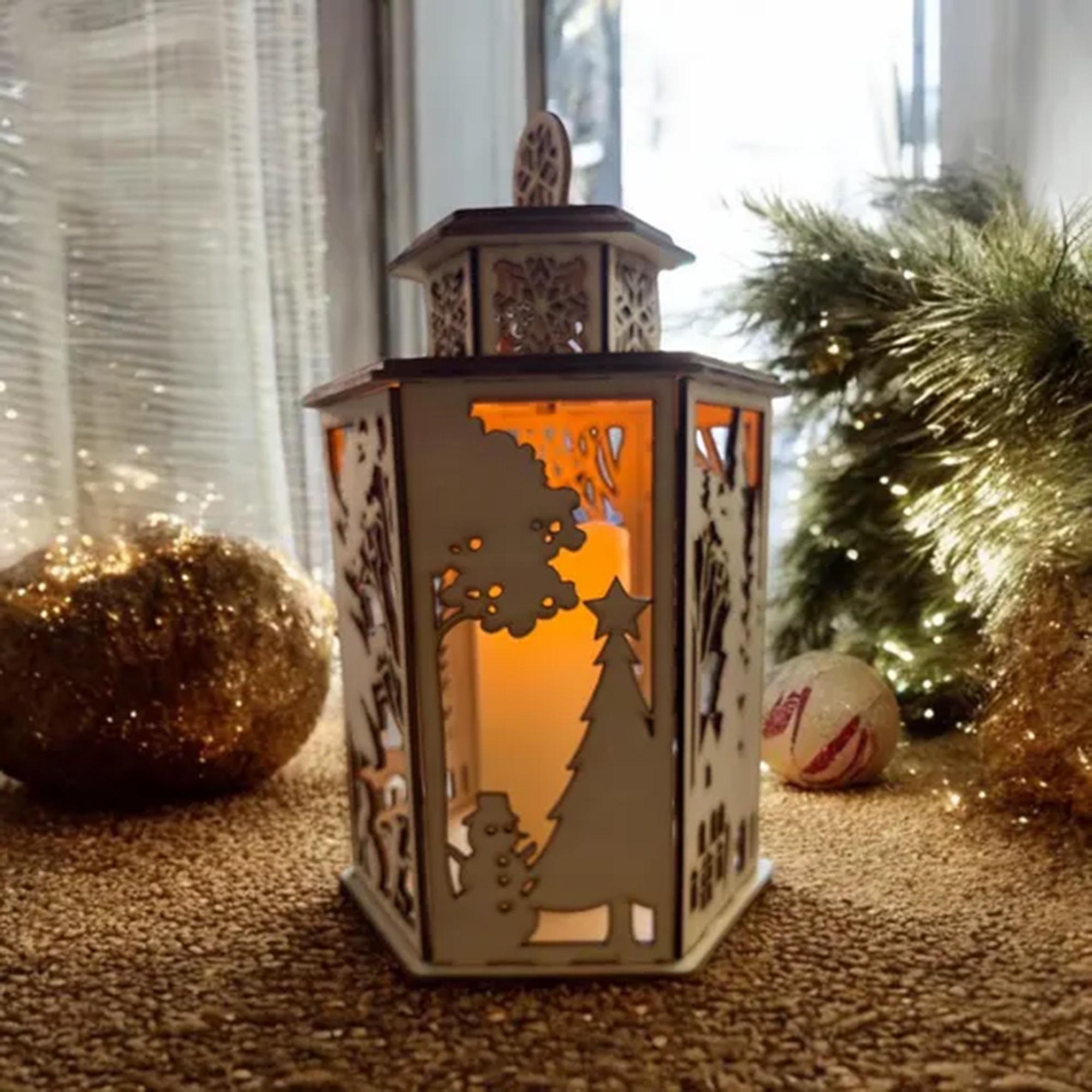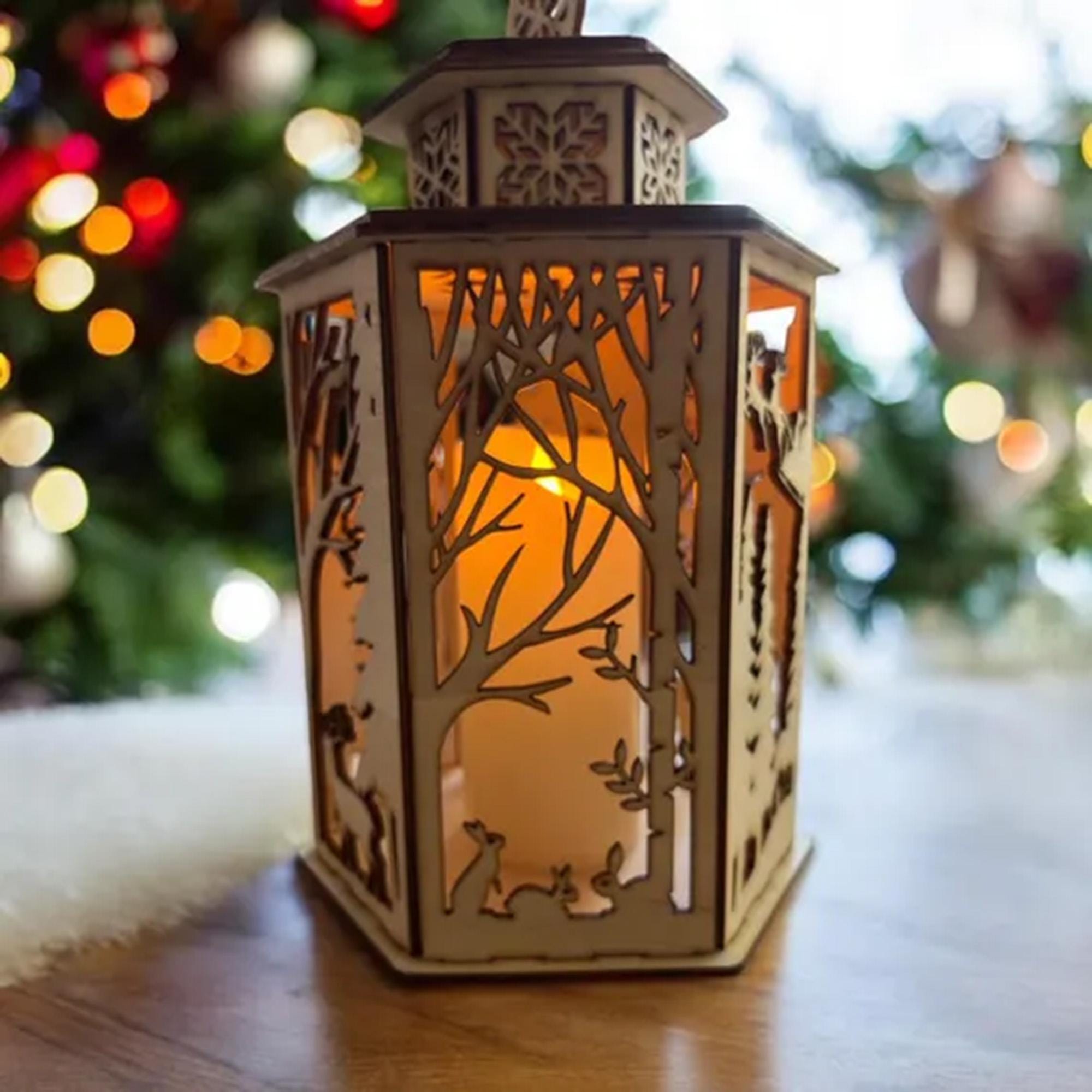 Bring warmth and charm to your space with this rustic wooden lantern, featuring an LED candle light that softly glows through its laser cut winter shapes as shown in the listing image. Unlike traditional lanterns, this winter-themed décor piece blends handcrafted quality with hassle-free, battery-operated illumination, perfect for creating a cozy atmosphere year-round.
