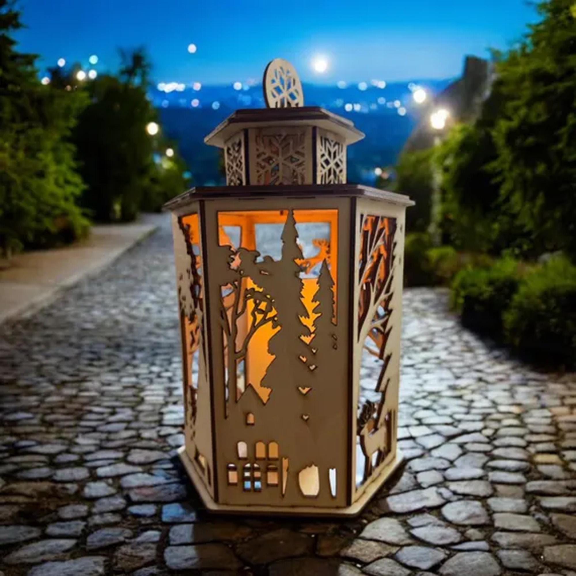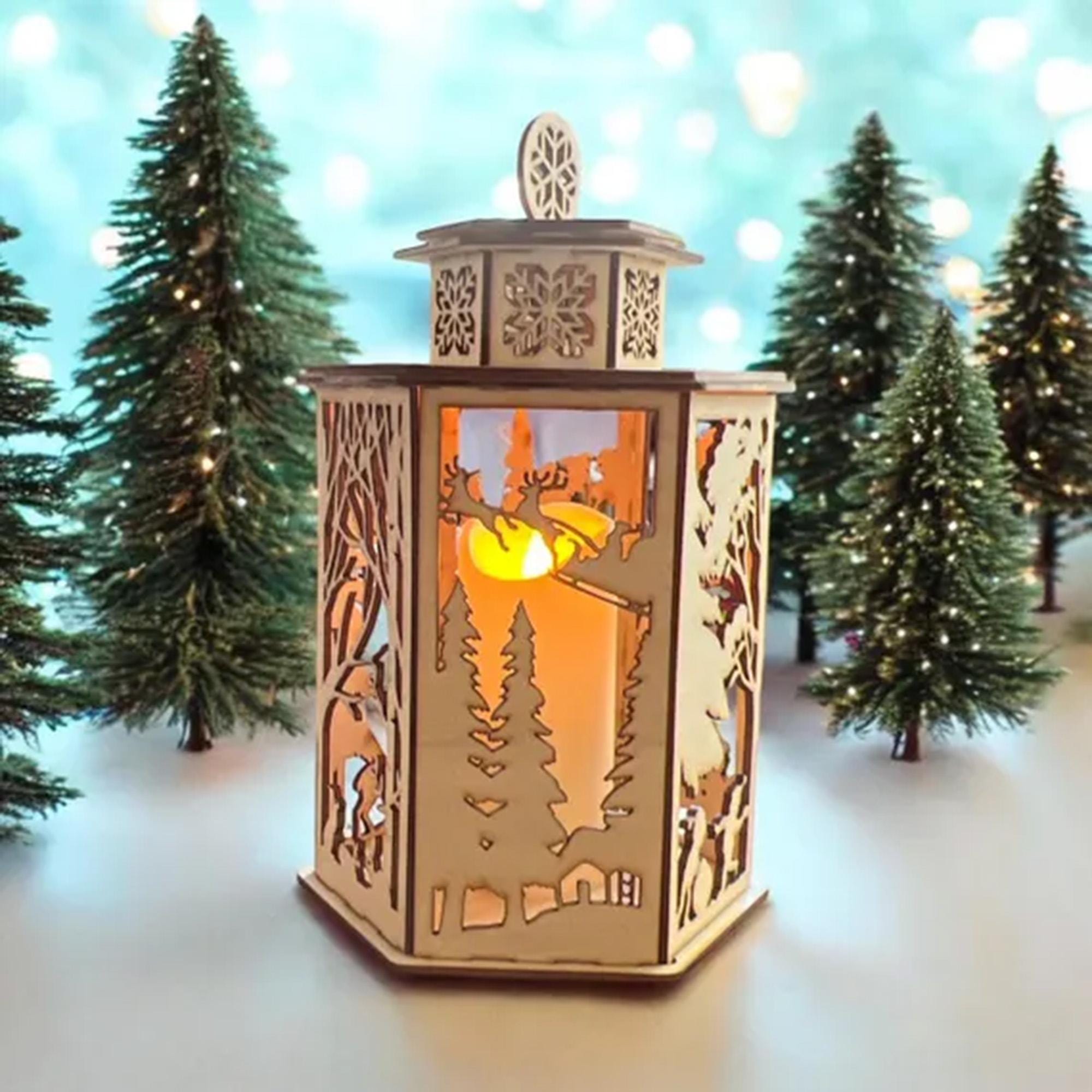 Laser Cut Wood Winter Lantern with Flameless Candle