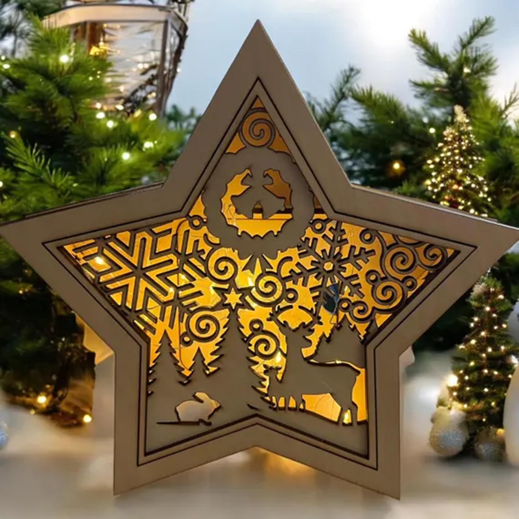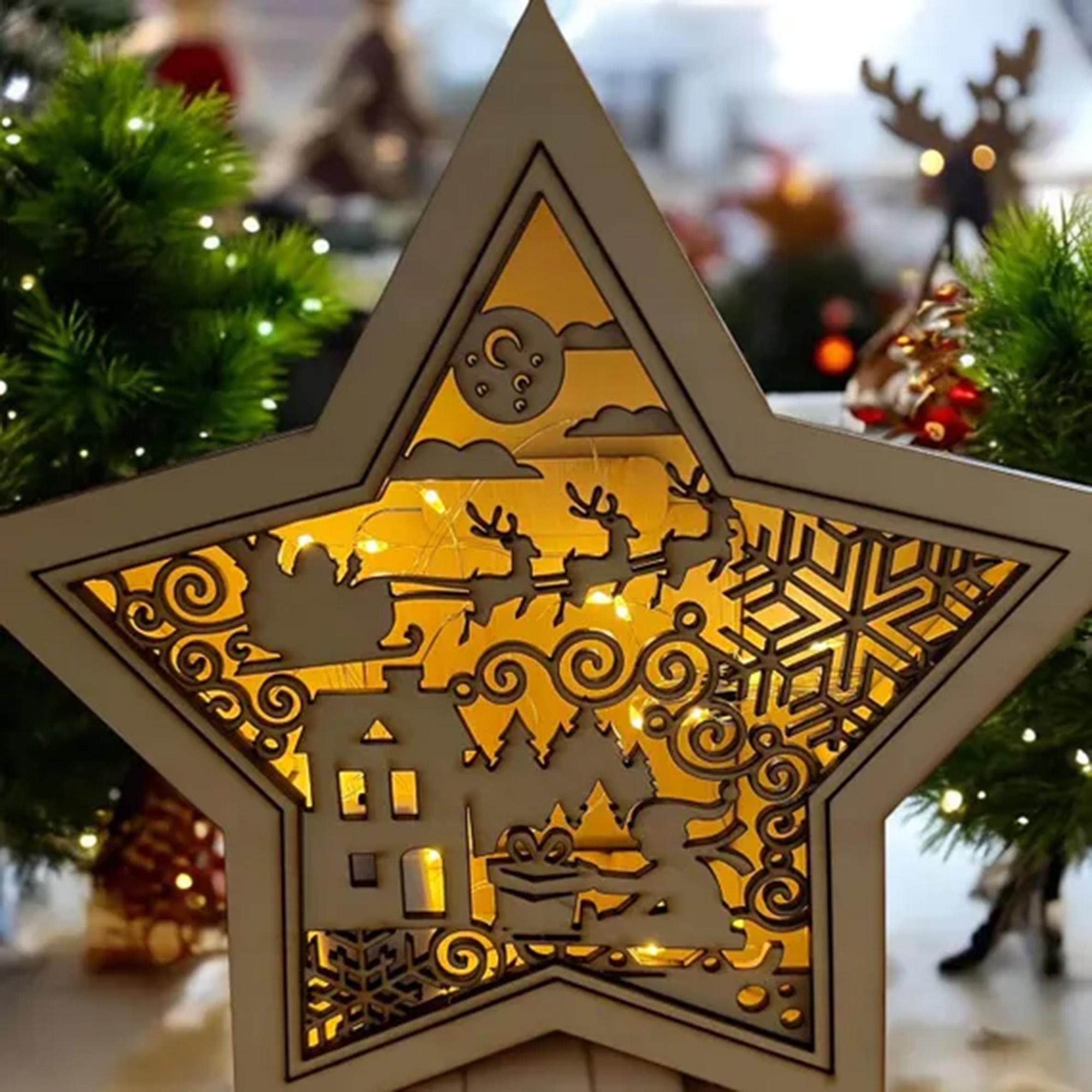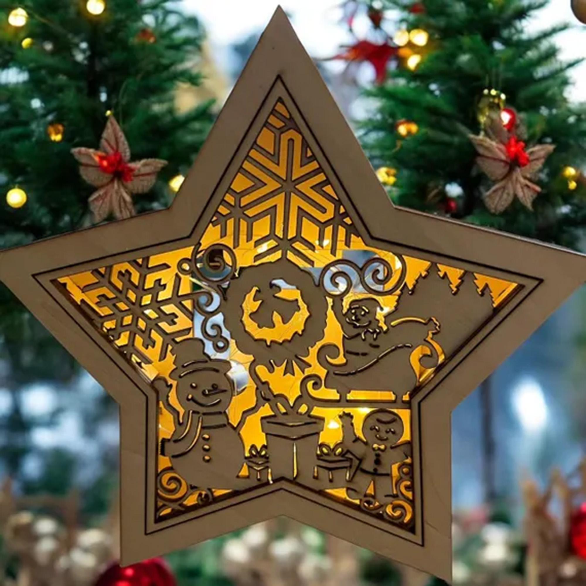 Christmas Star Fairy Lights: Laser Cut Basswood Holiday Decor