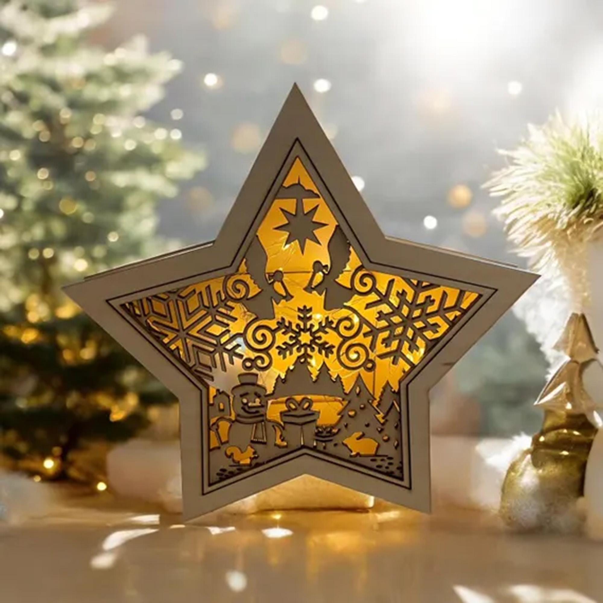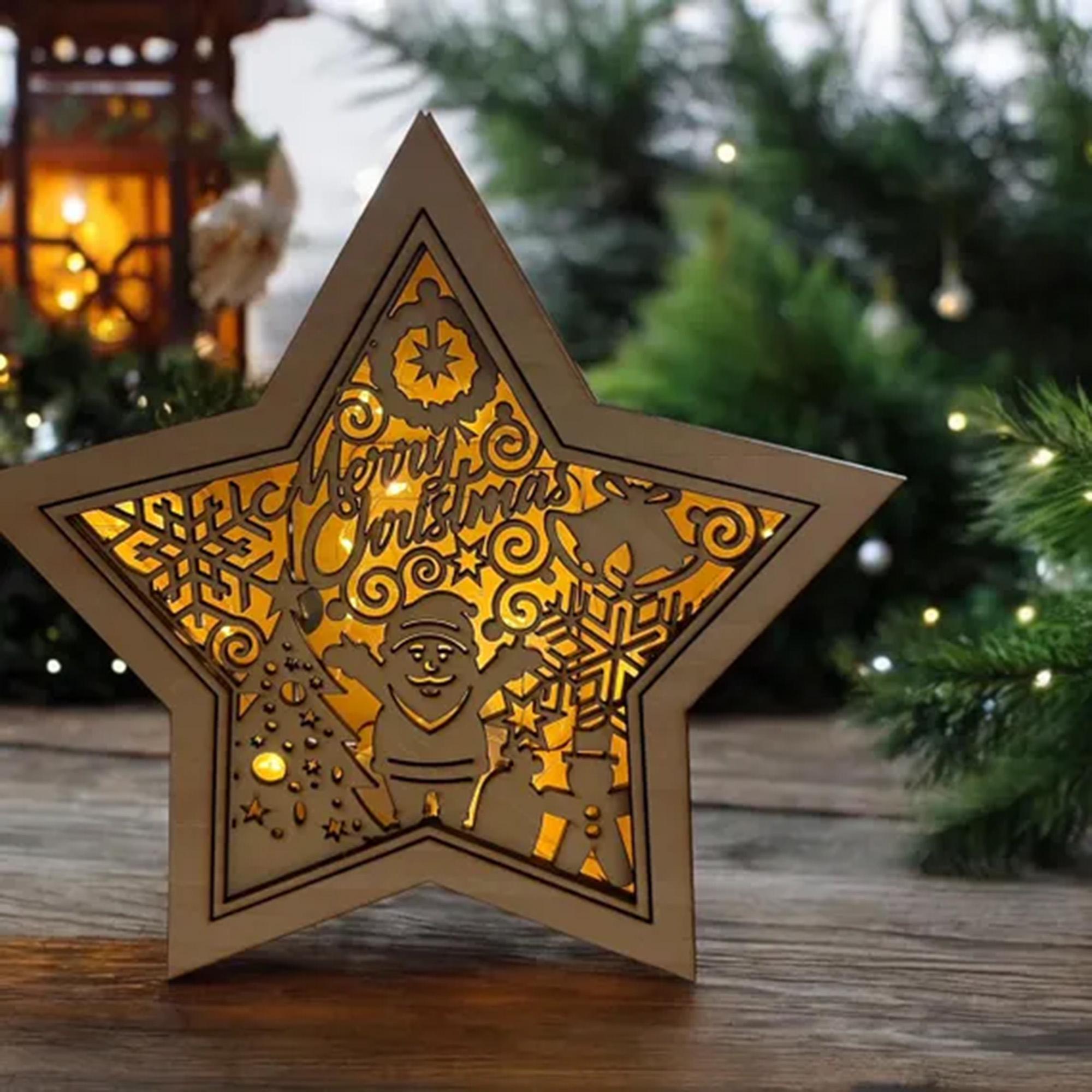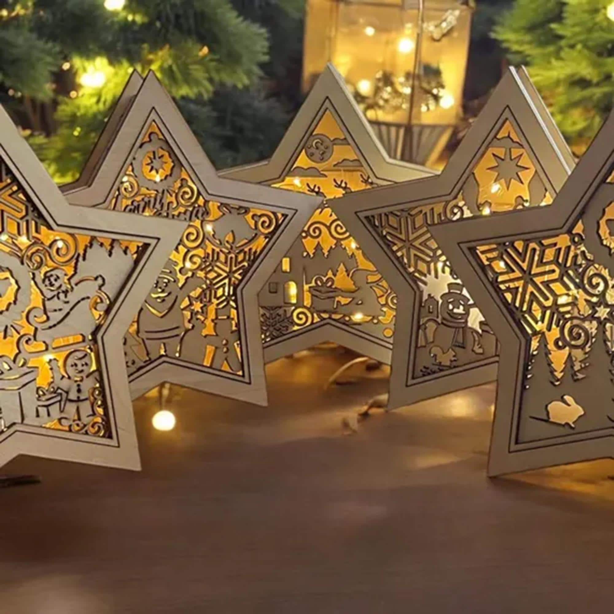Christmas Star Fairy Lights: Laser Cut Basswood Holiday Decor