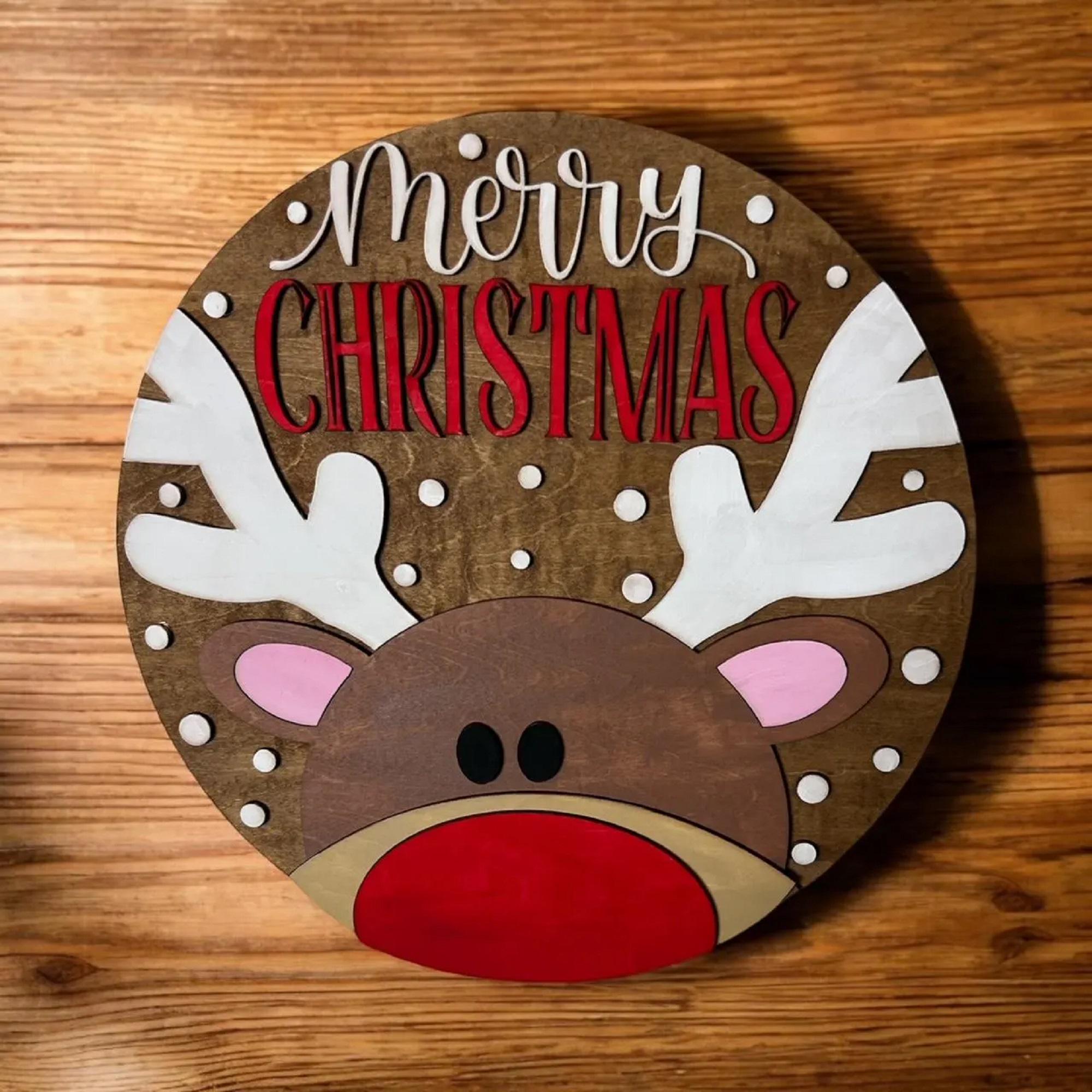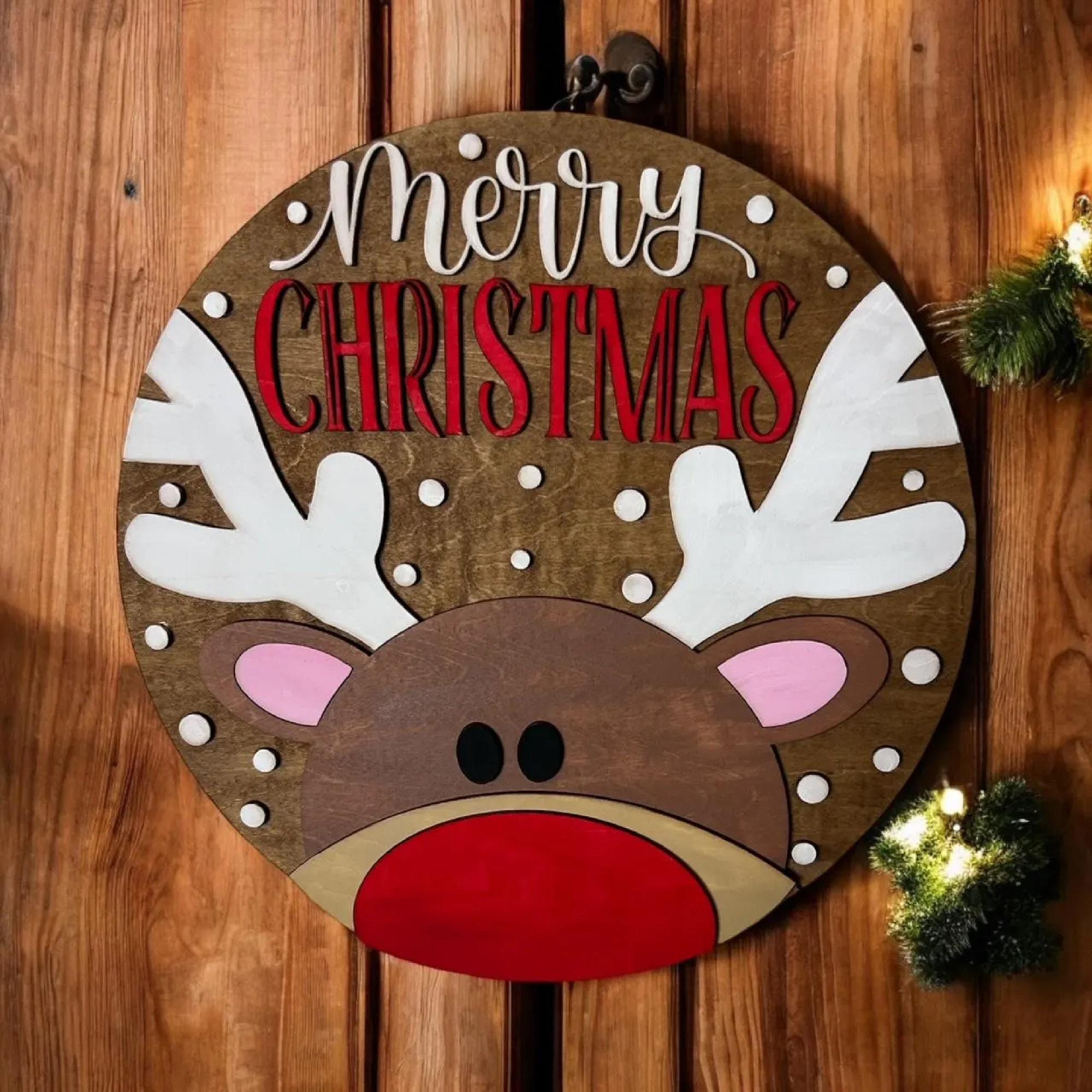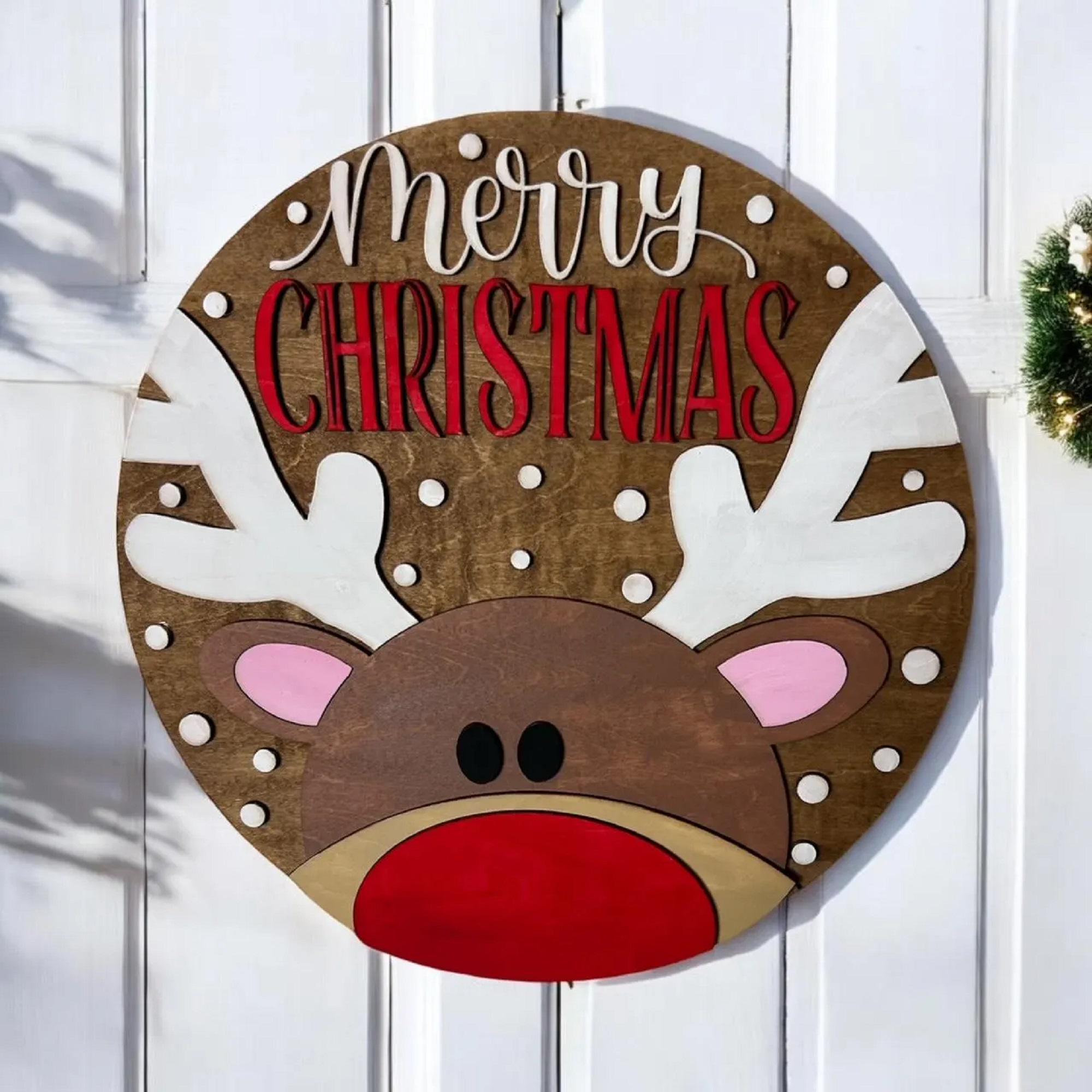 Rudolph Christmas Door Hanger: Laser Cut Wood, Hand Painted