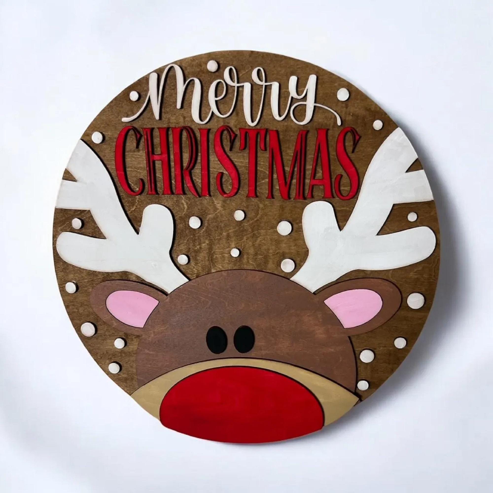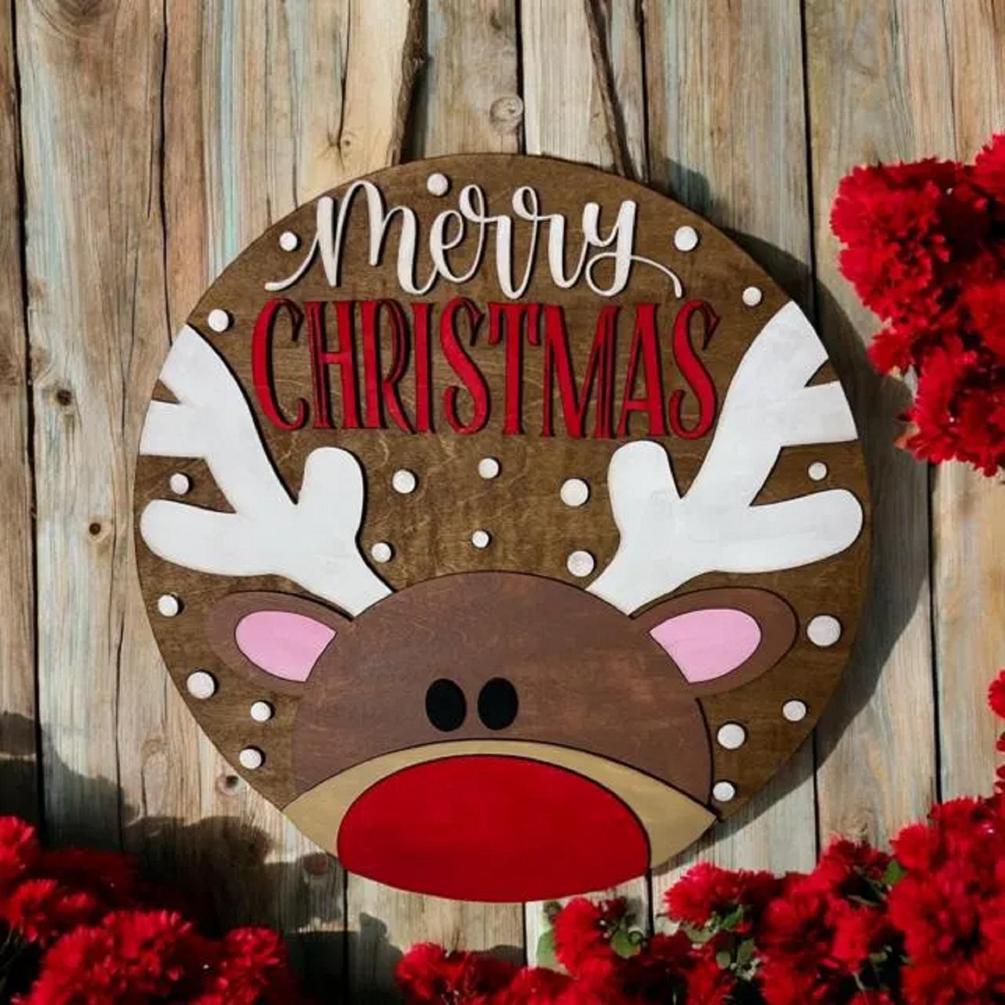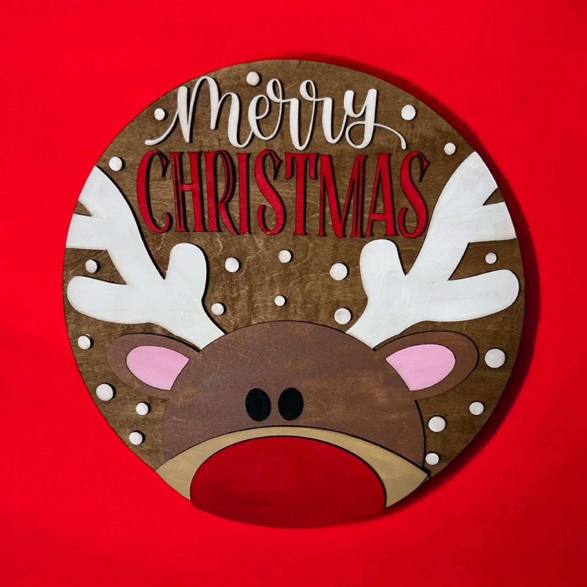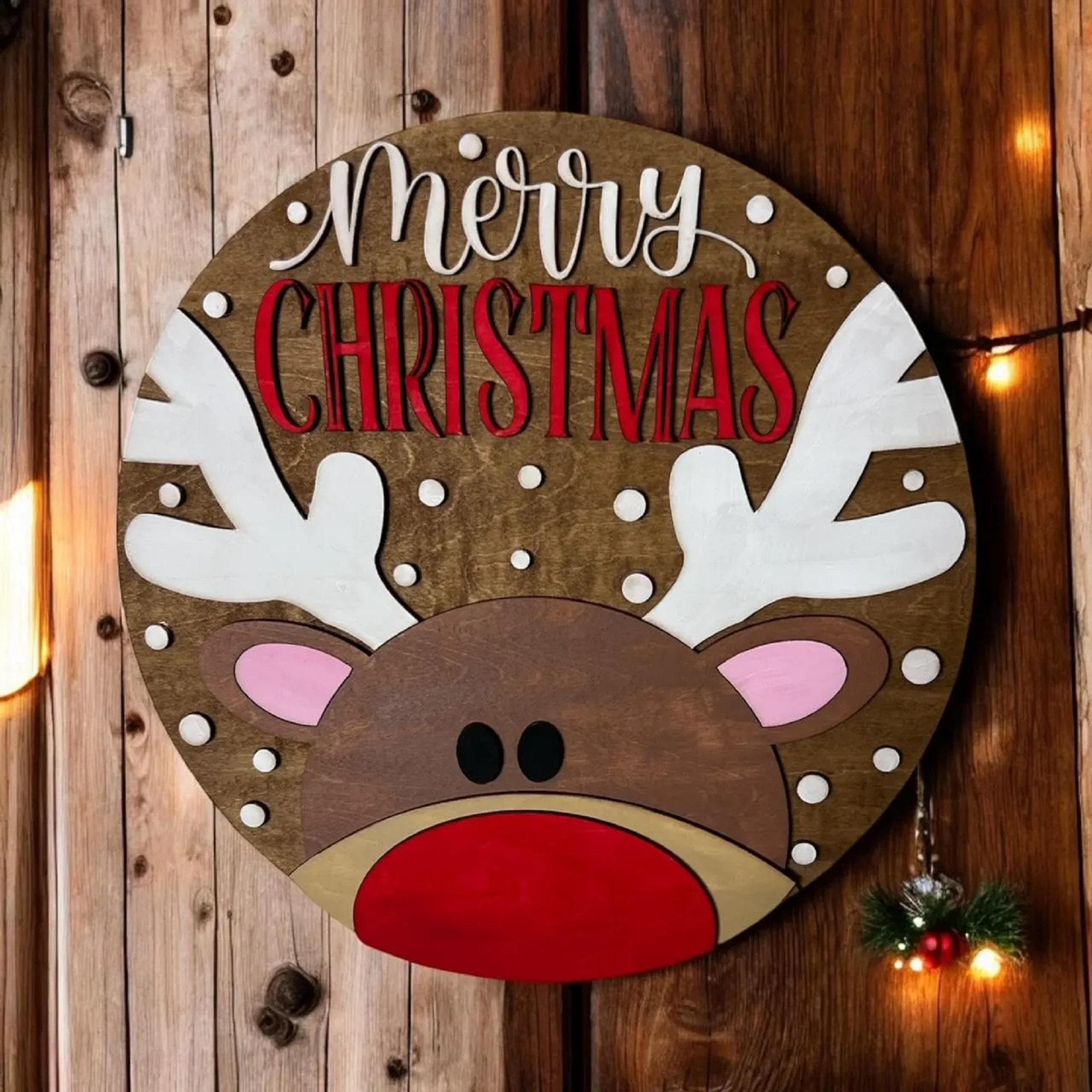 Rudolph Christmas Door Hanger: Laser Cut Wood, Hand Painted