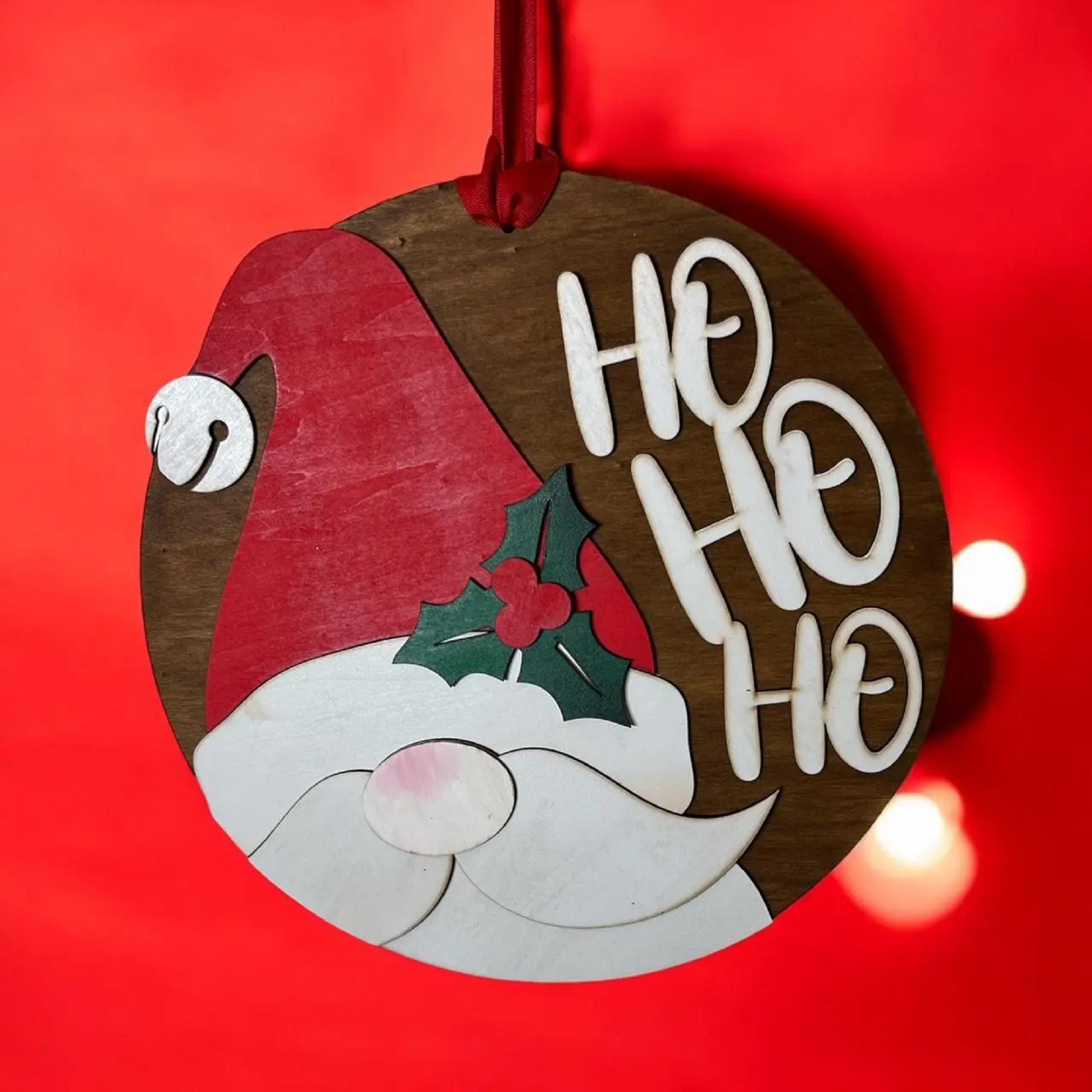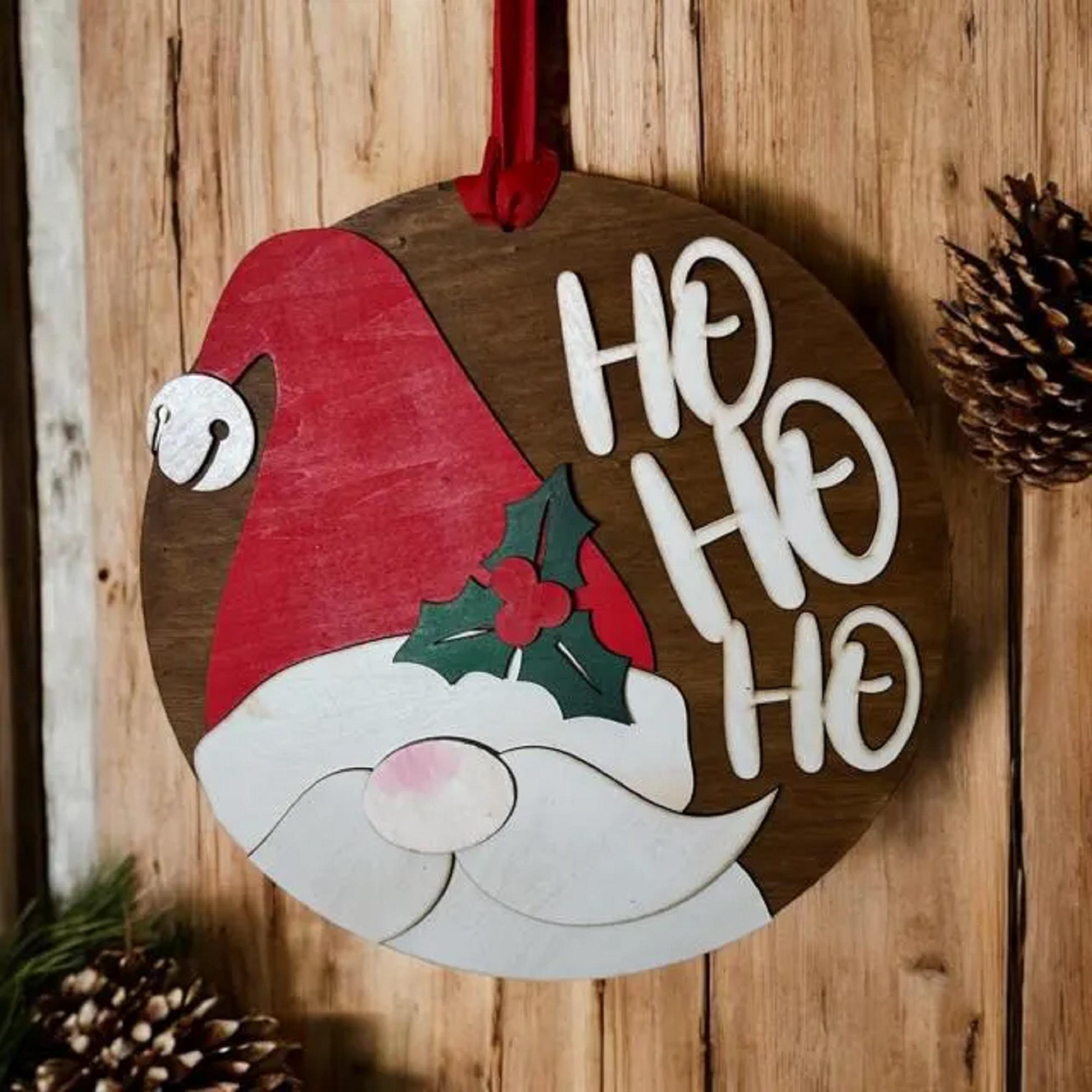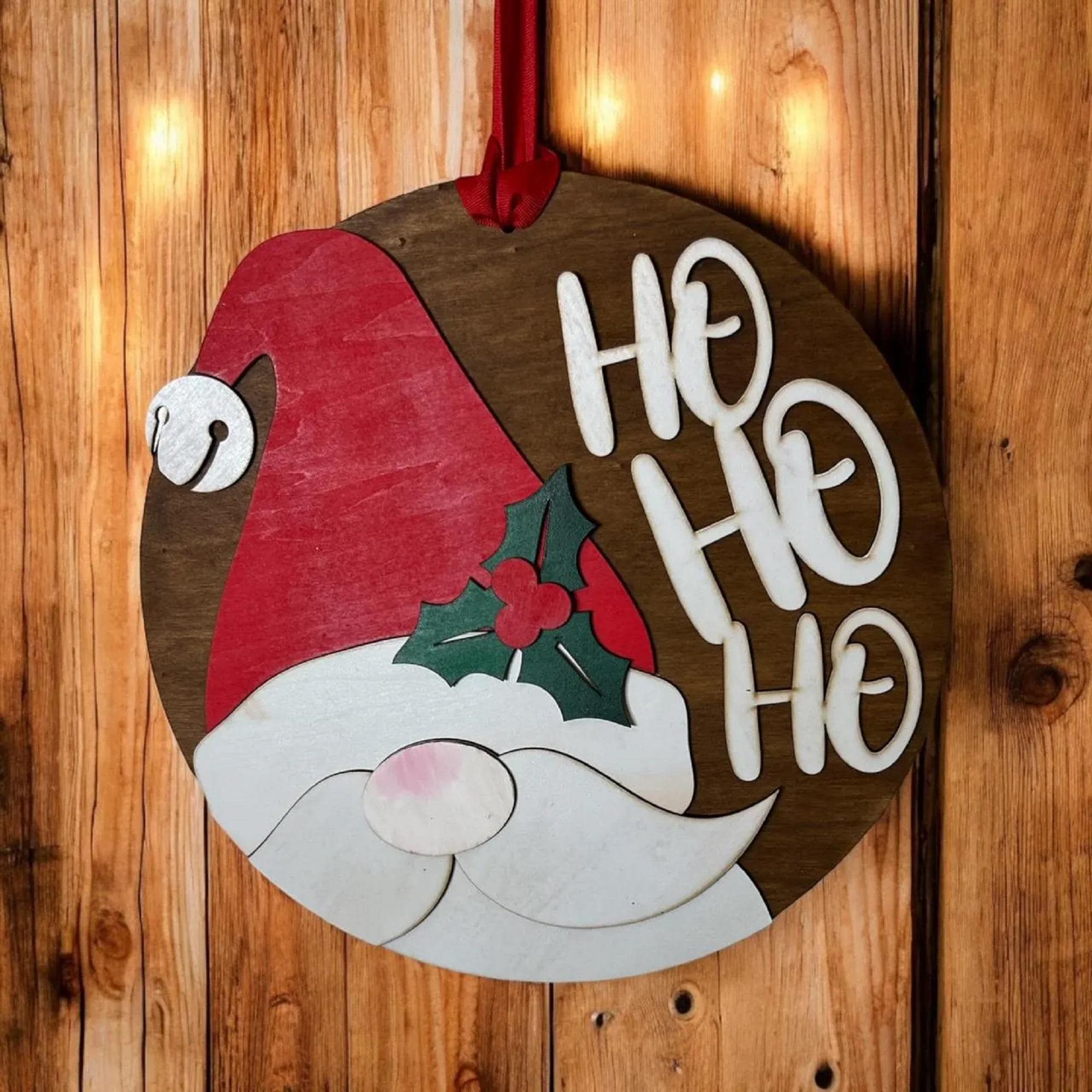 Made from 3mm basswood, this sturdy door hanger features vibrant colors and detailed craftsmanship that captures Santa's joyful spirit. Measuring 14 inches in height, it fits most standard door sizes and is lightweight for easy hanging.