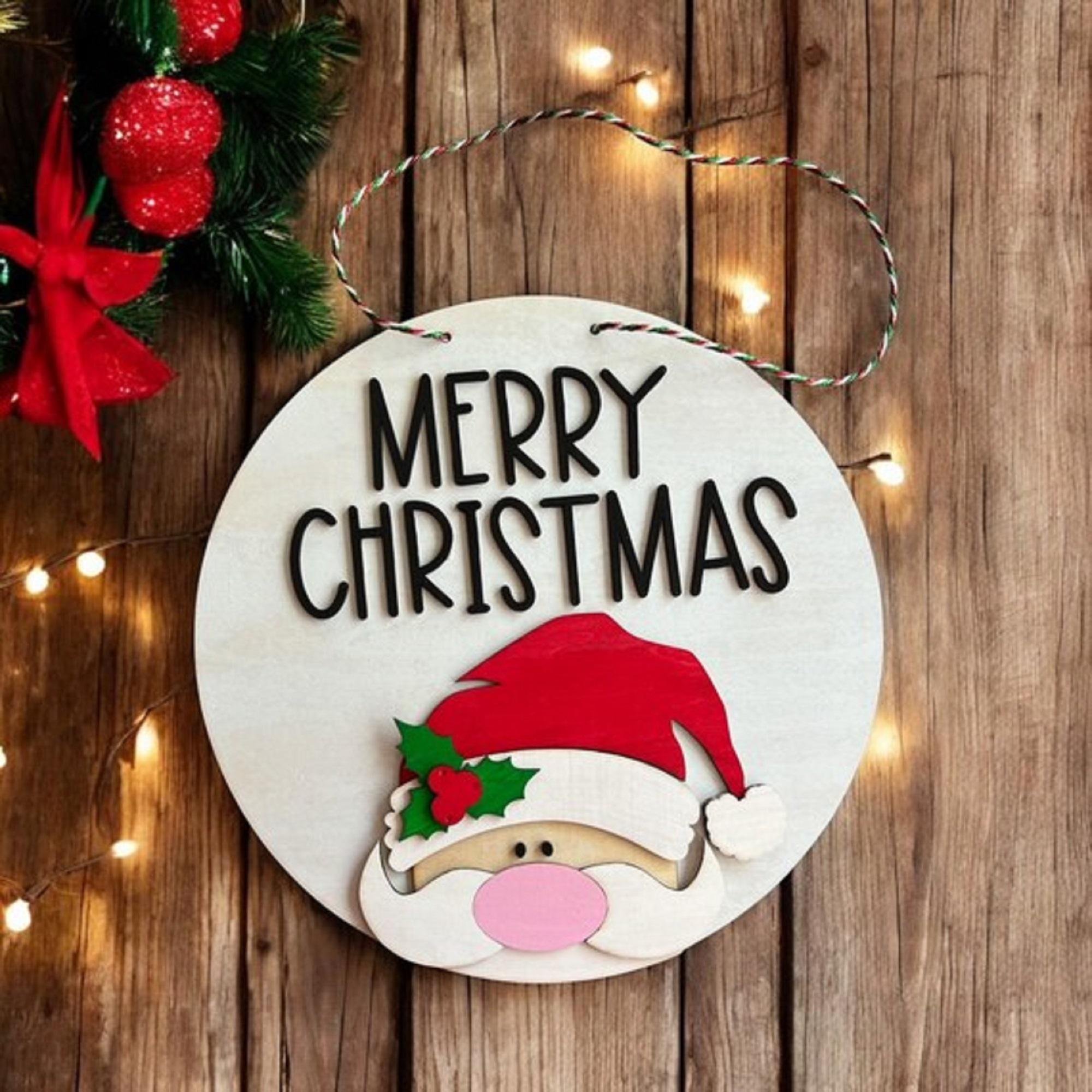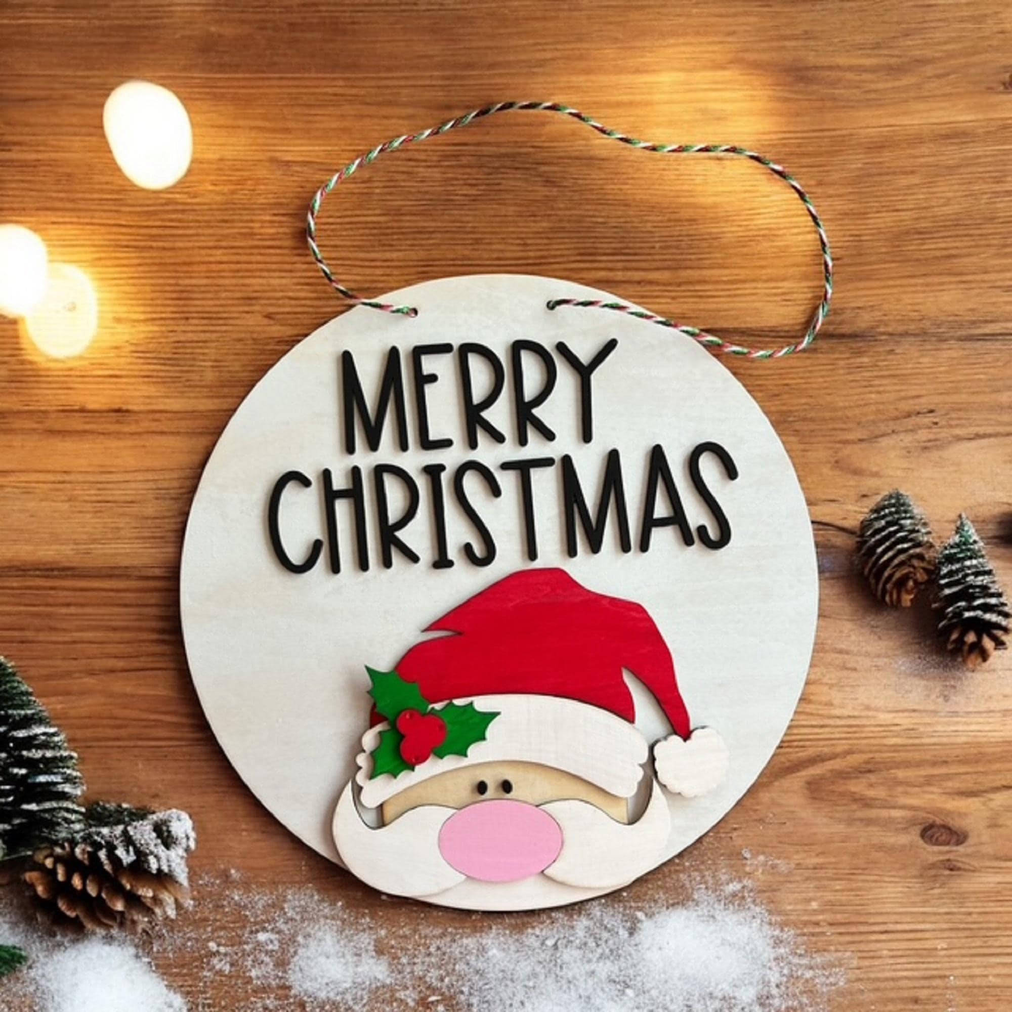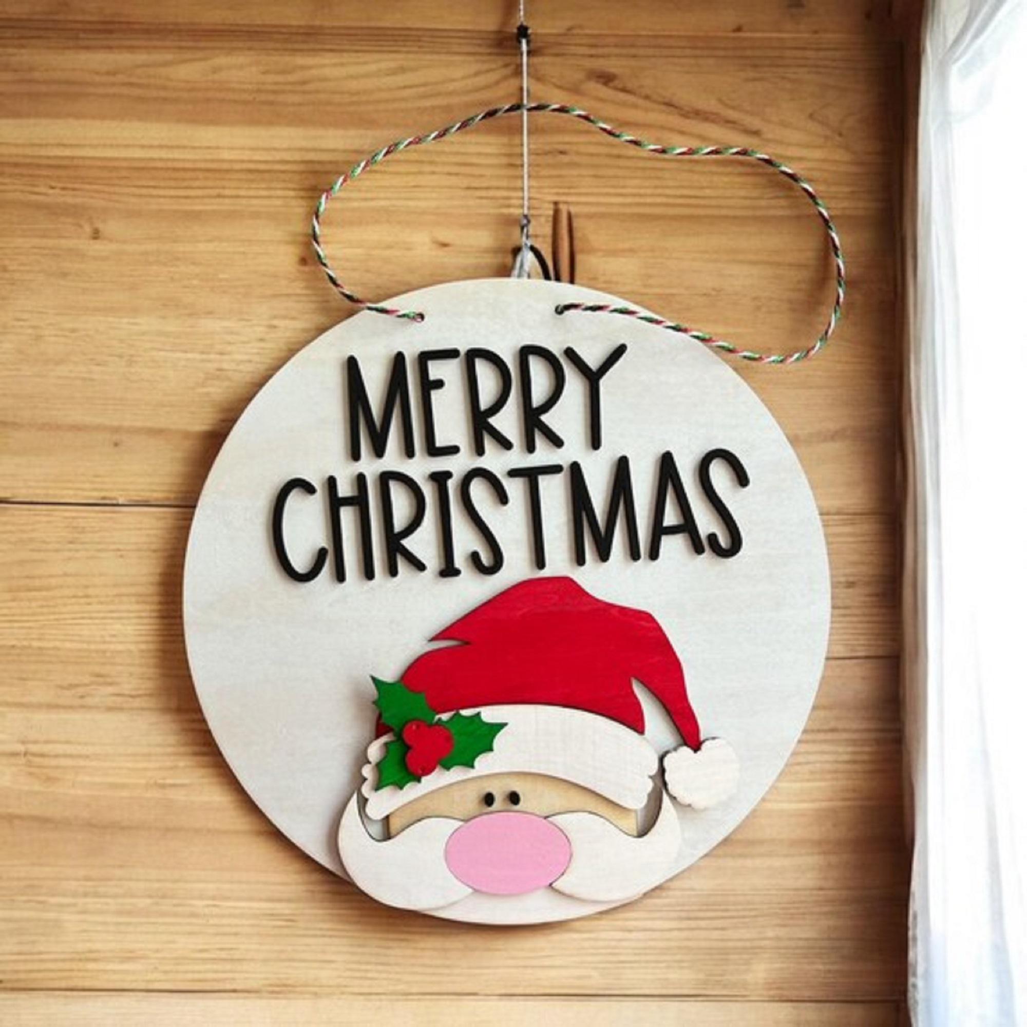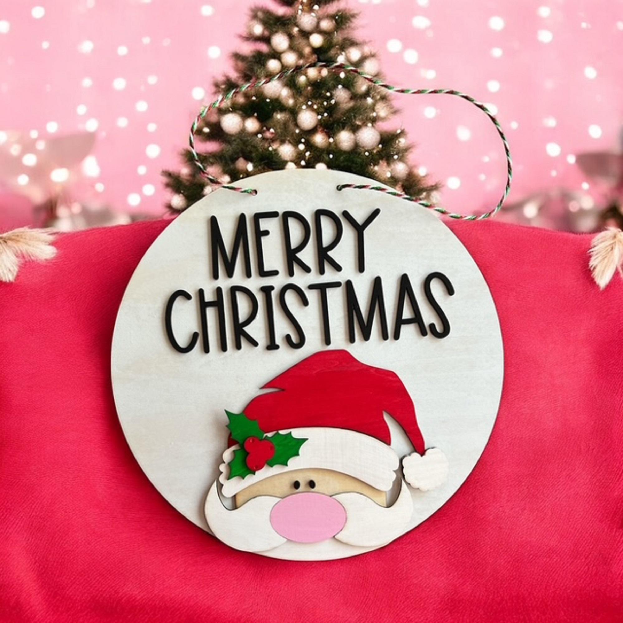 Hand Painted Santa Door Hanger: Layered Basswood Christmas Decor