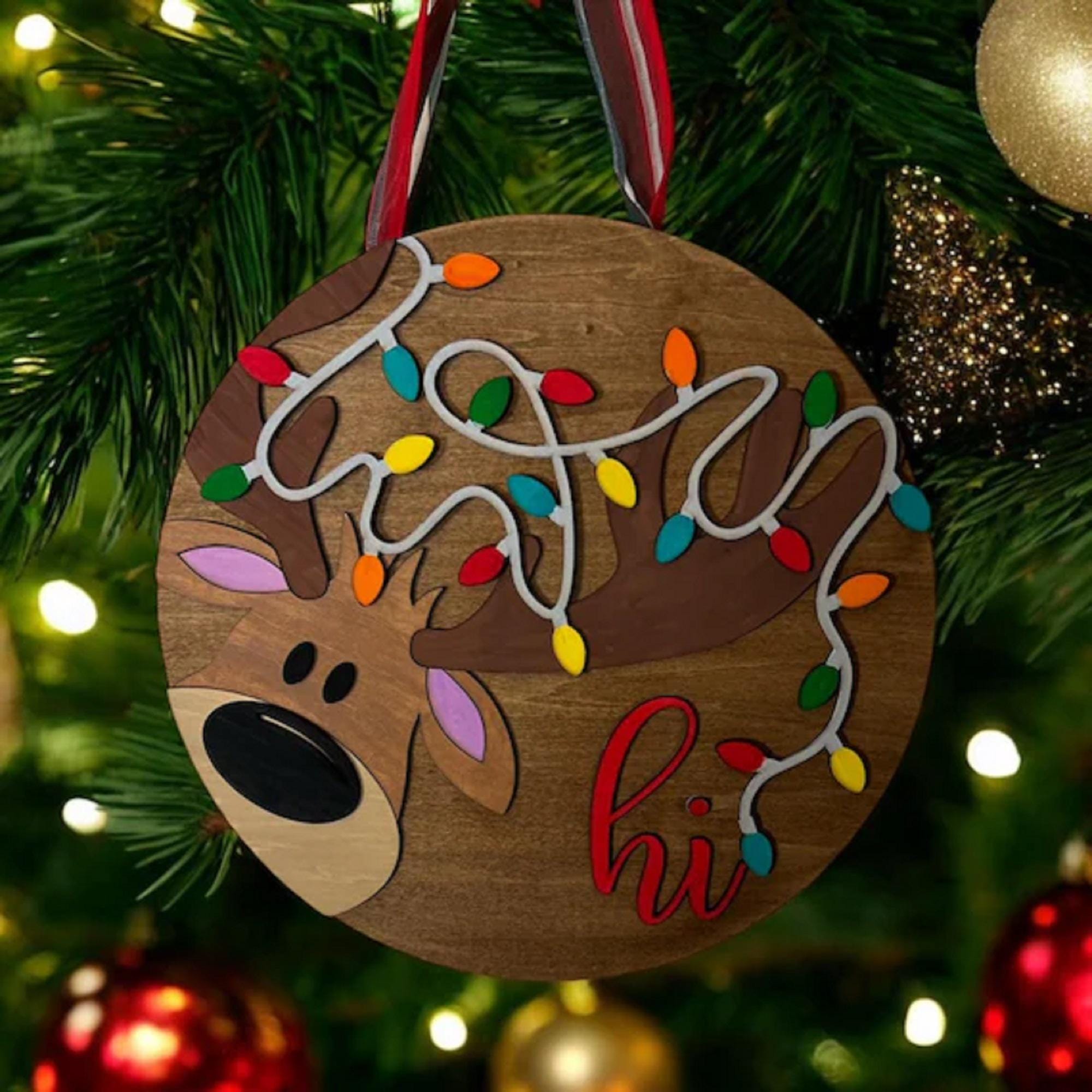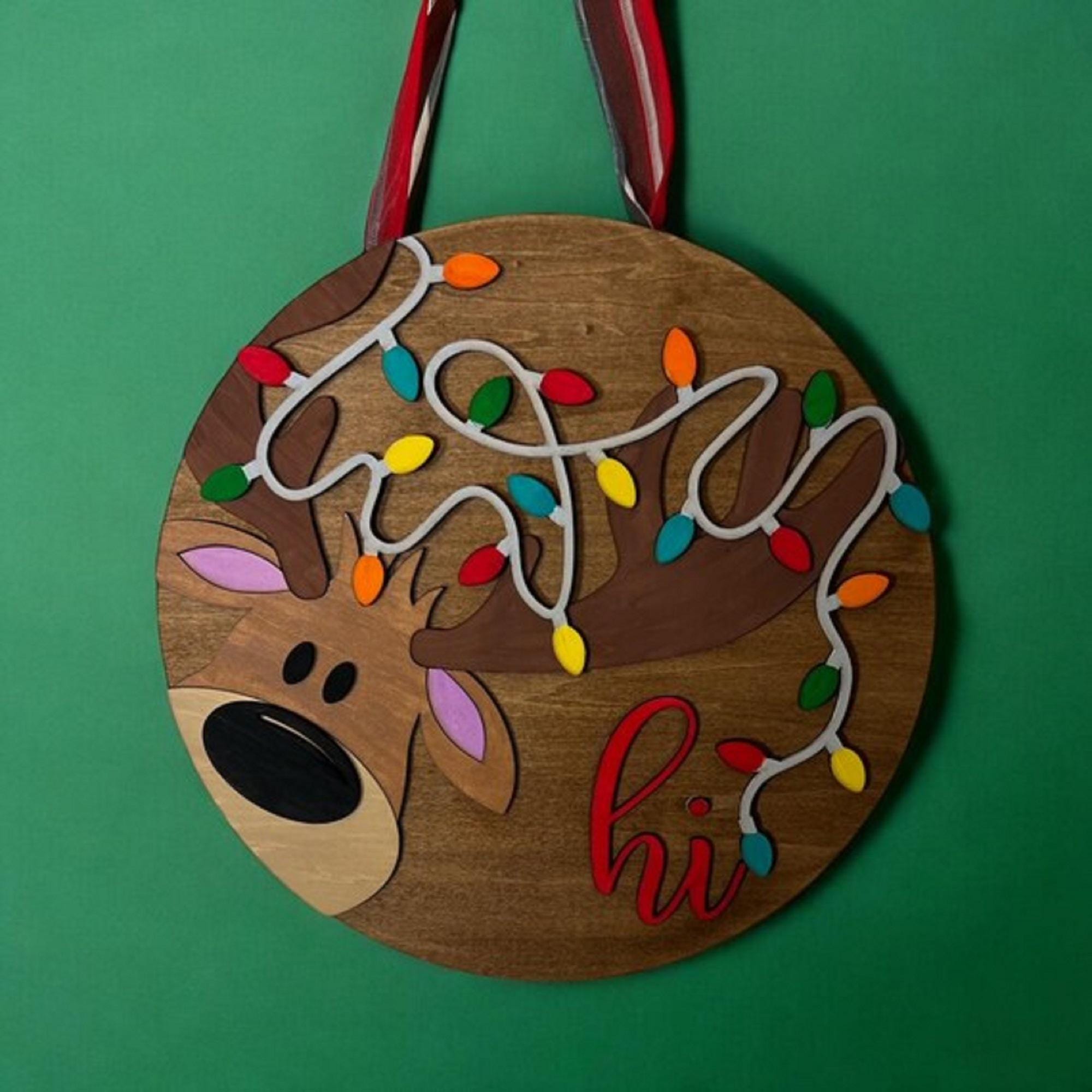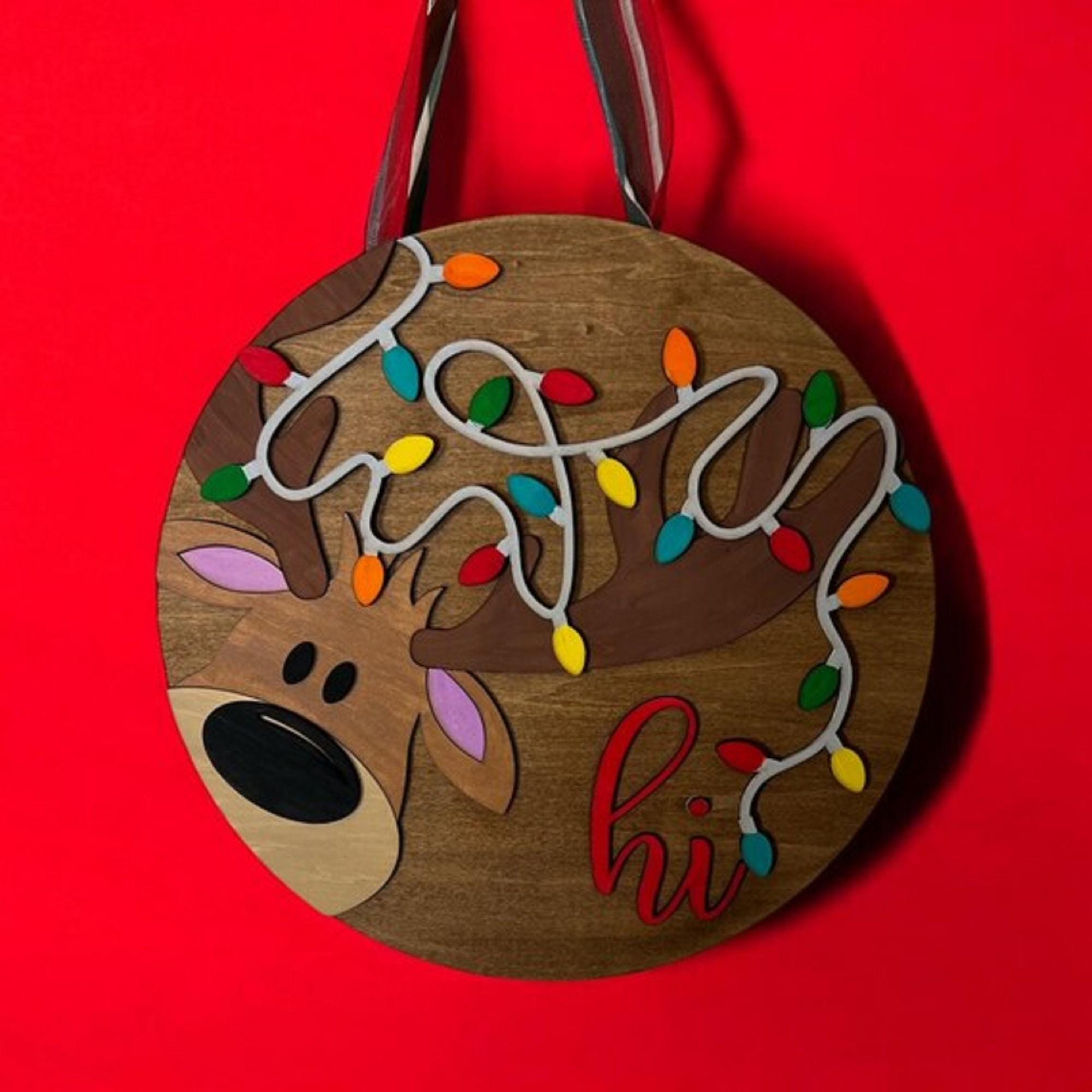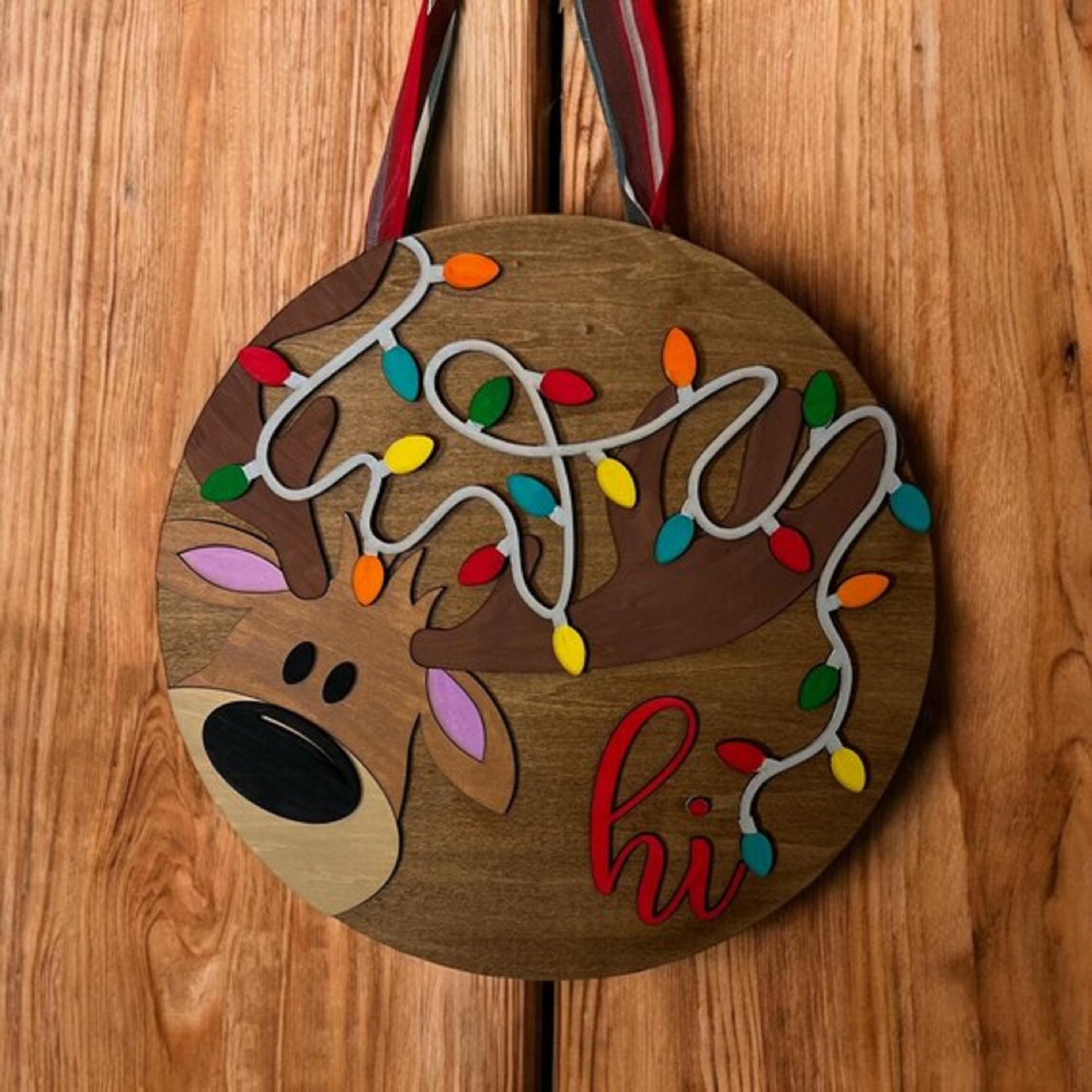 Christmas Deer Door Hanger: Hand-Painted Basswood Reindeer