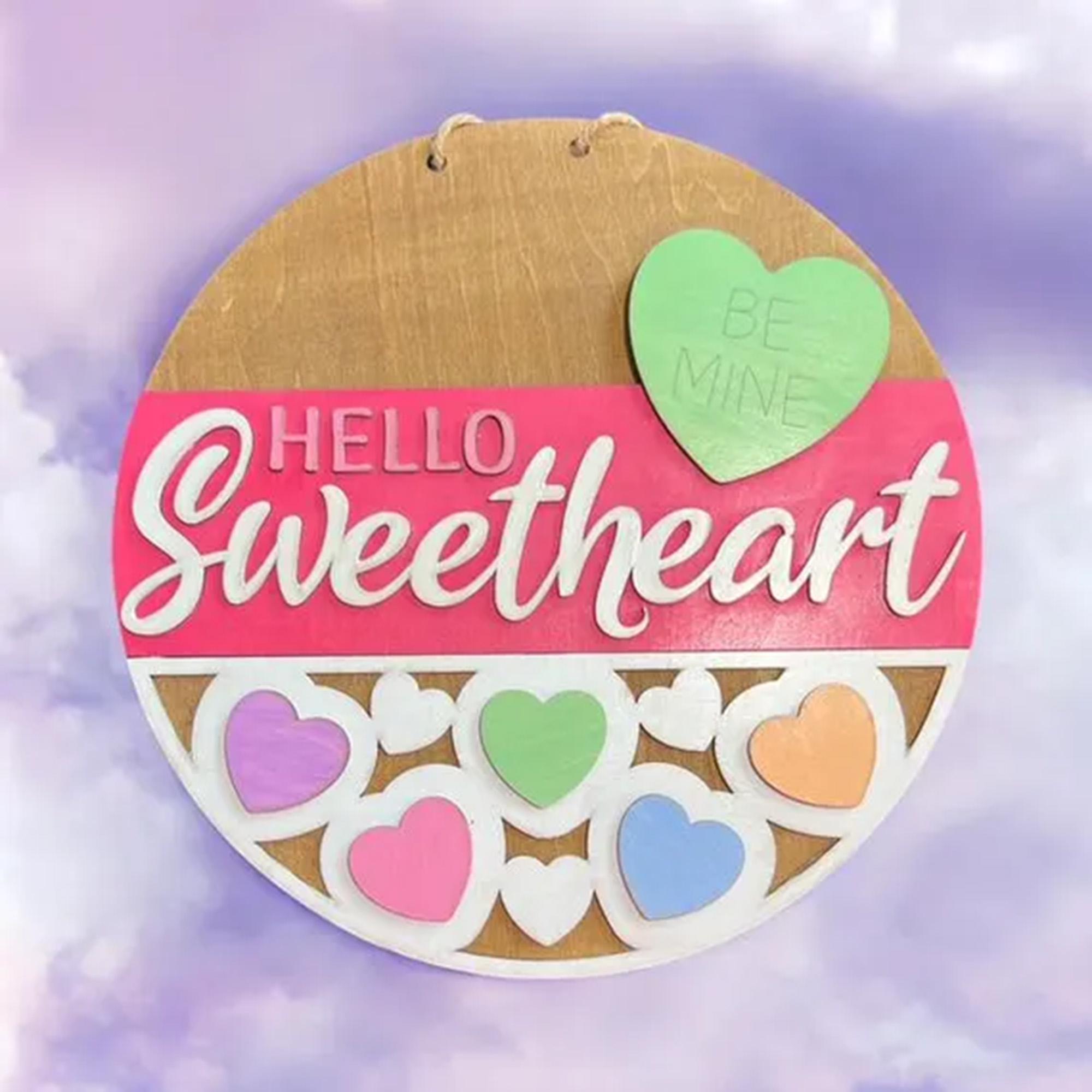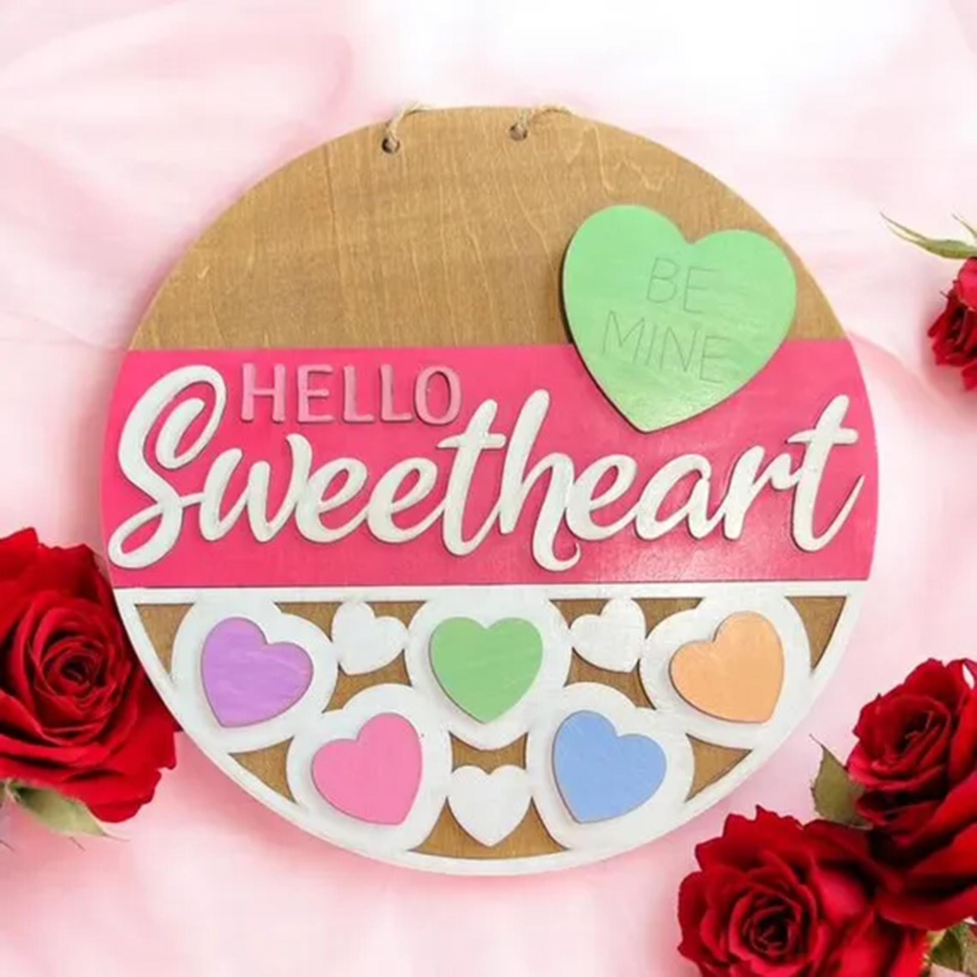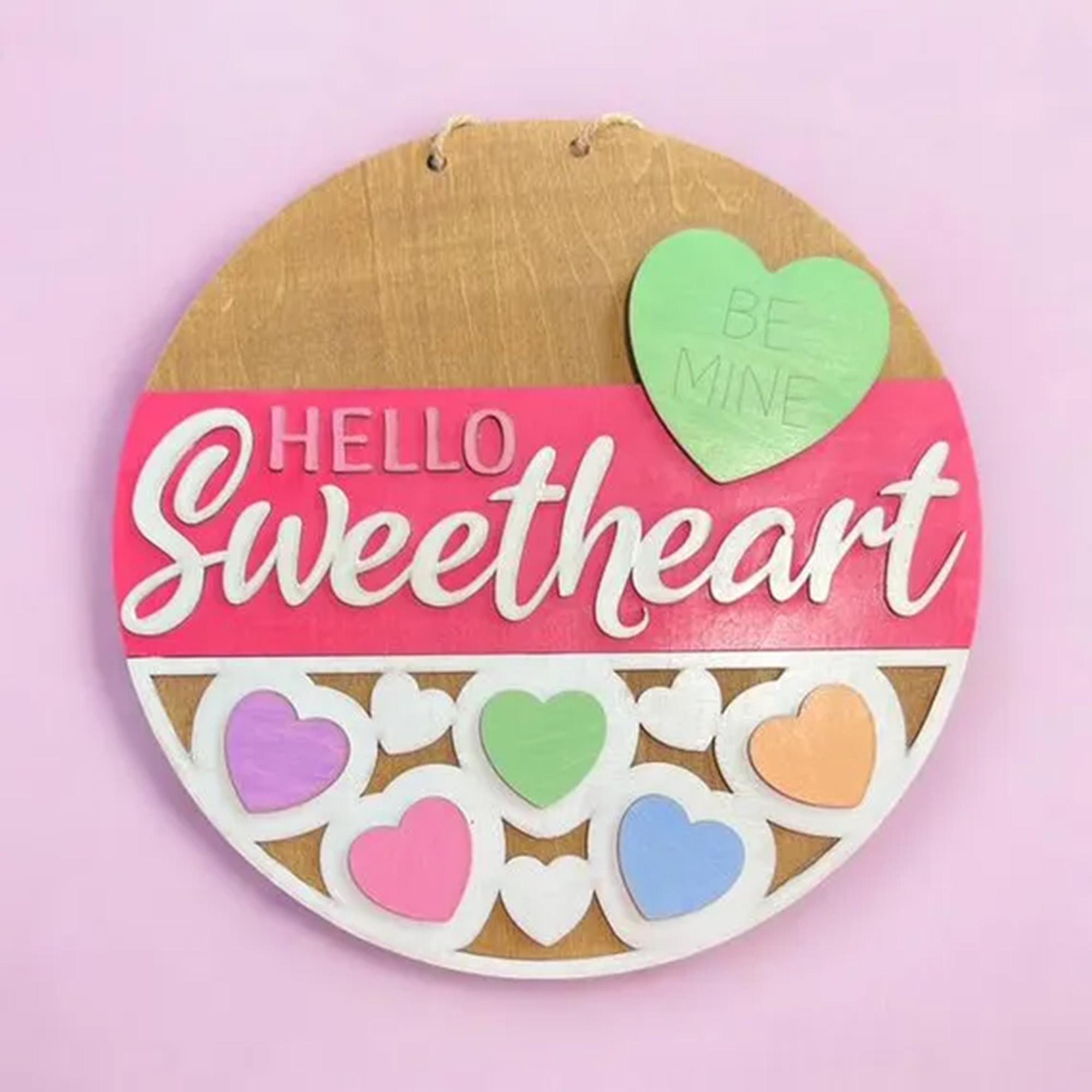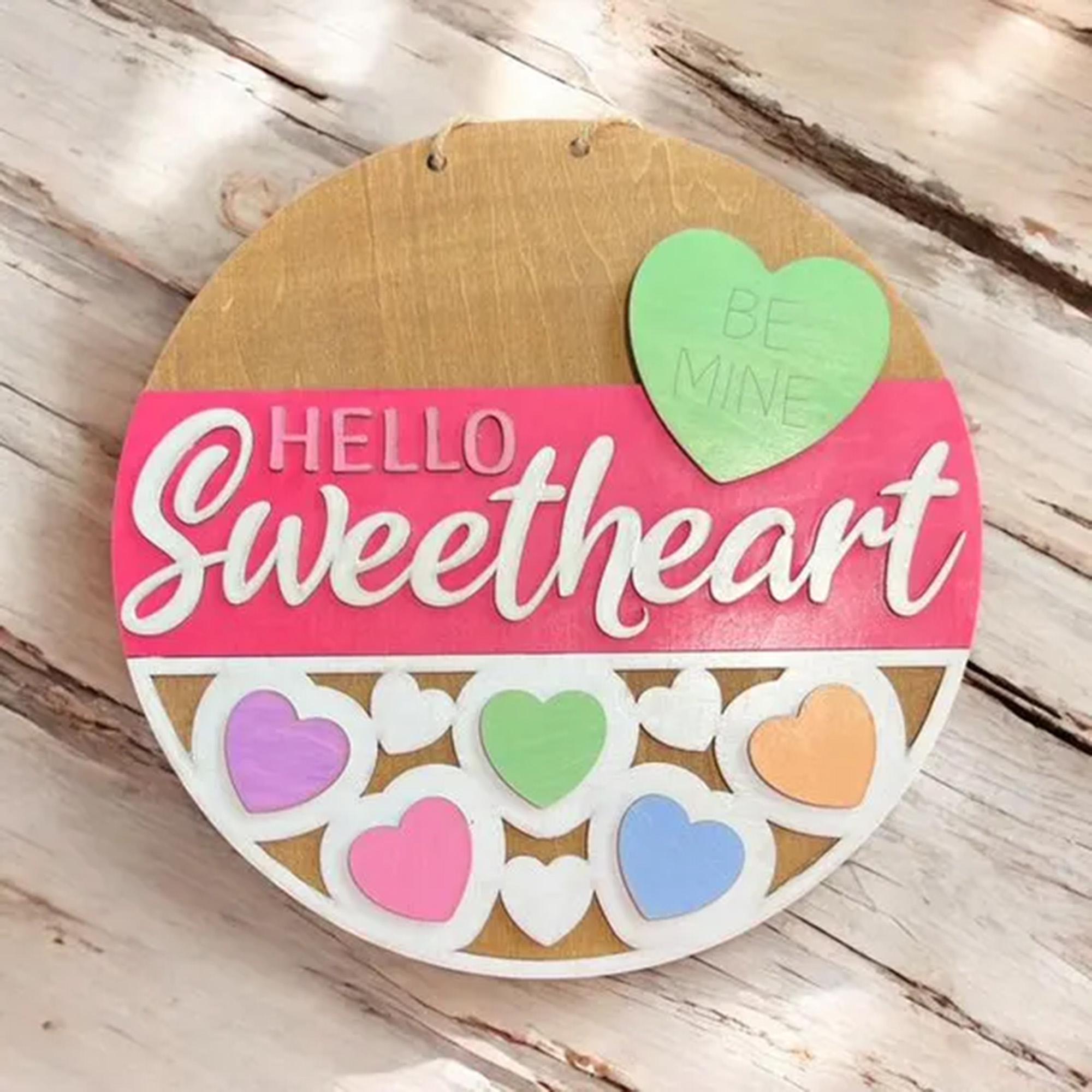 Welcome guests with this charming "Hello Sweetheart" door hanger, featuring a warm heart motif that adds a romantic touch to your front door. Handmade with care, this seasonal décor piece stands out by combining classic Valentine’s charm with a versatile design perfect for spring and summer welcomes.