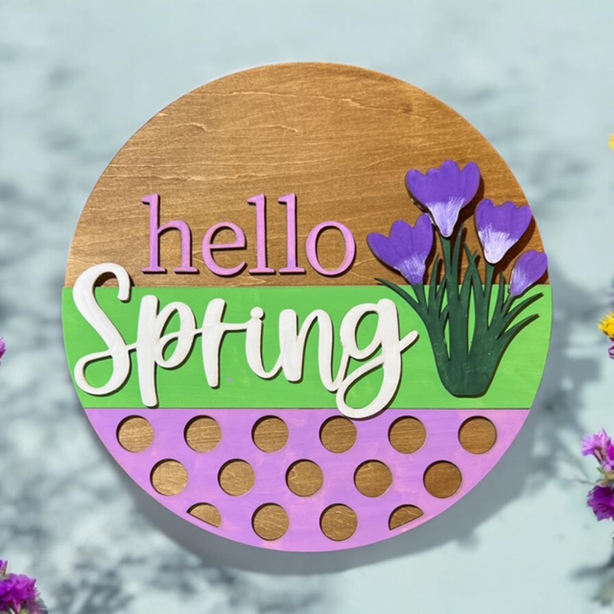 Welcome the season with this charming Hello Spring door hanger featuring vibrant purple flowers that brighten any front door with a fresh, seasonal touch. Handmade with care, this spring decor piece offers a genuine welcome sign that stands out for its quality and authentic design, making it perfect for adding a cheerful flair to your outdoor space.
