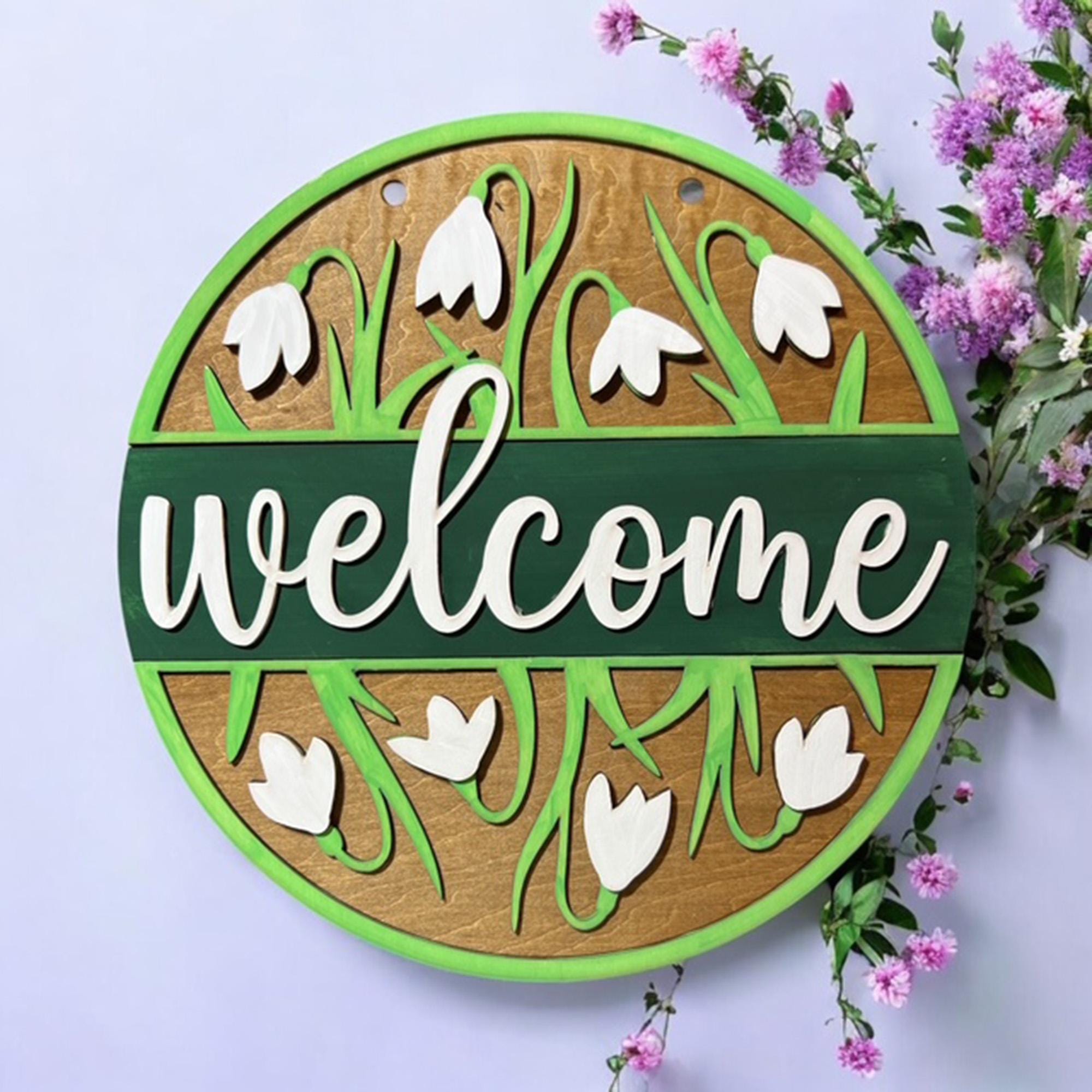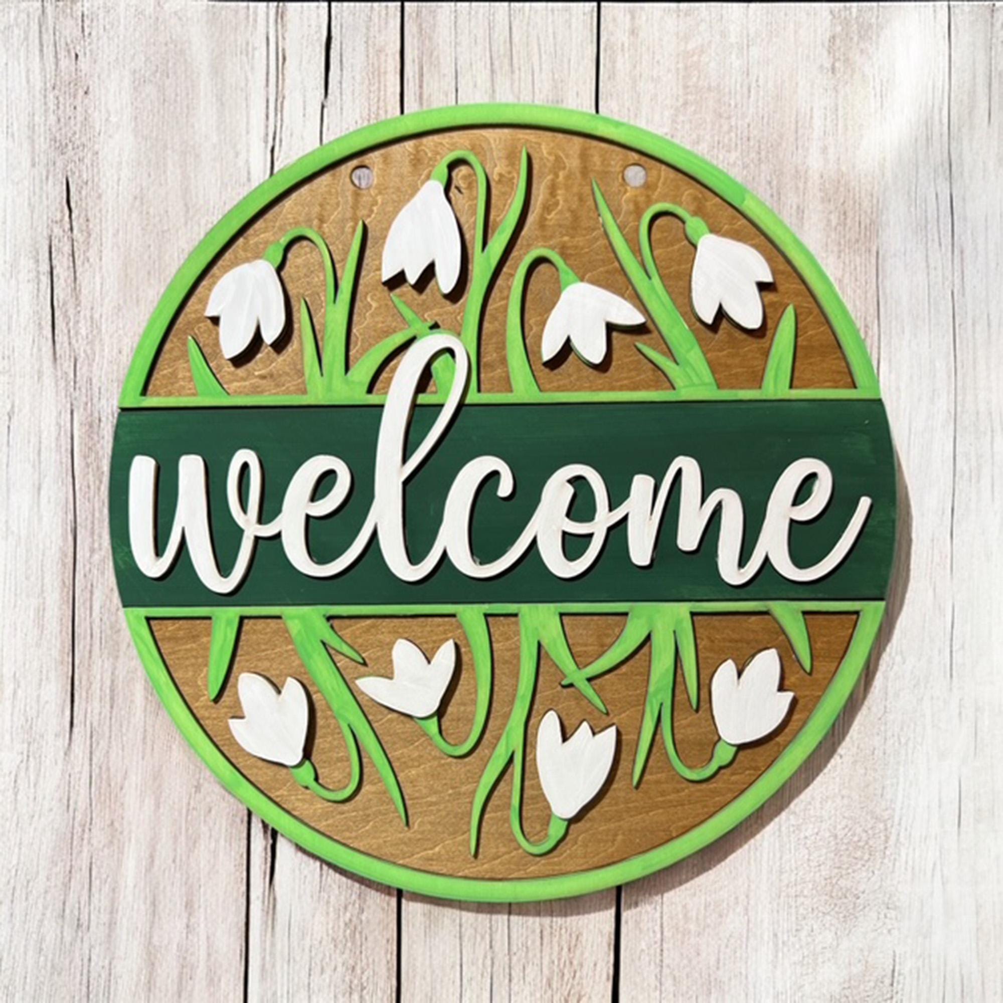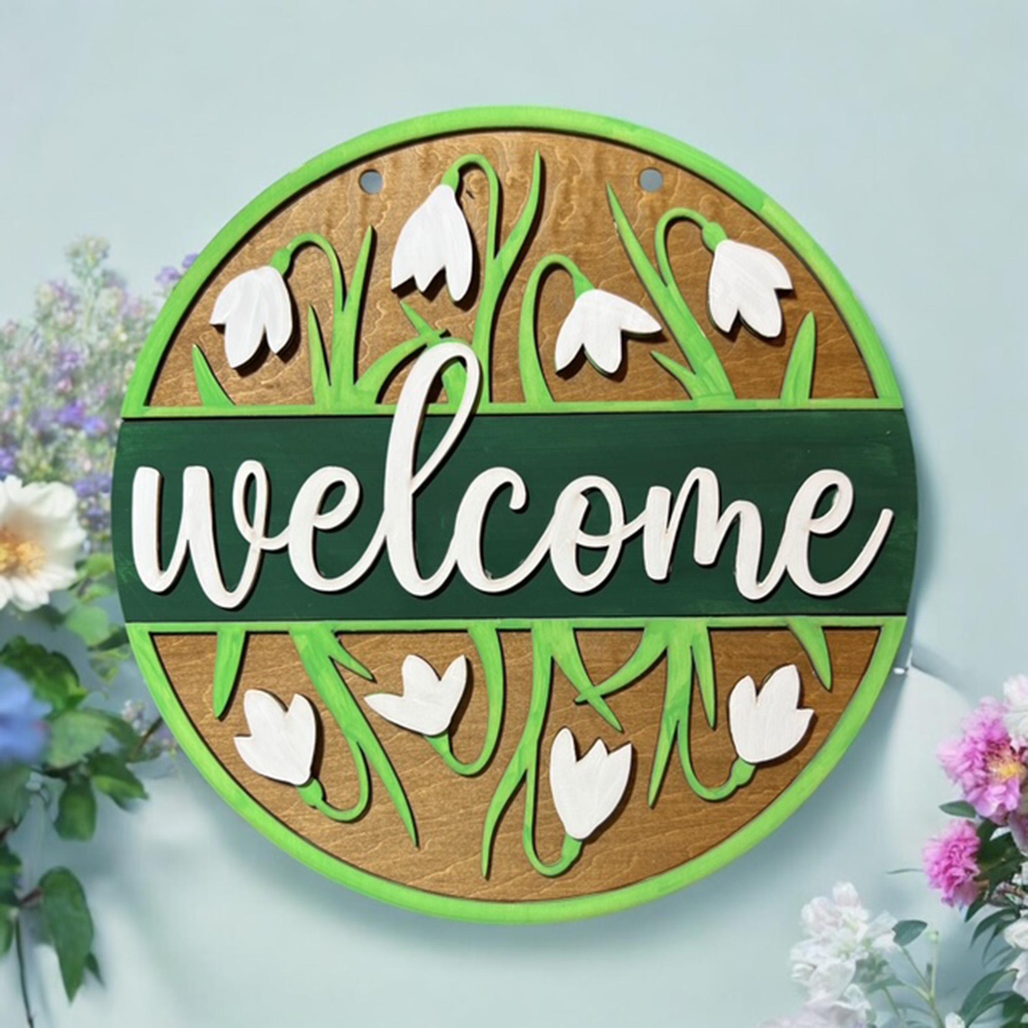Snowdrop Flower Welcome Sign: Laser Cut Basswood Door Hanger