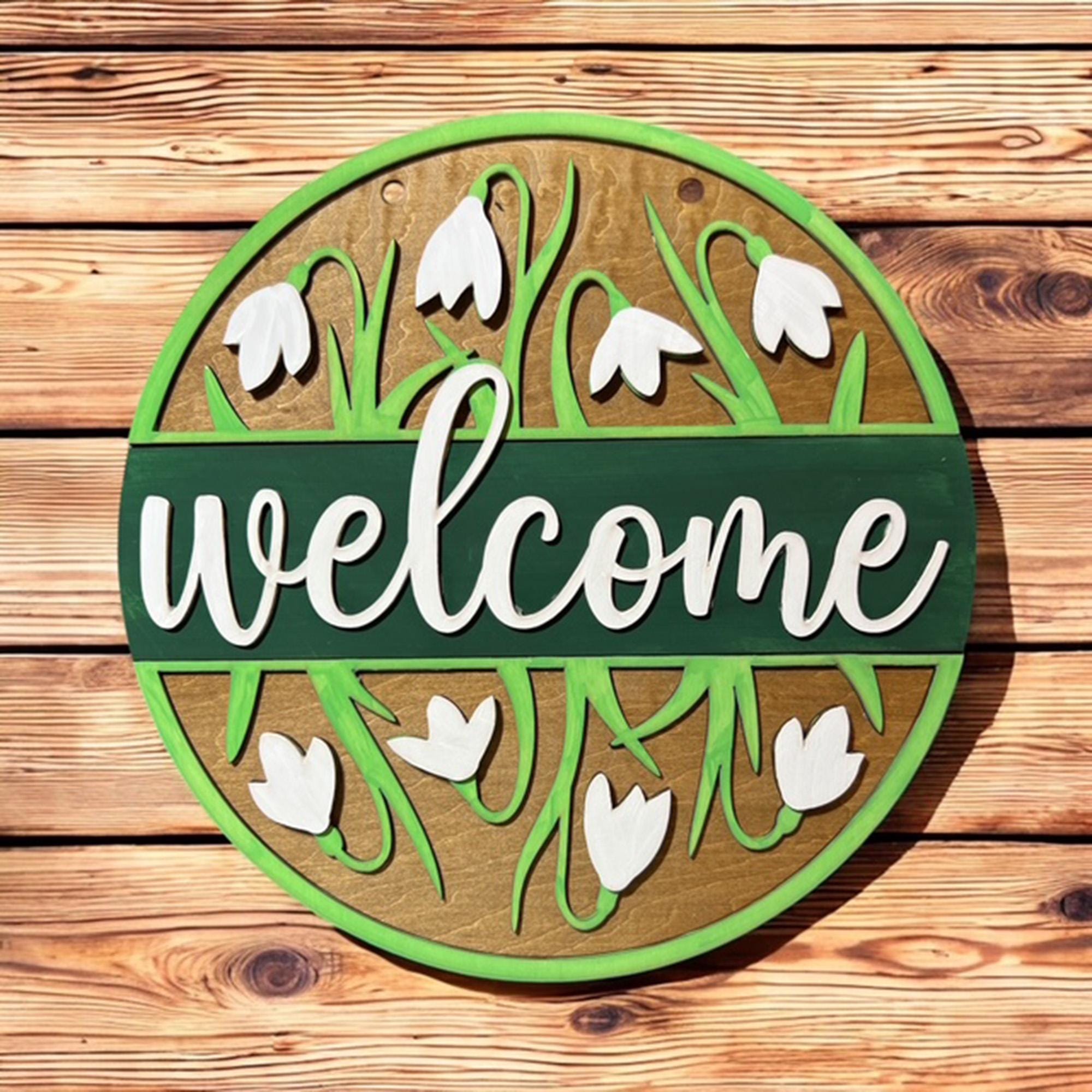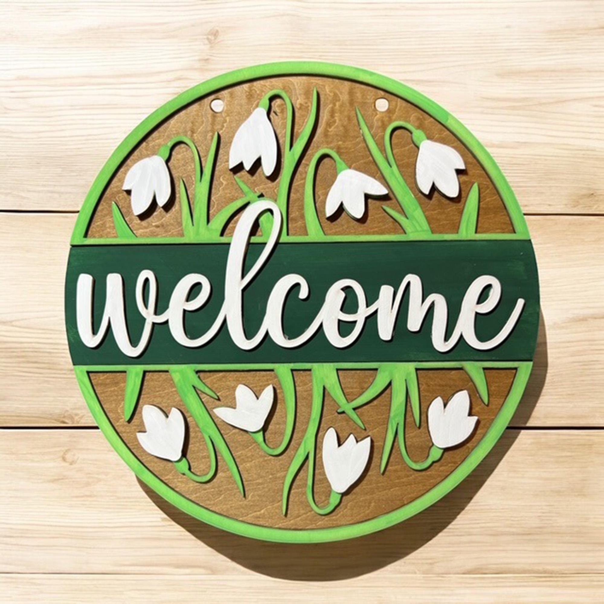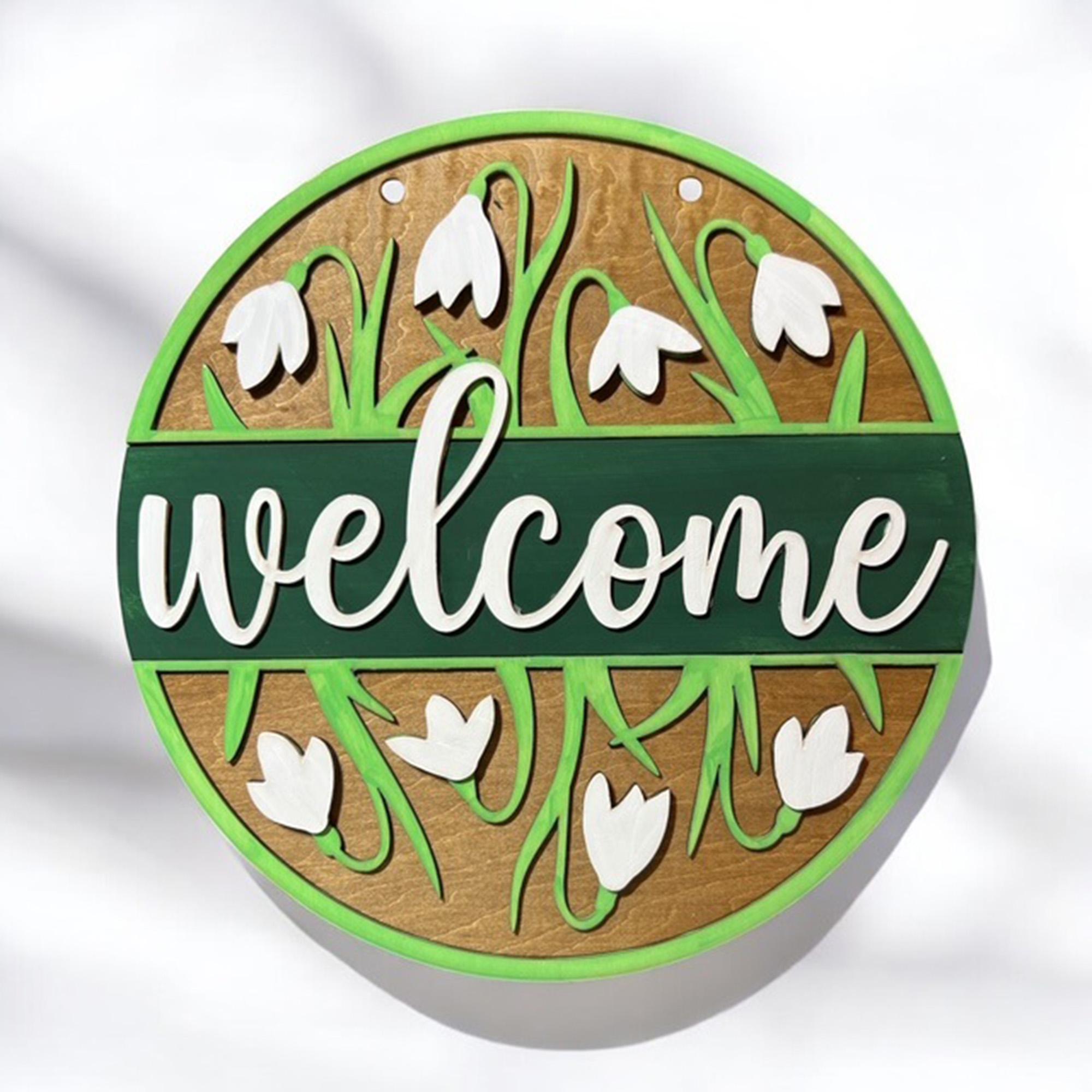 Snowdrop Flower Welcome Sign: Laser Cut Basswood Door Hanger