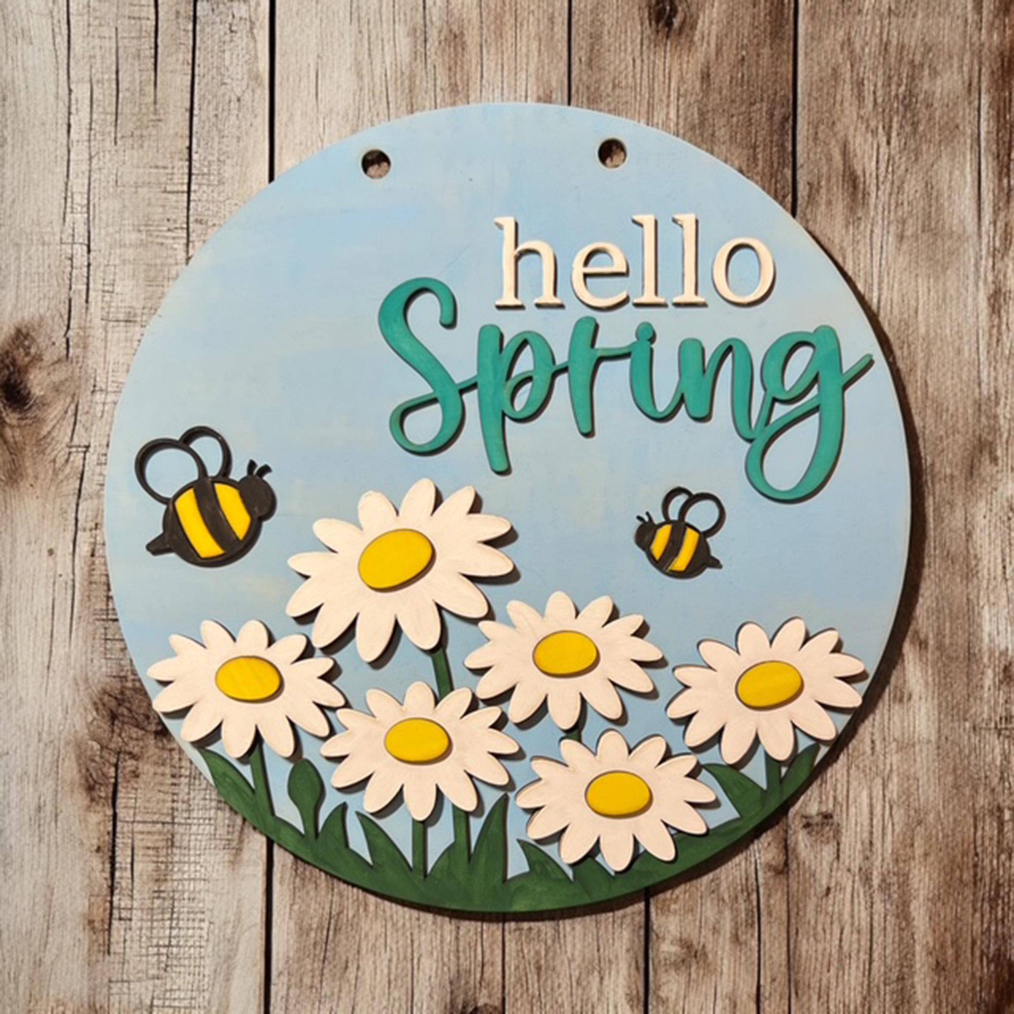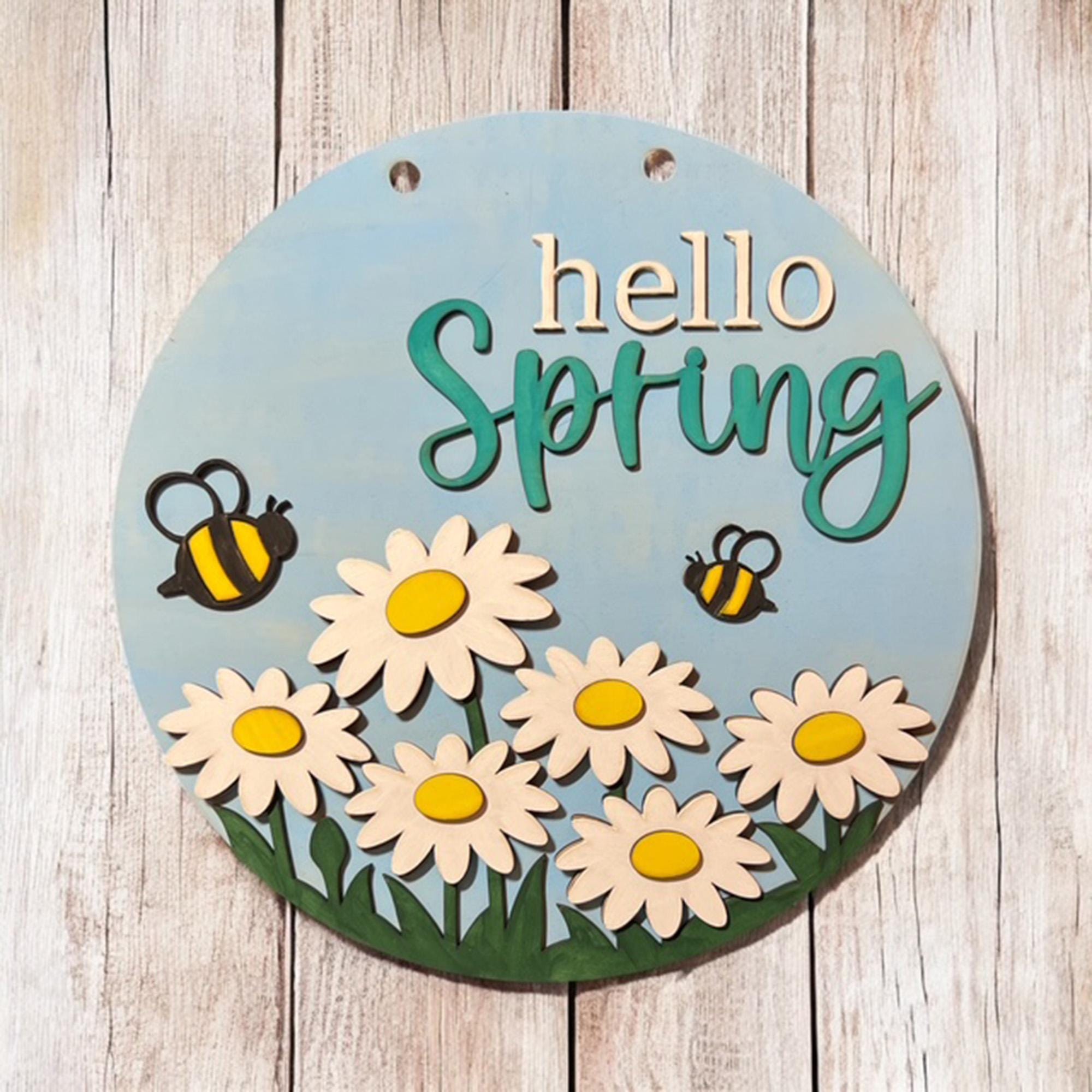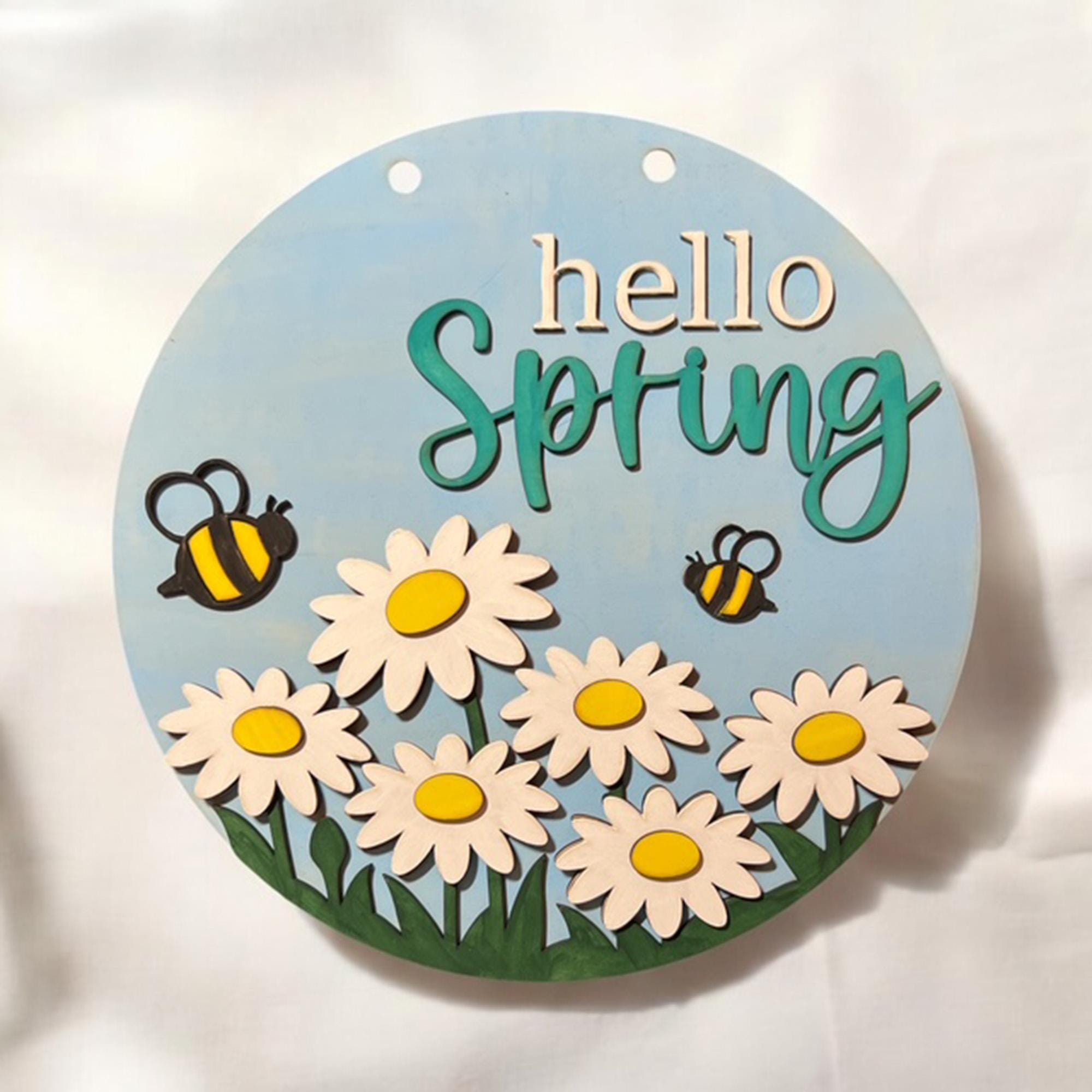Bees and Daisies Spring Door Hanger: Laser Cut Basswood Decor