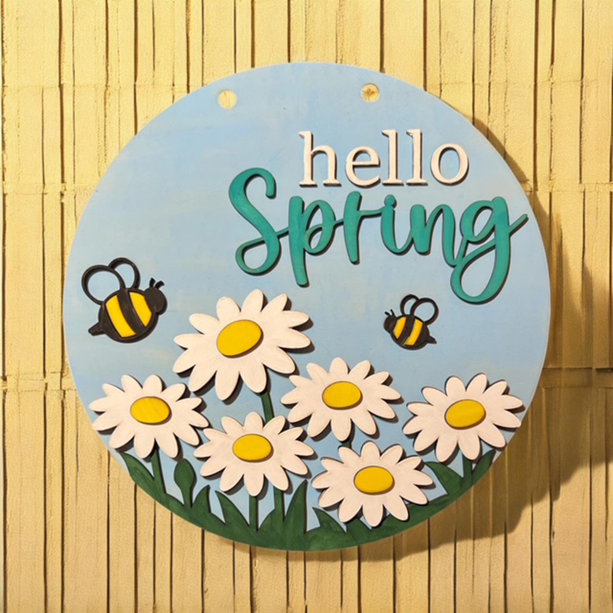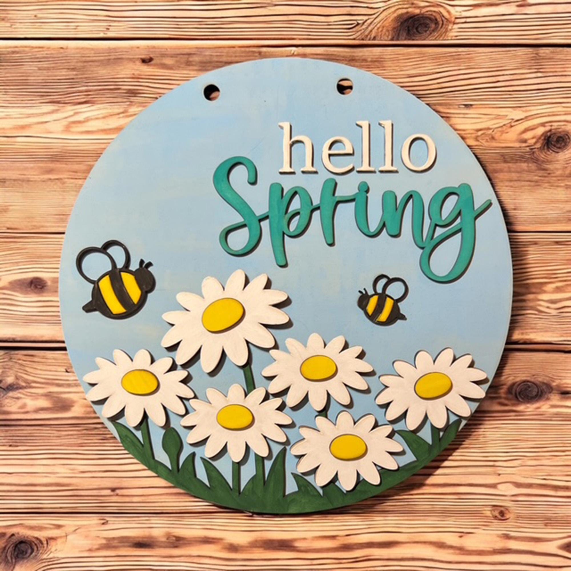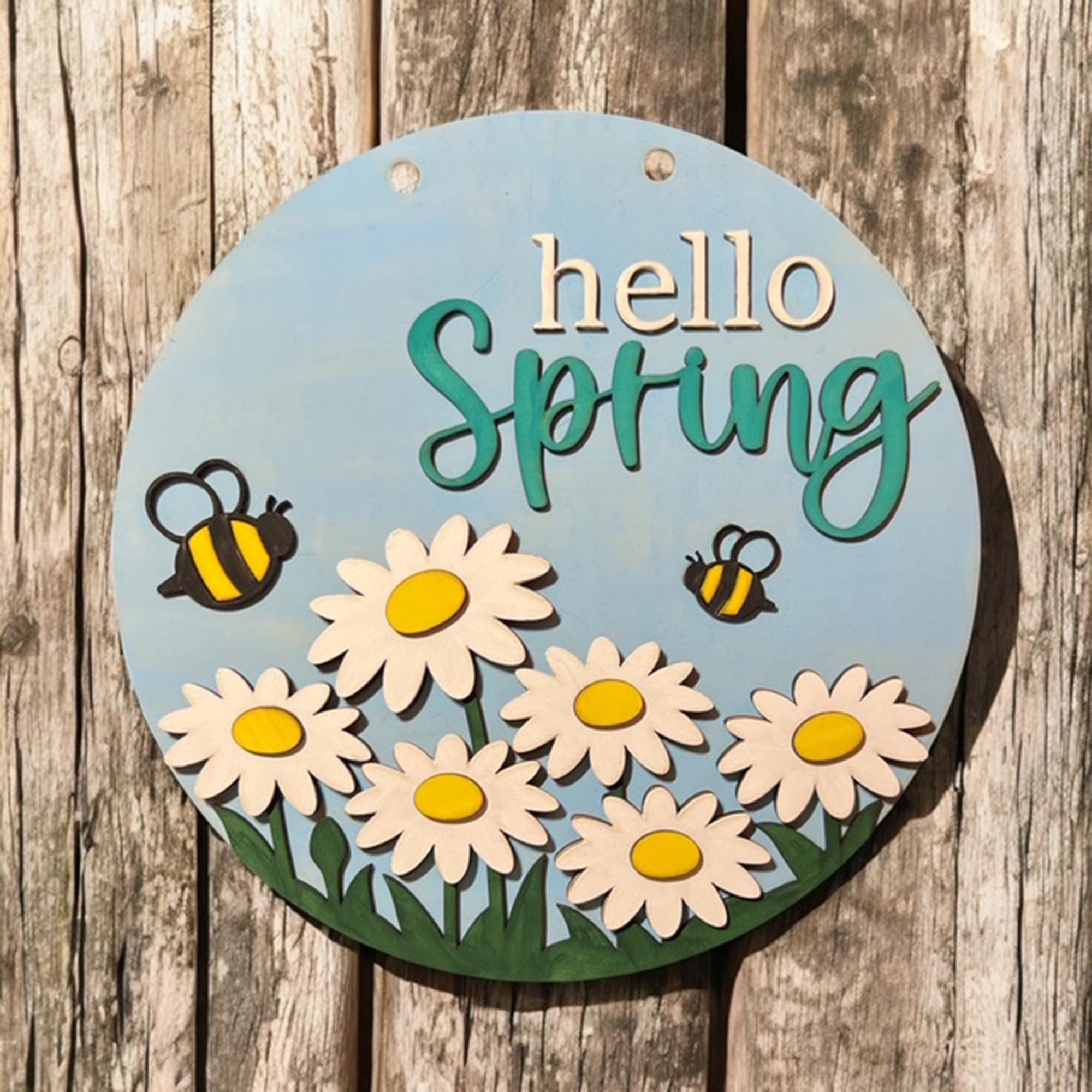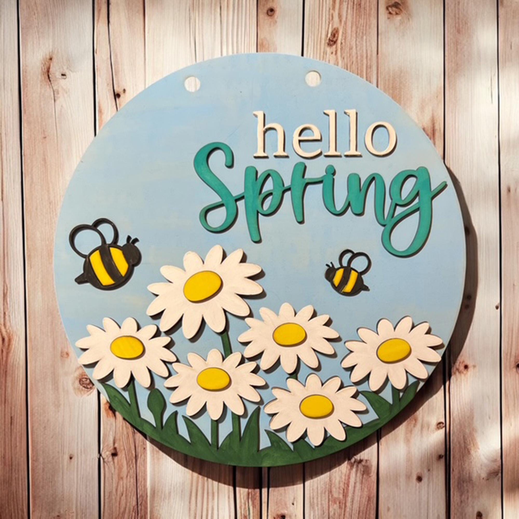 Bees and Daisies Spring Door Hanger: Laser Cut Basswood Decor