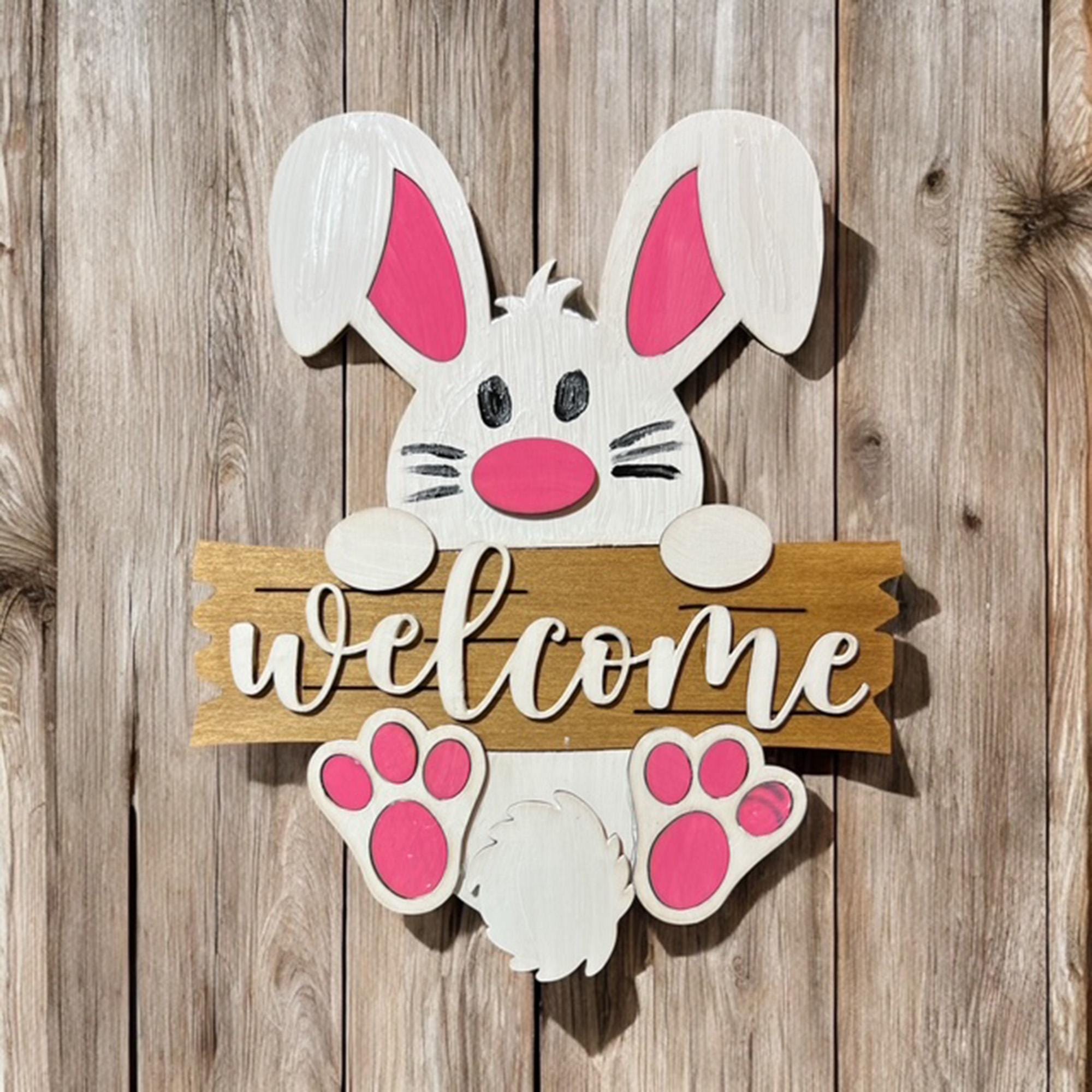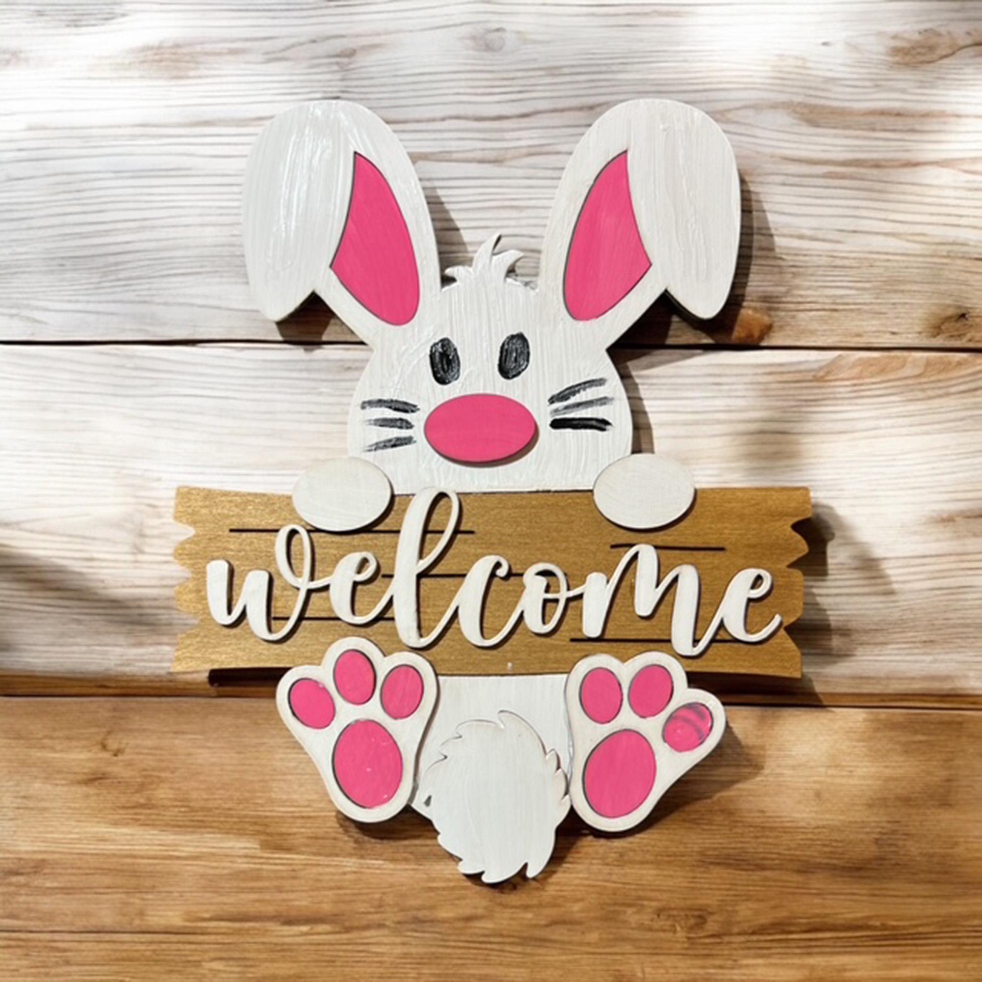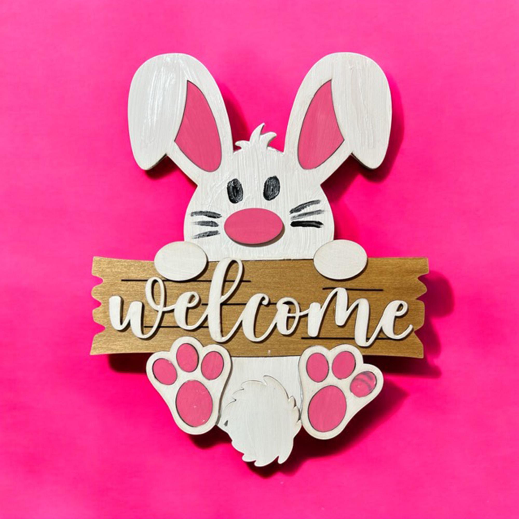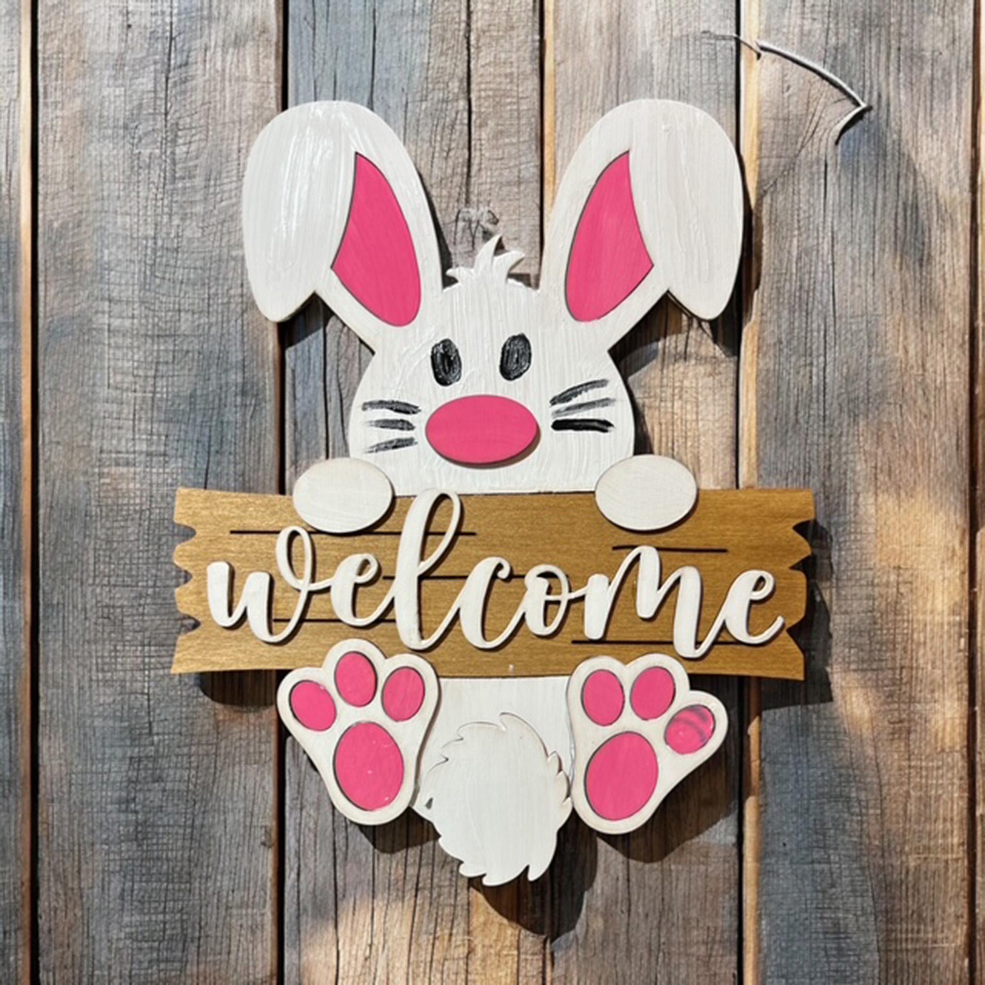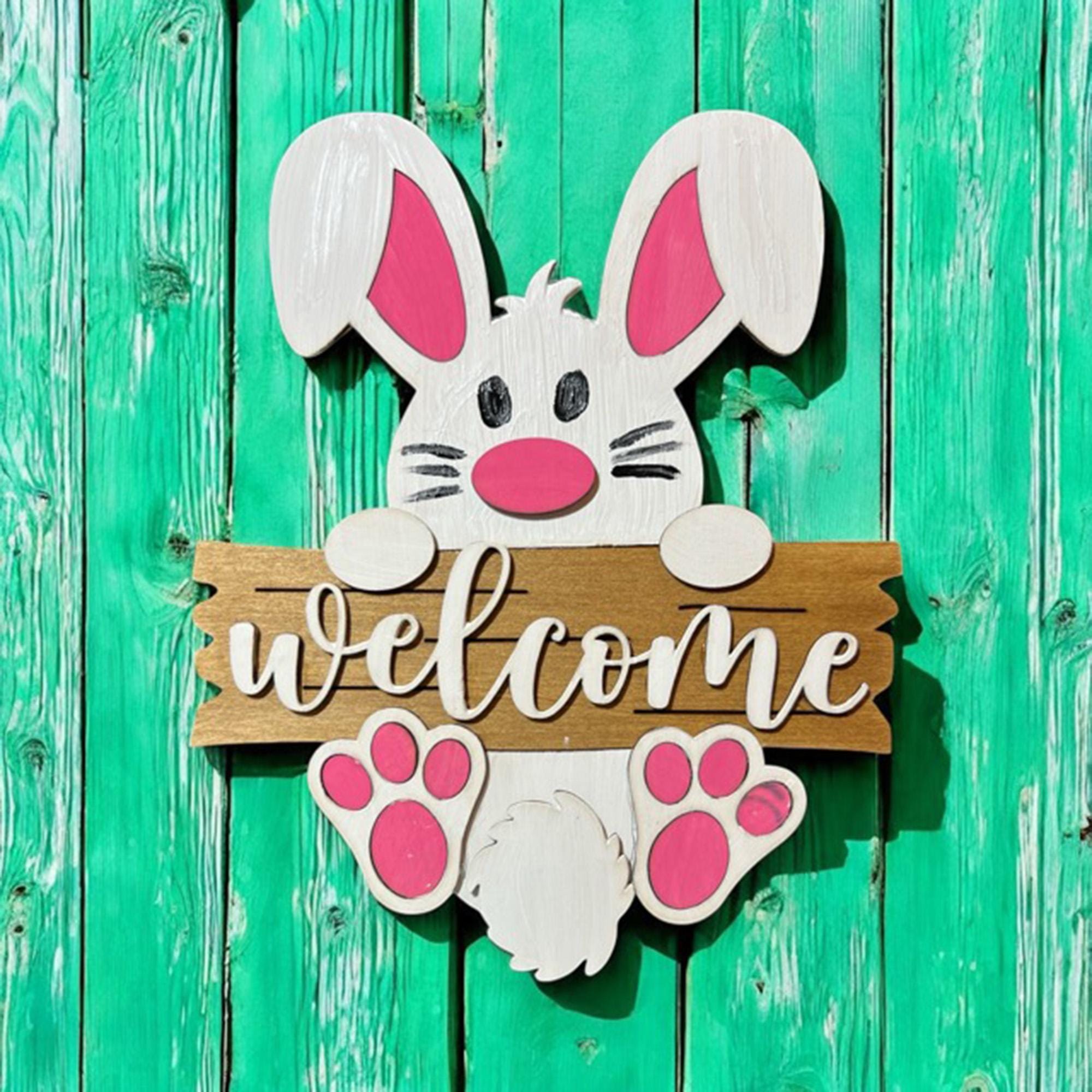 Bunny Welcome Door Hanger: Laser Cut Basswood Easter Decor