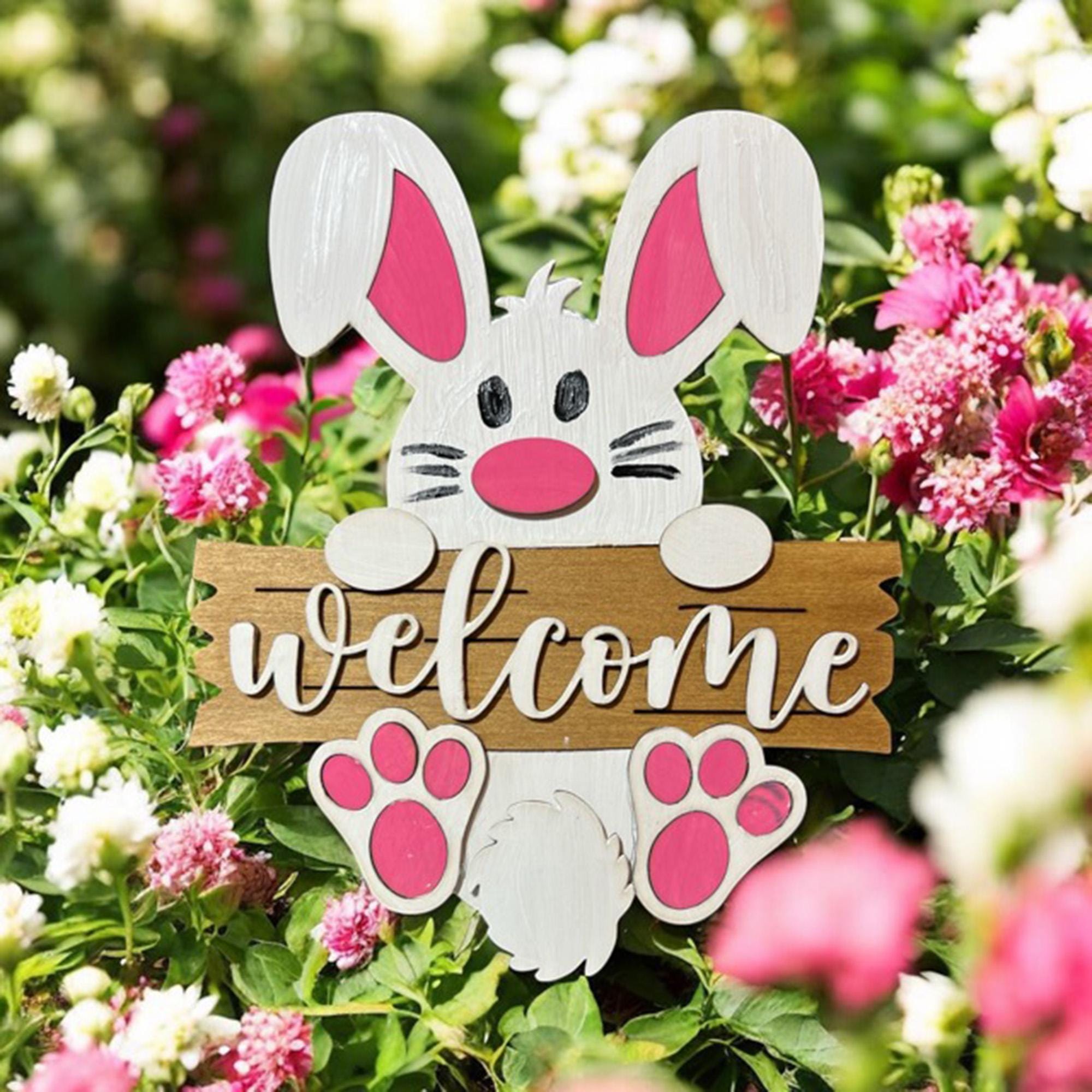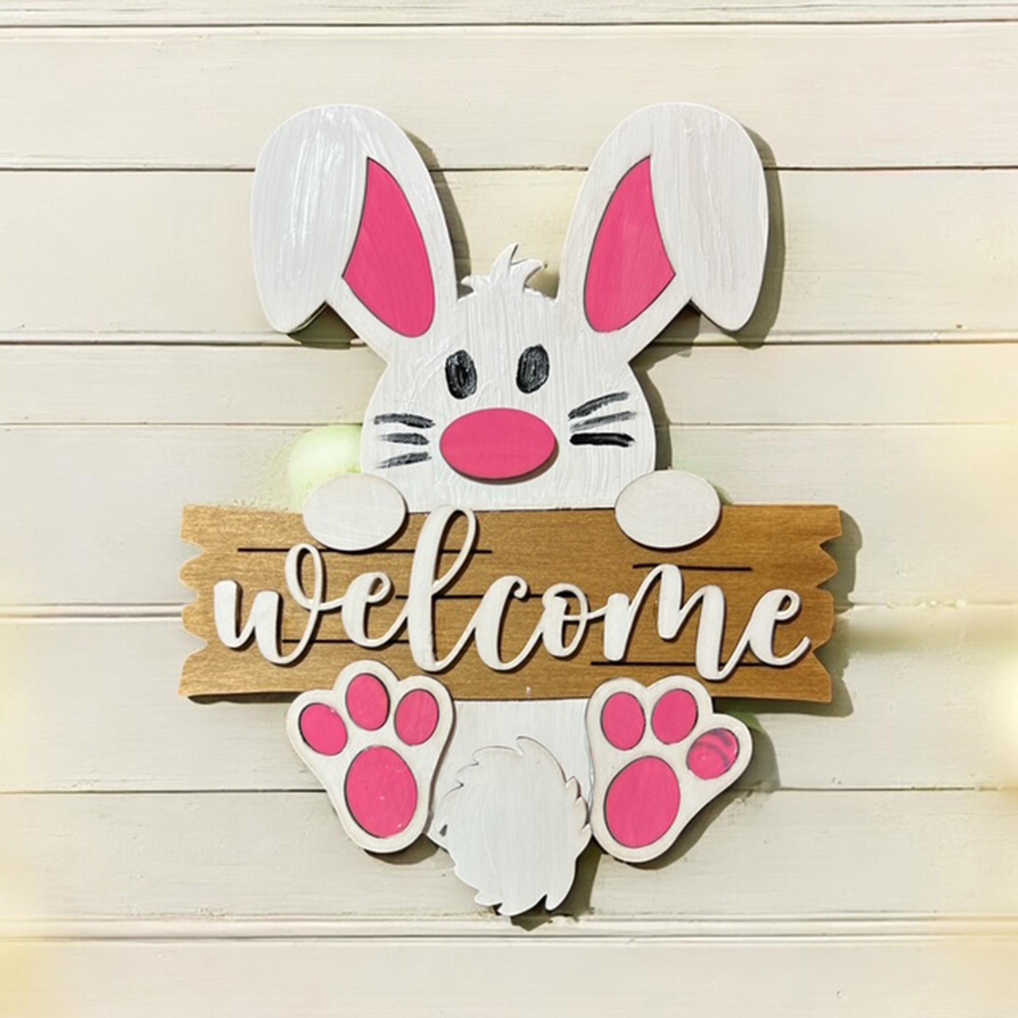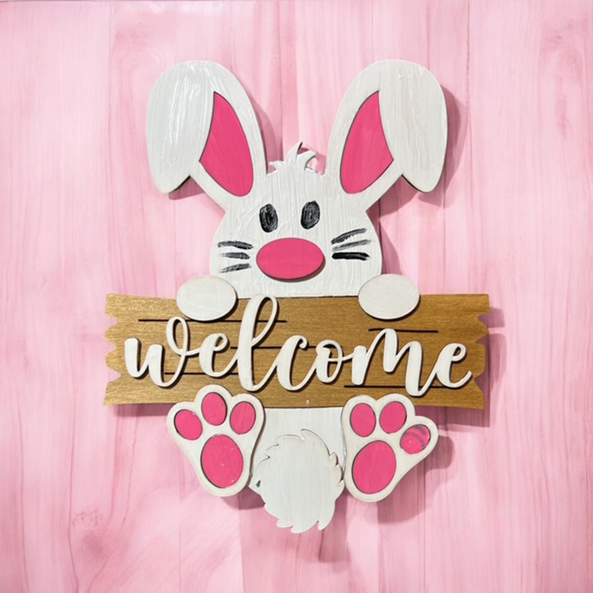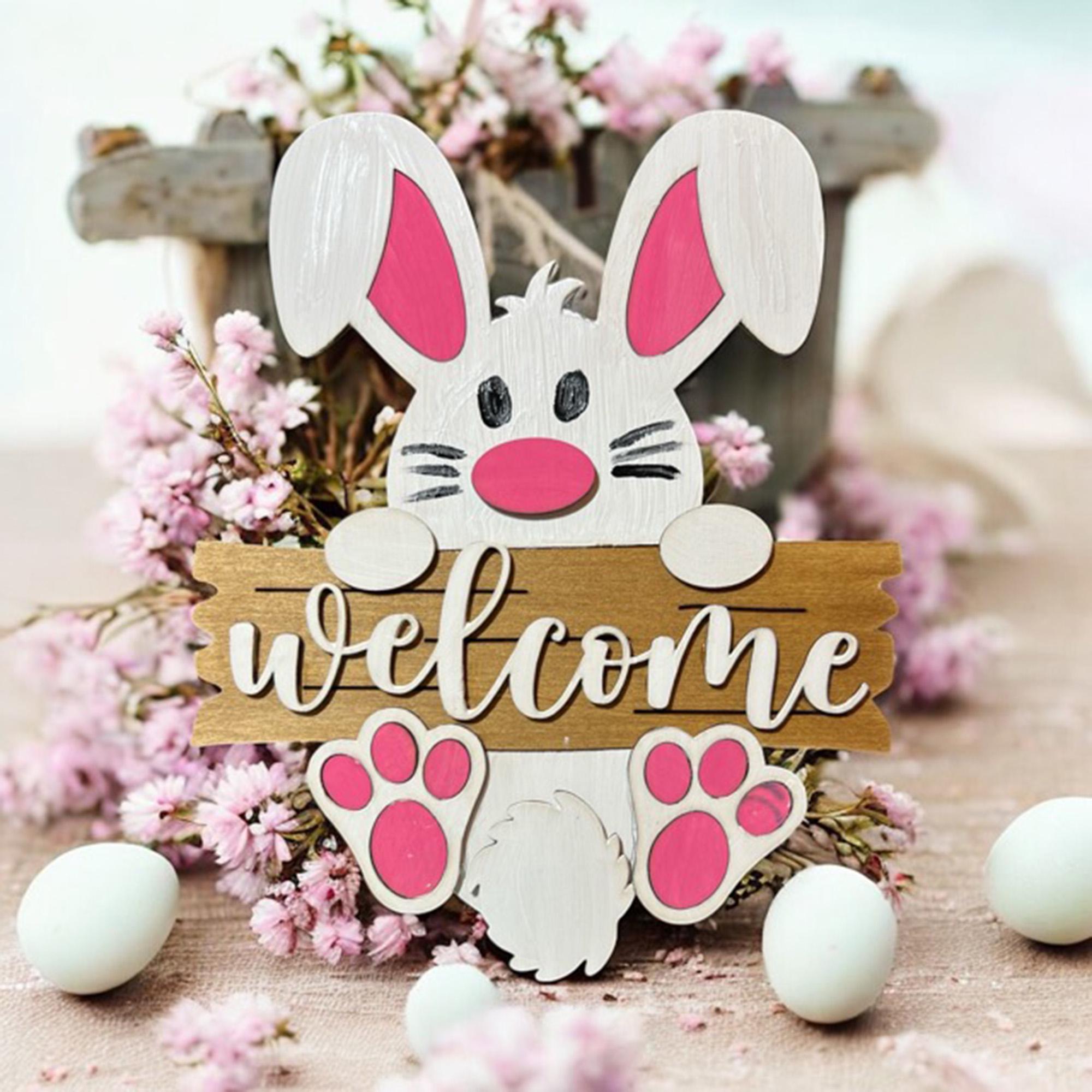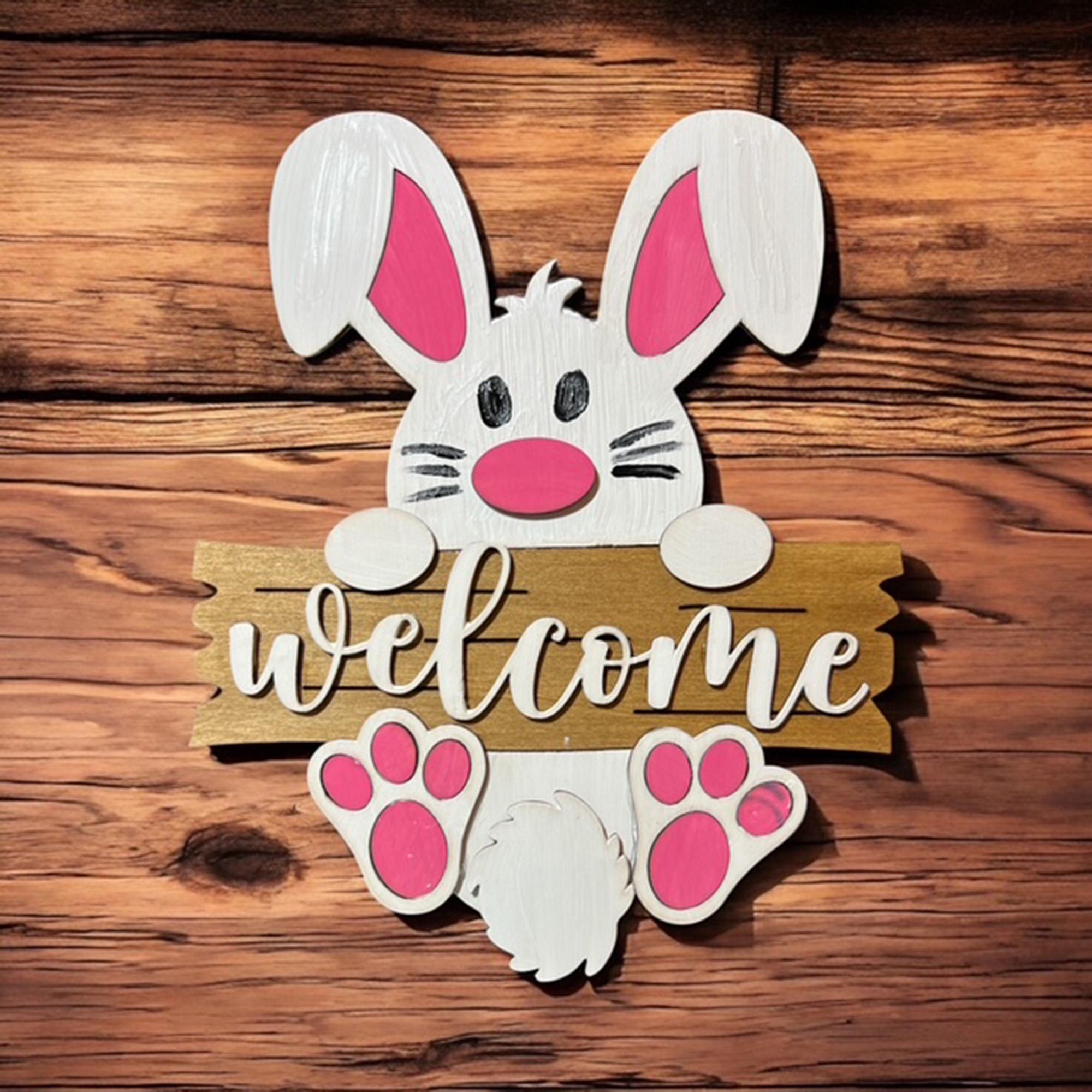 Bunny Welcome Door Hanger: Laser Cut Basswood Easter Decor